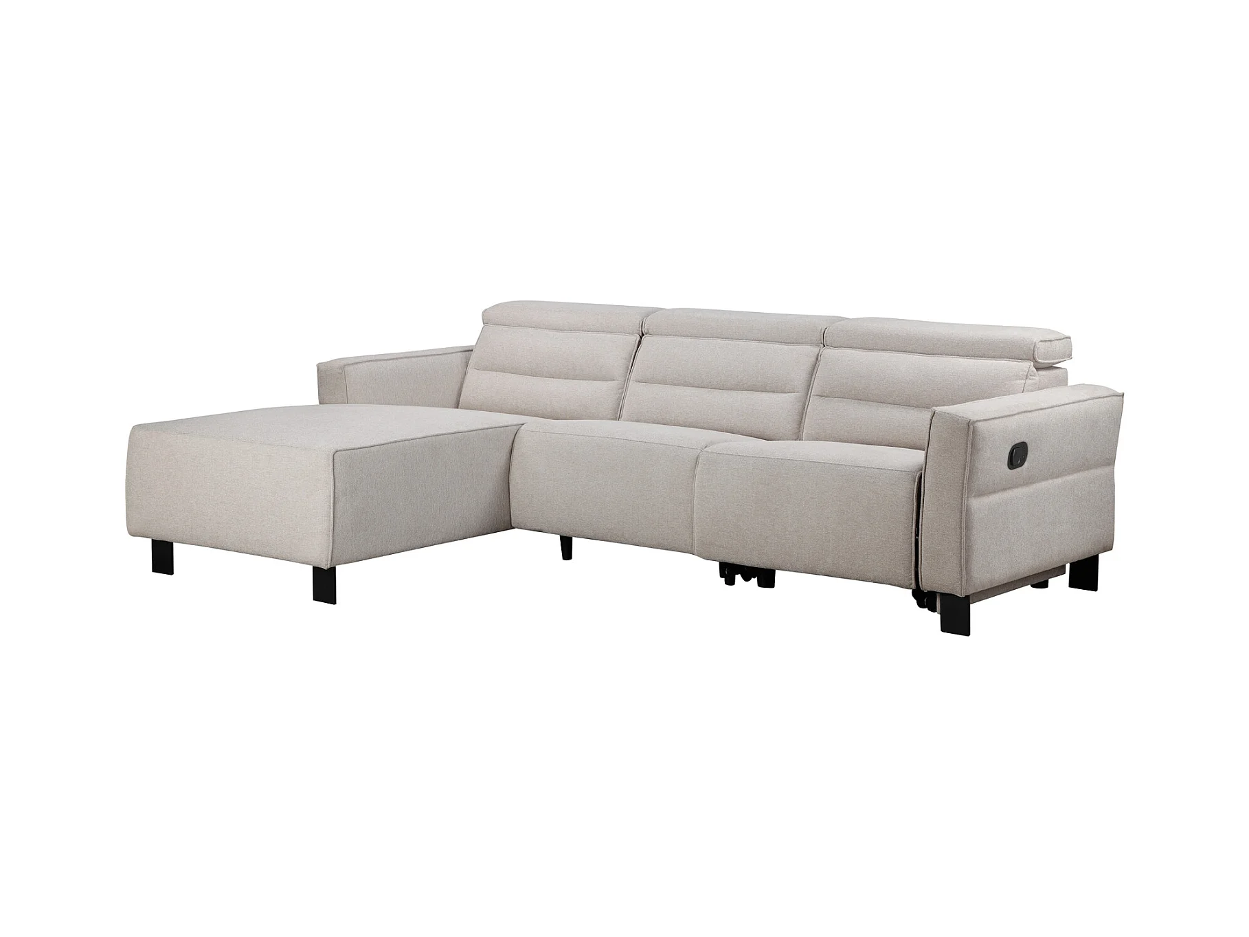 Hoekbank 3-zits met 1 handmatige relaxer in crèmekleurige stof