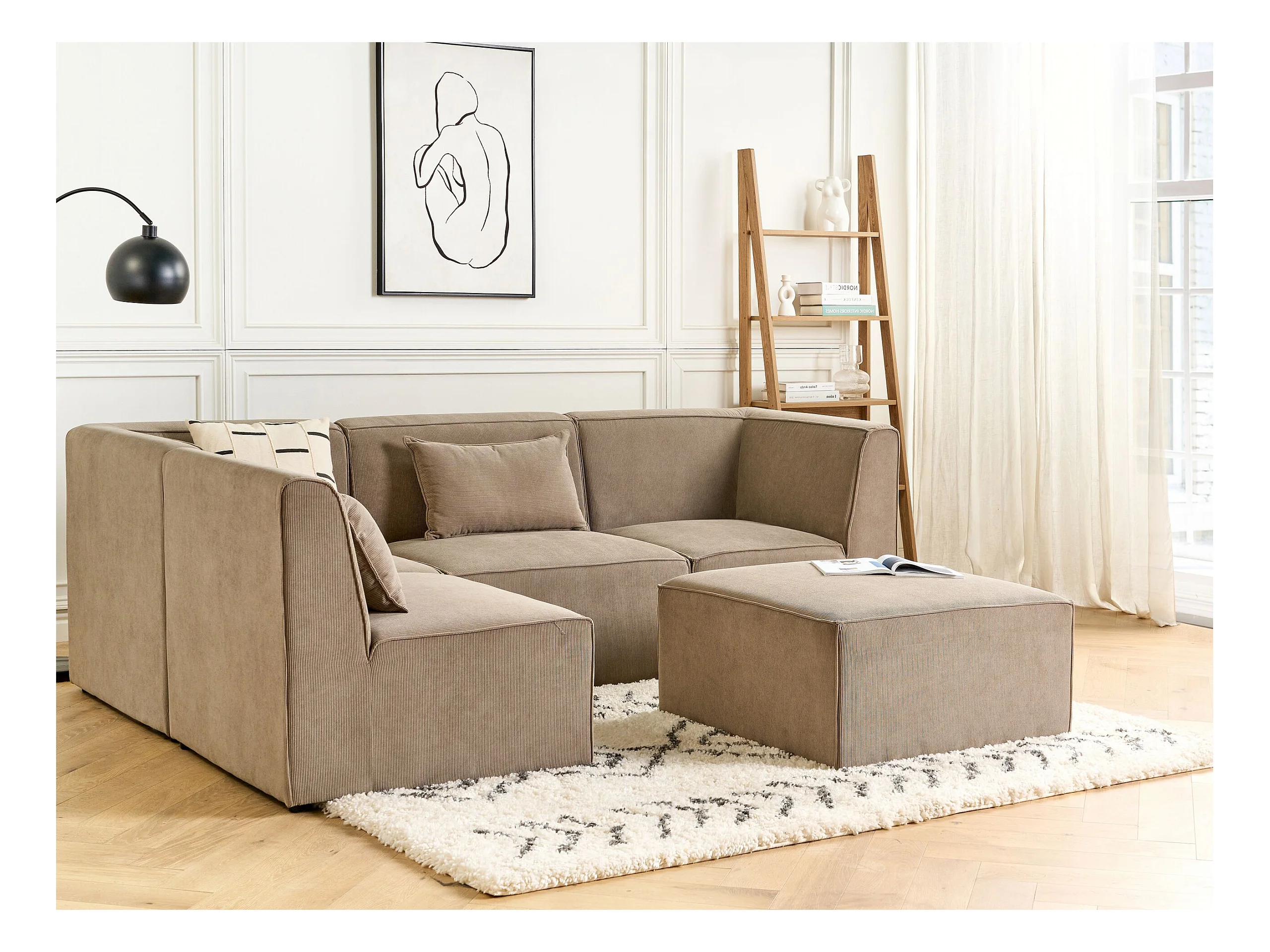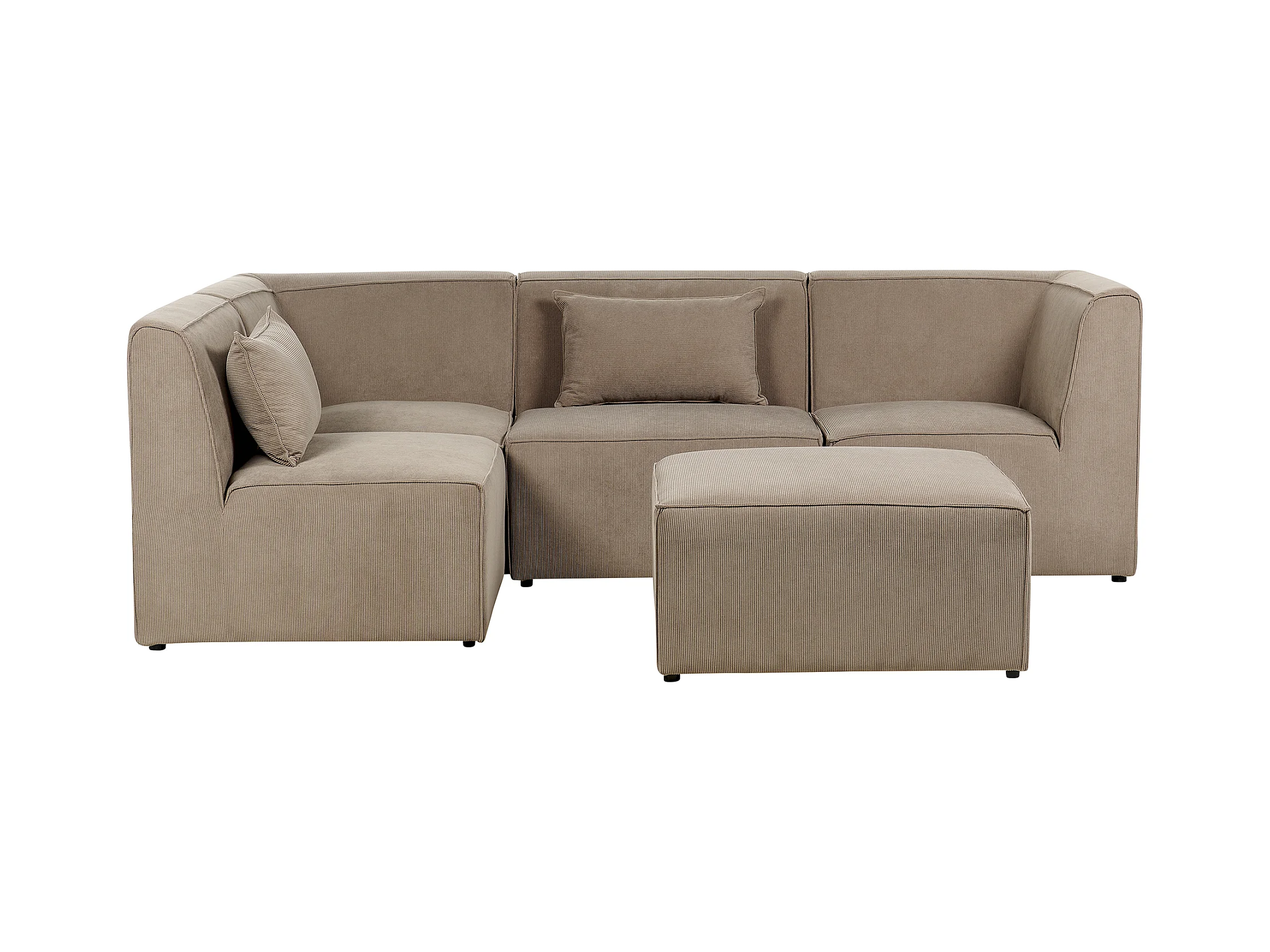 Modulaire hoekbank LEMVIG Corduroy Taupe Met ottomaan 4-zitter Rechterzijde
