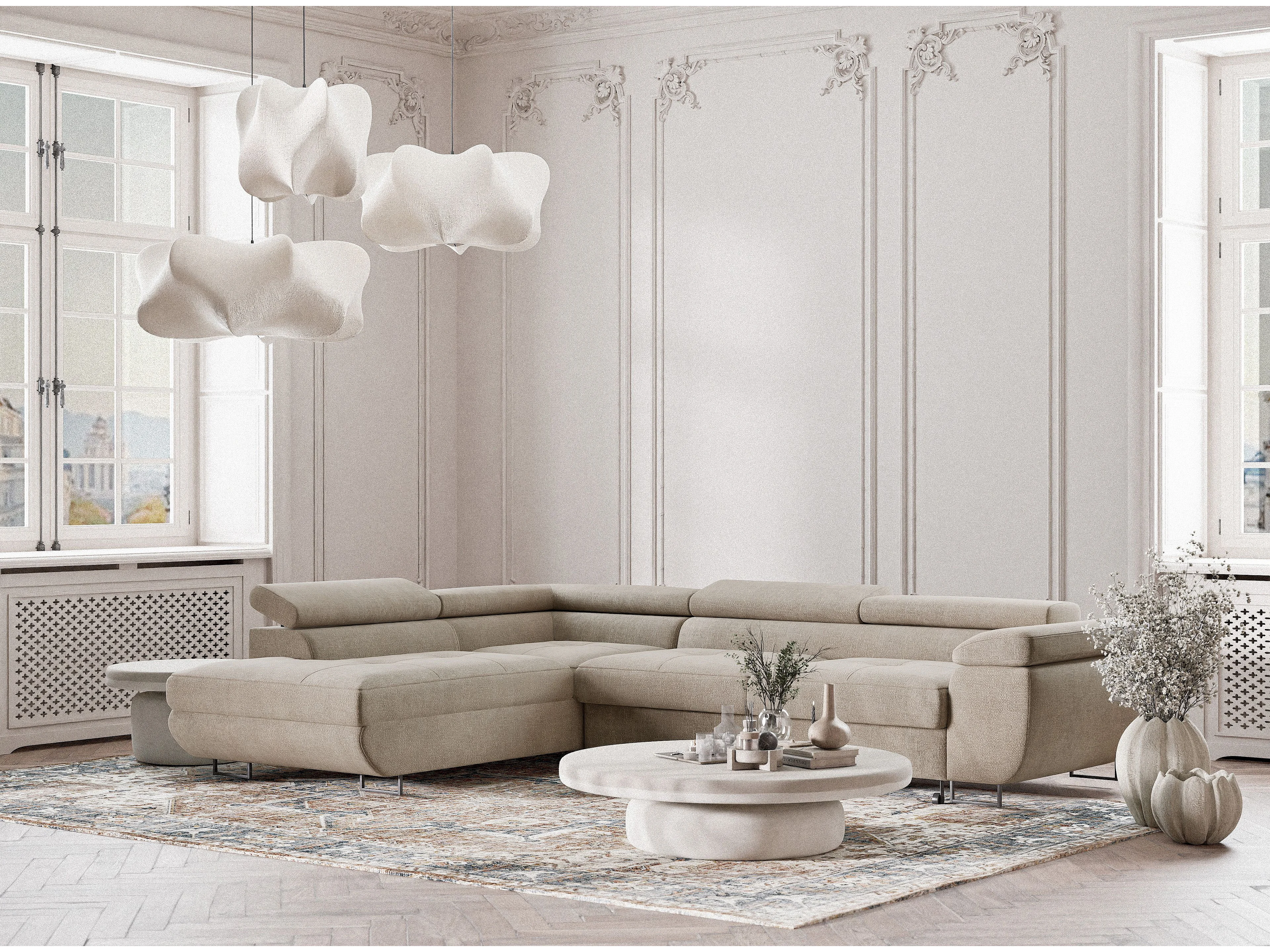 Hoekbank 4-zits met hoek links - van chenille stof - beige - CONCORD