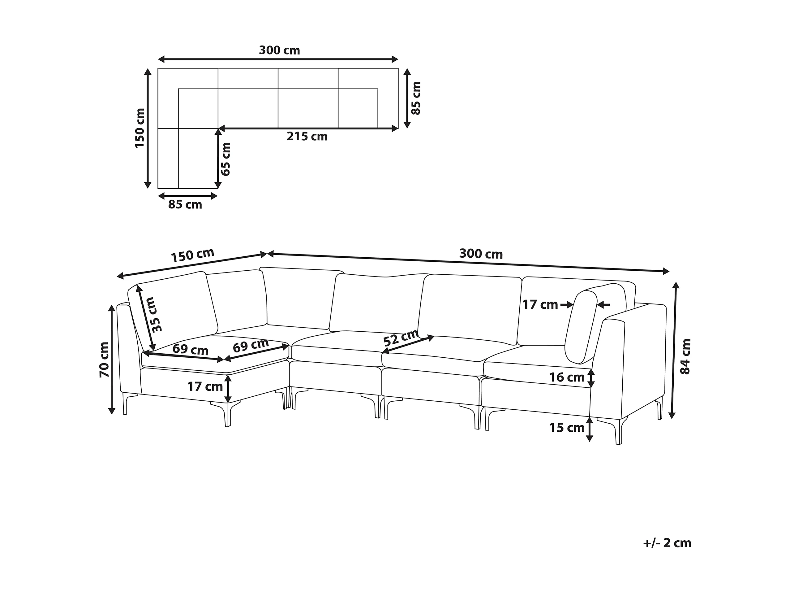 Modulaire hoekbank EVJA Fluweel Marineblauw 5-zitter Rechterzijde