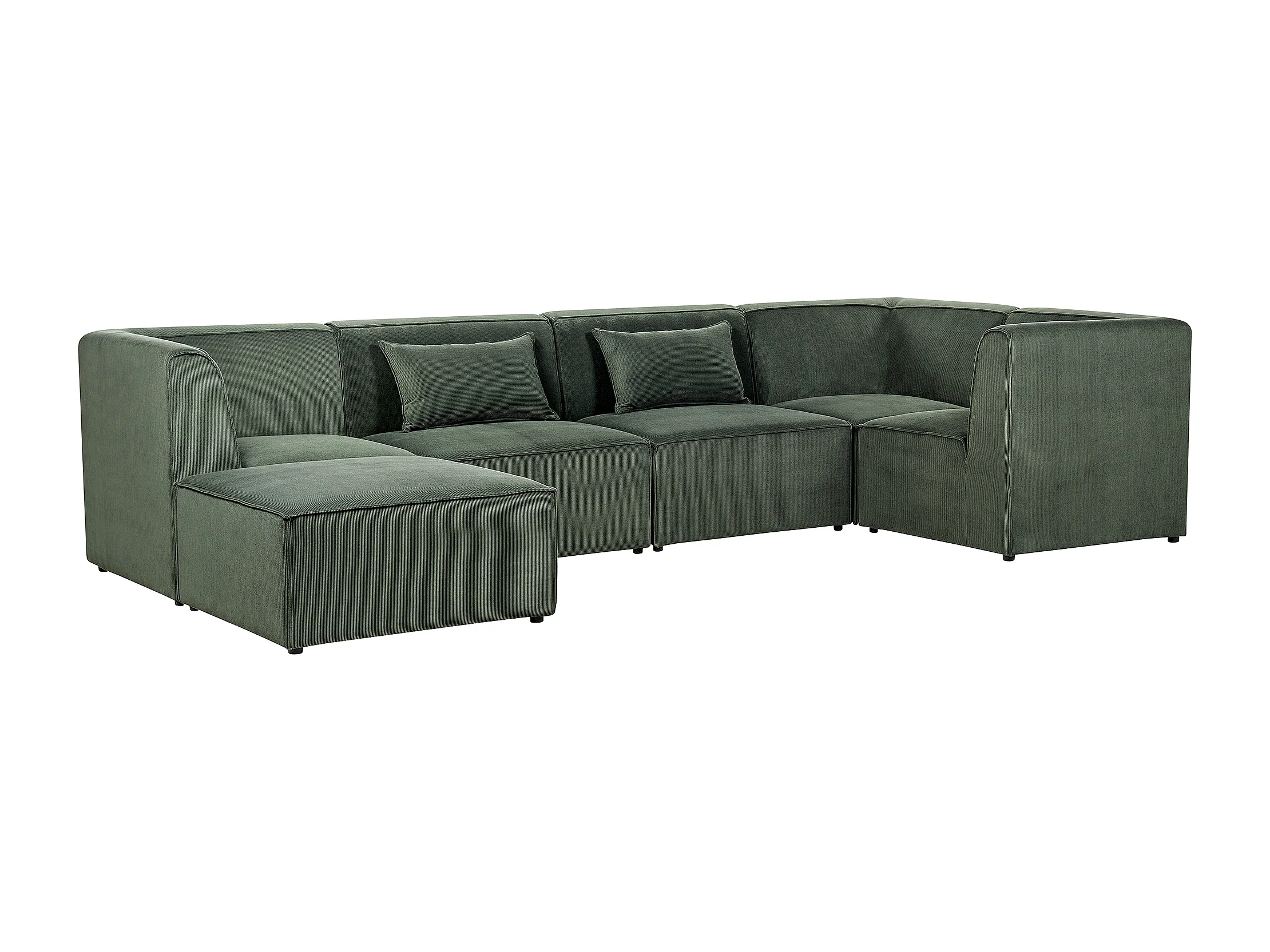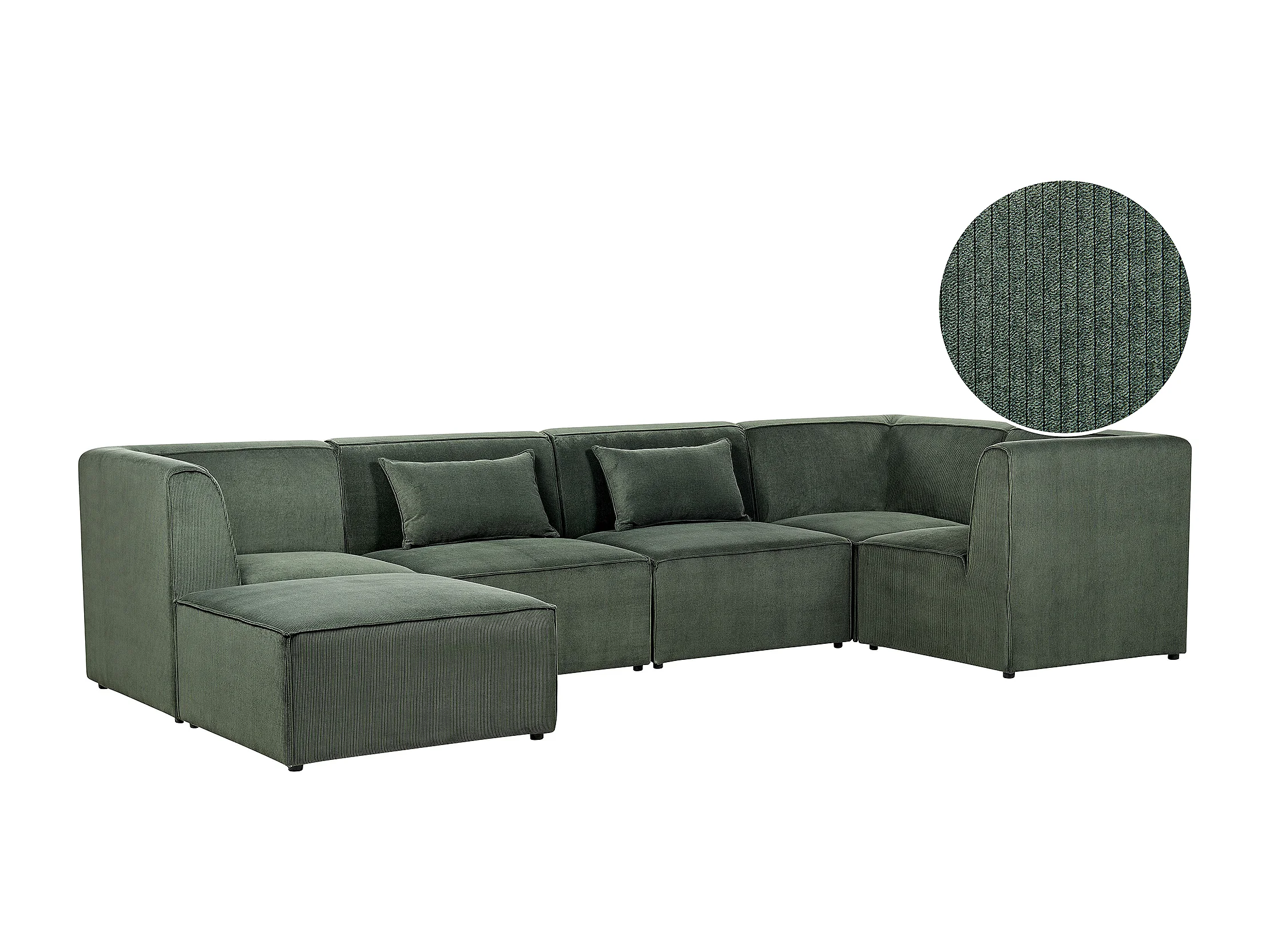 Modulaire hoekbank LEMVIG Corduroy Donkergroen Met ottomaan 5-zitter Linkerzijde