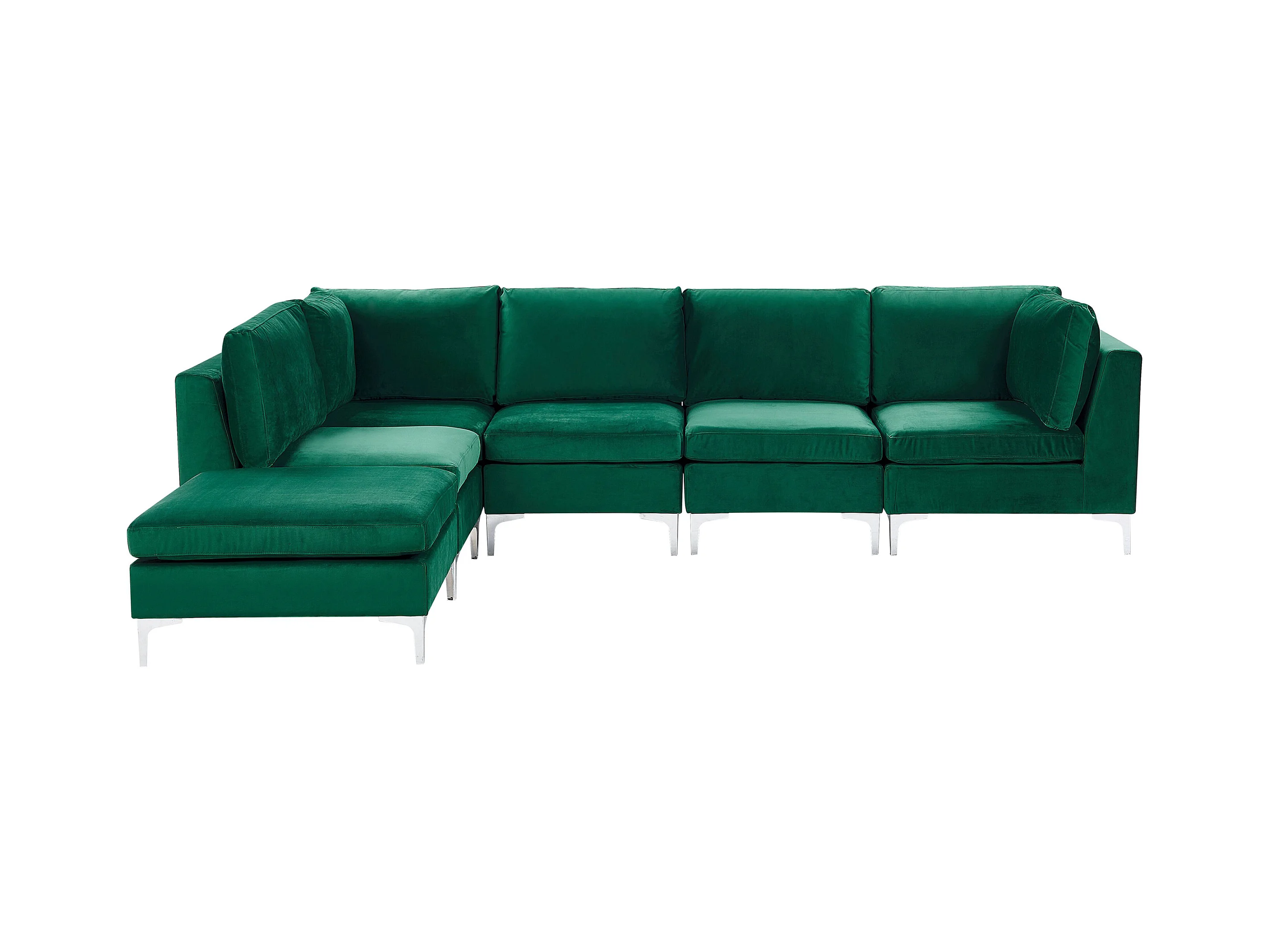 Modulaire hoekbank EVJA Fluweel Groen Met ottomaan 5-zitter Rechterzijde
