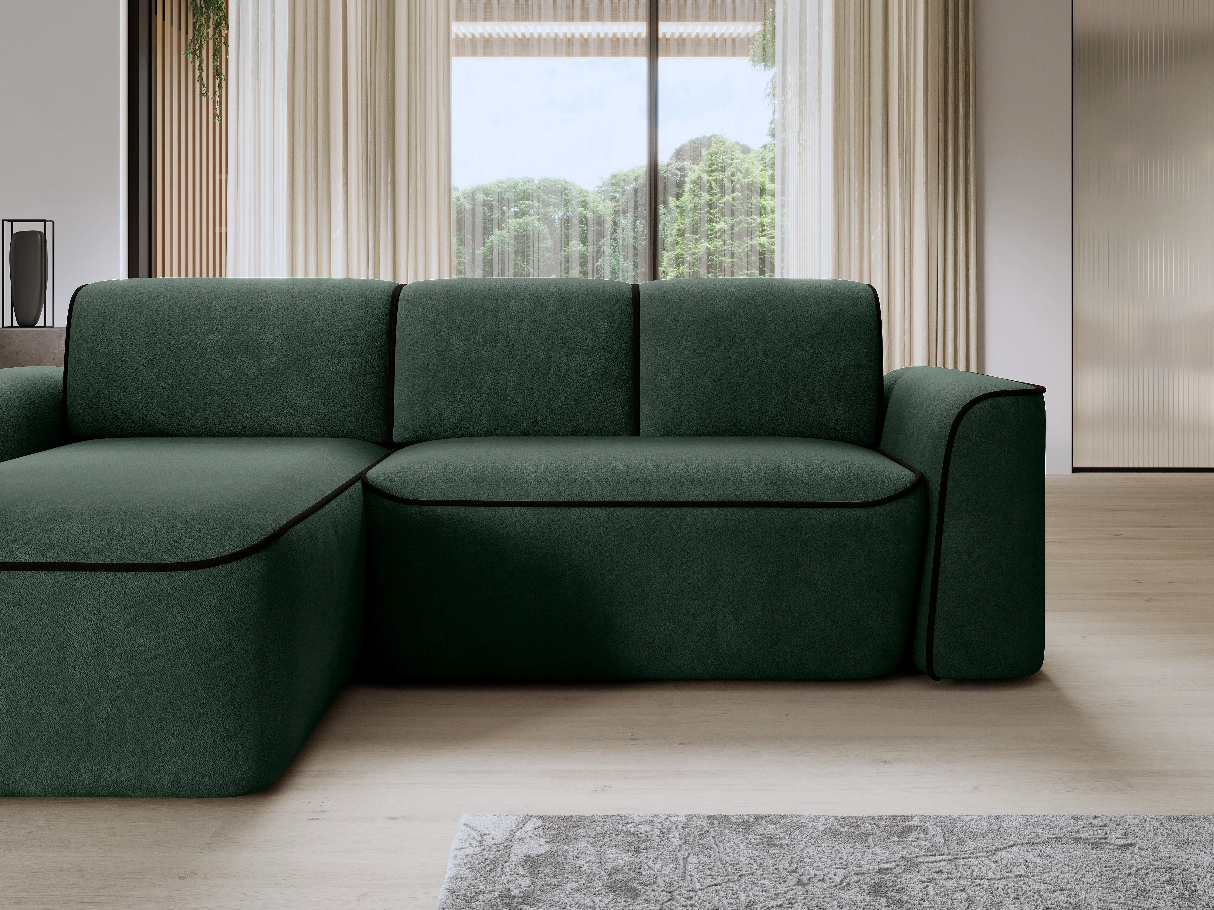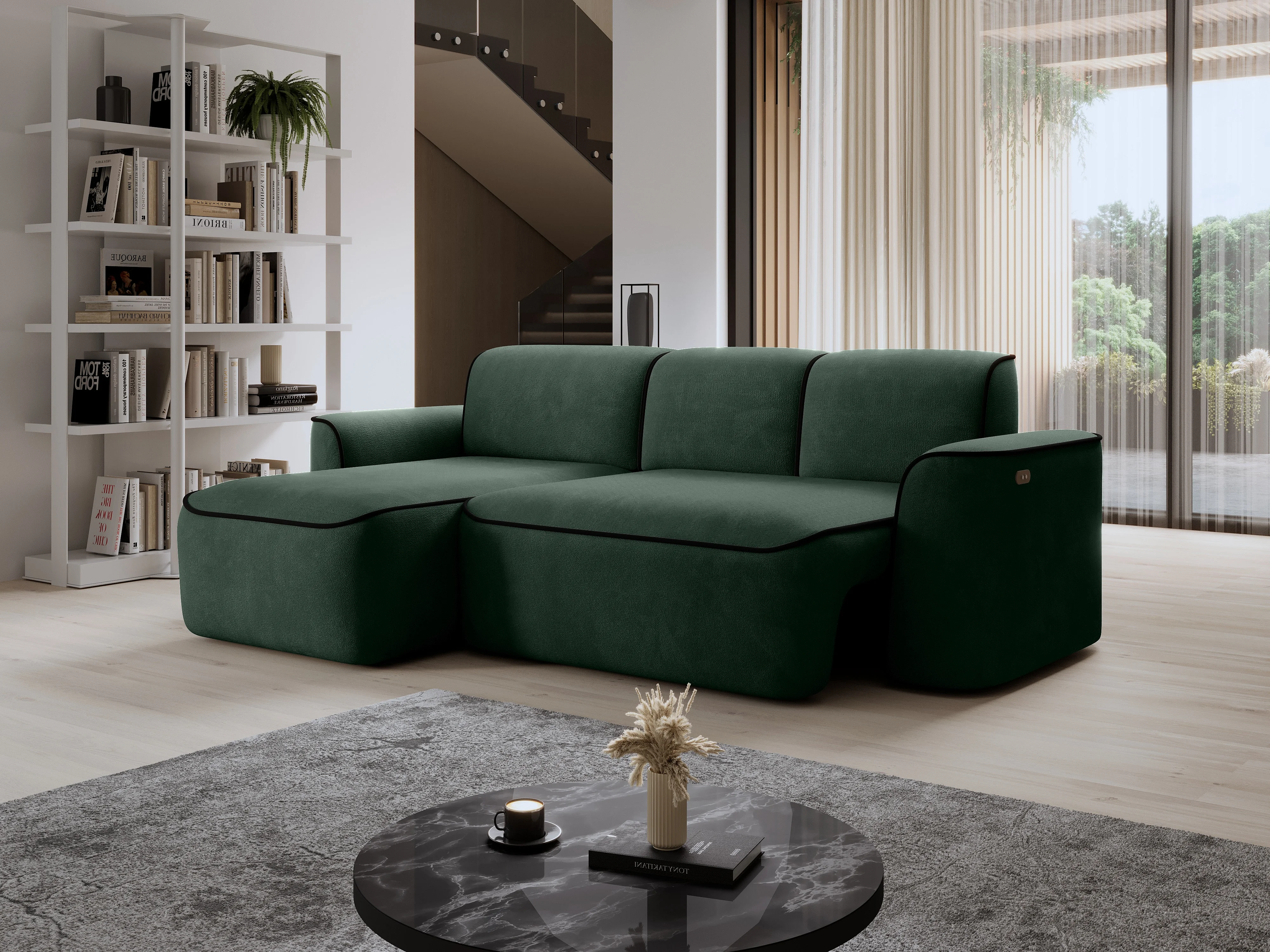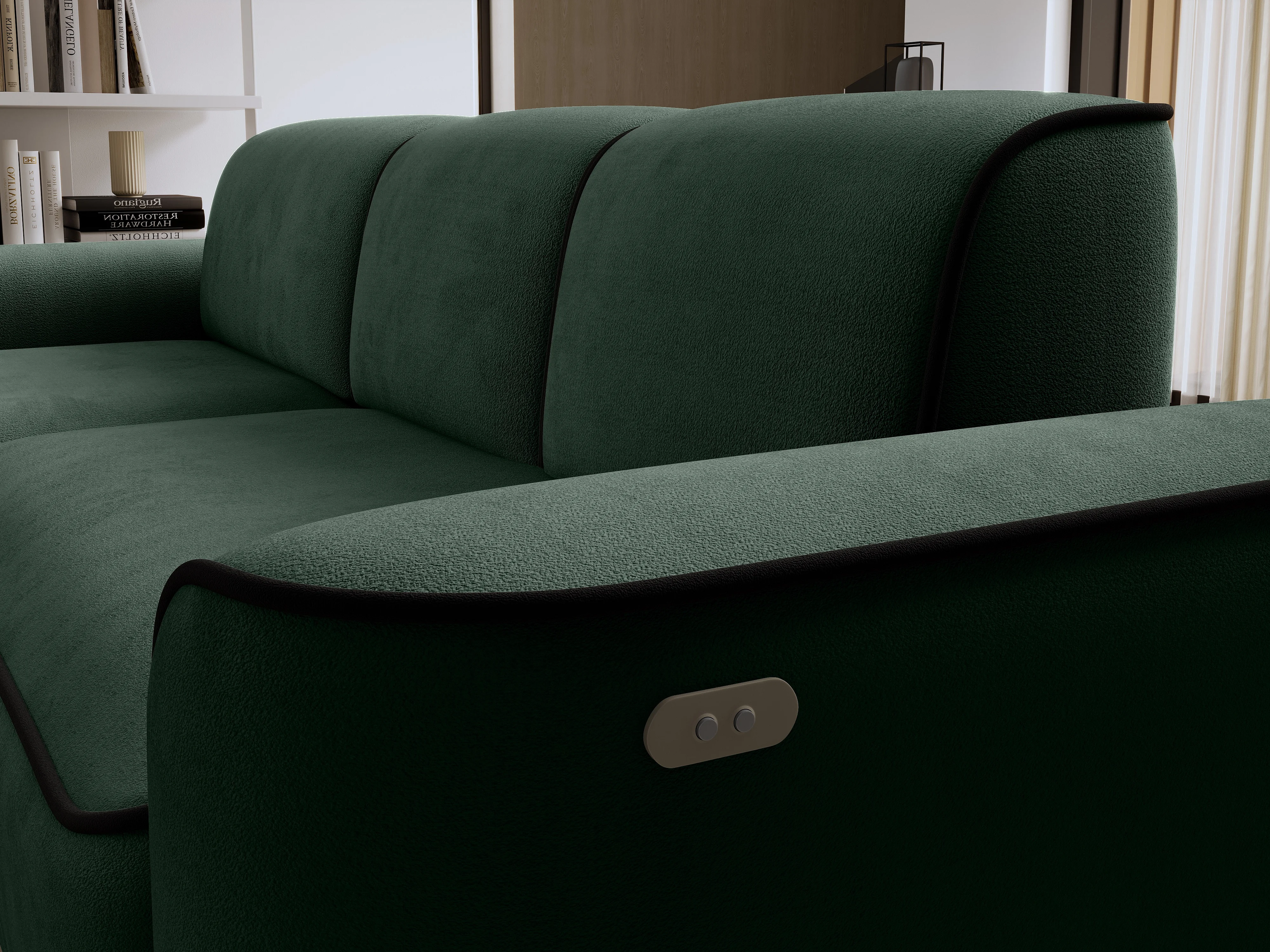DUMAS elektrische stoffen hoekbank - Wellnessinnovatie-Kleur Donkergroen/Zwart-linkerhoek