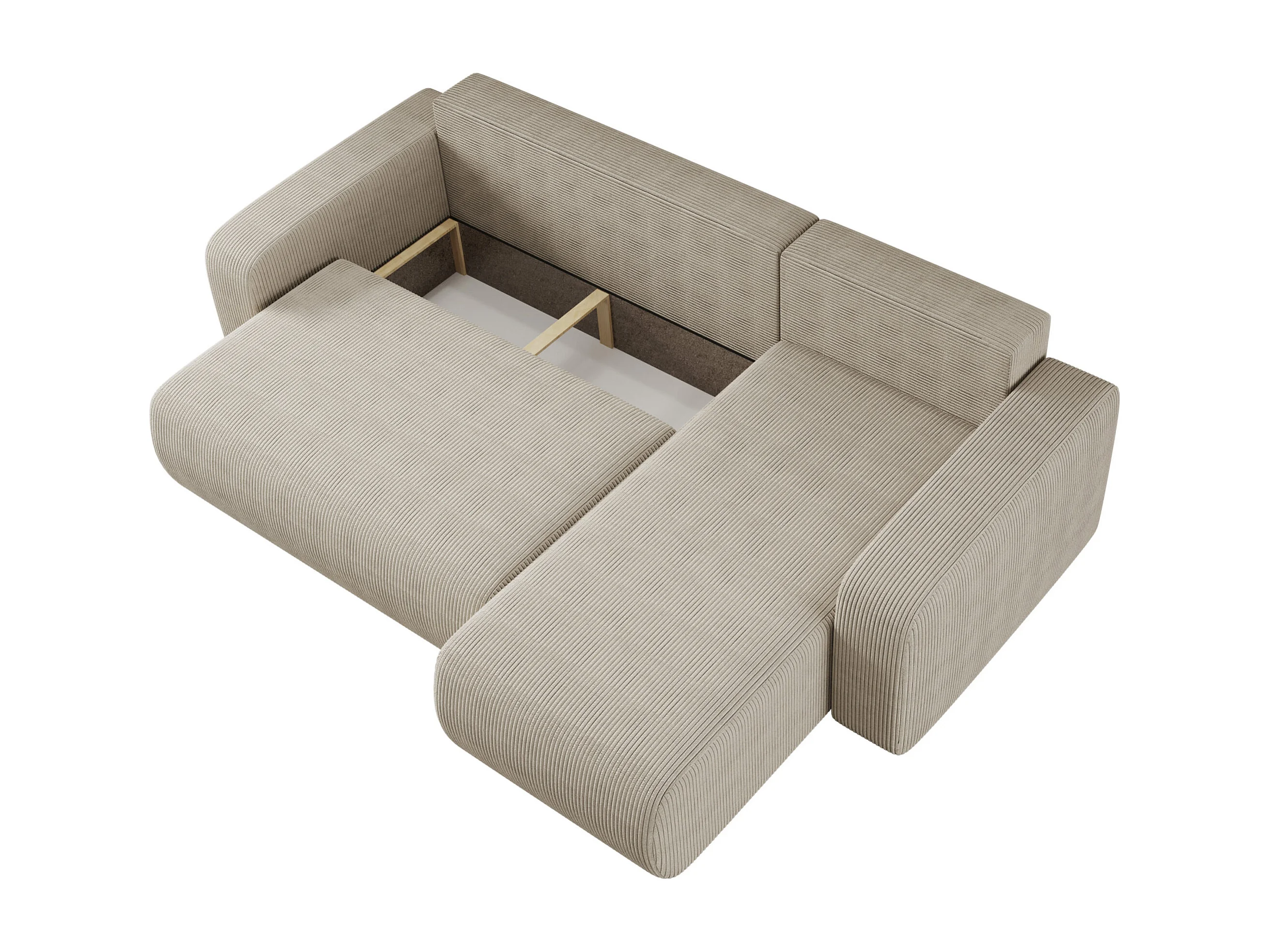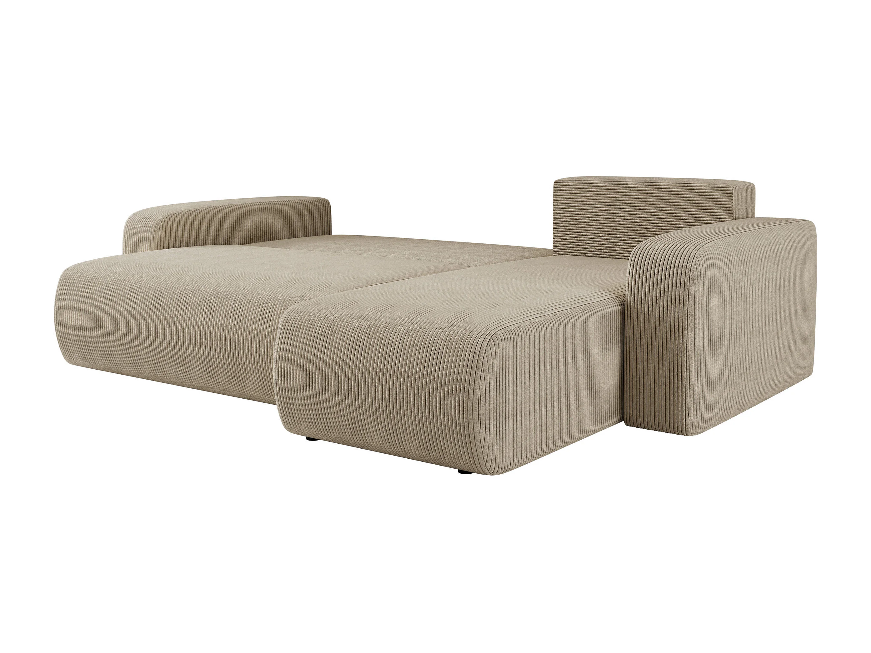 Hoekbank bedbank van beige ribfluweel PIANO L met opbergruimte en snel uitklapsysteem