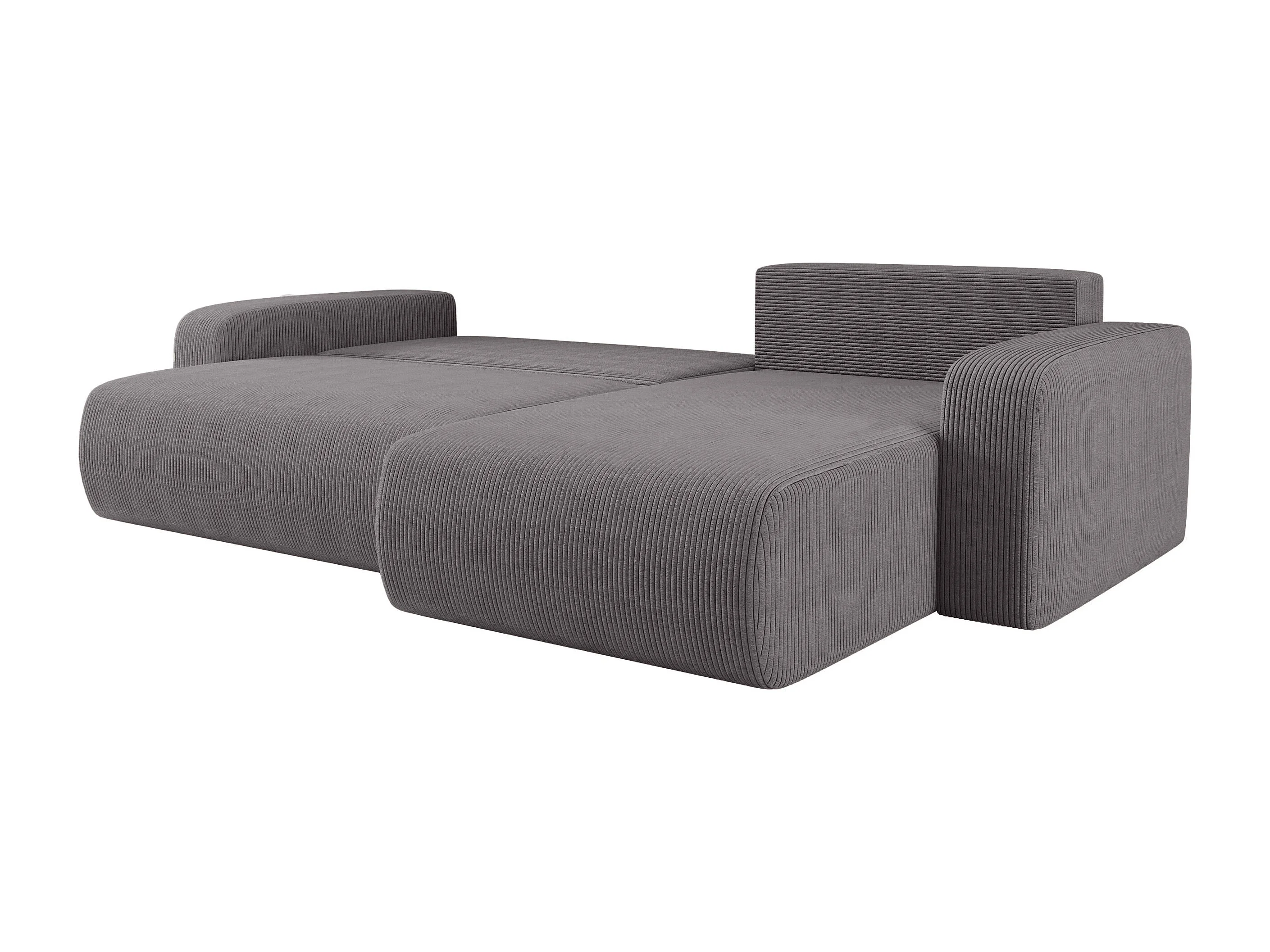 Hoekbank bedbank van grijs ribfluweel PIANO XL met opbergruimte en snel uitklapsysteem