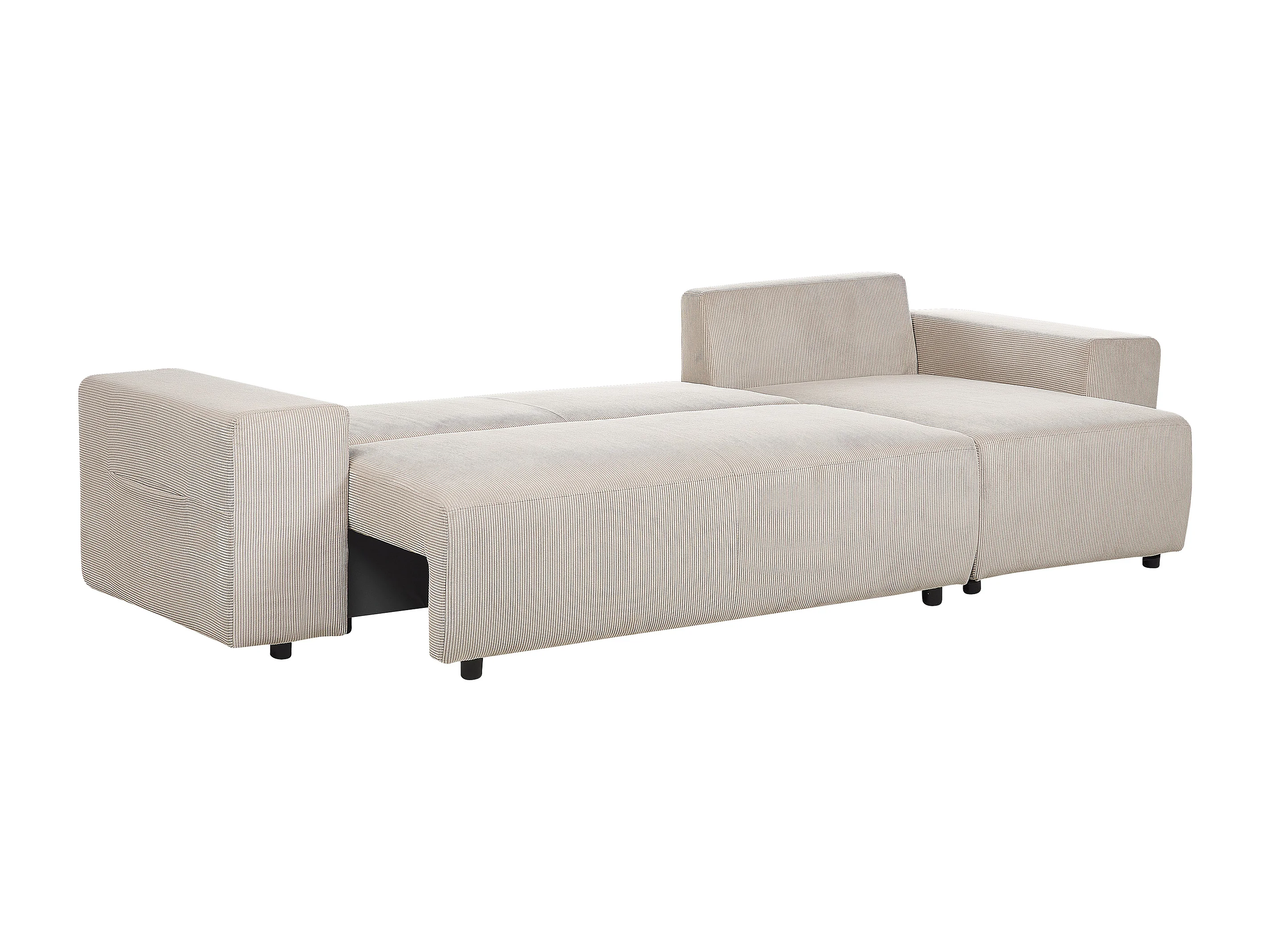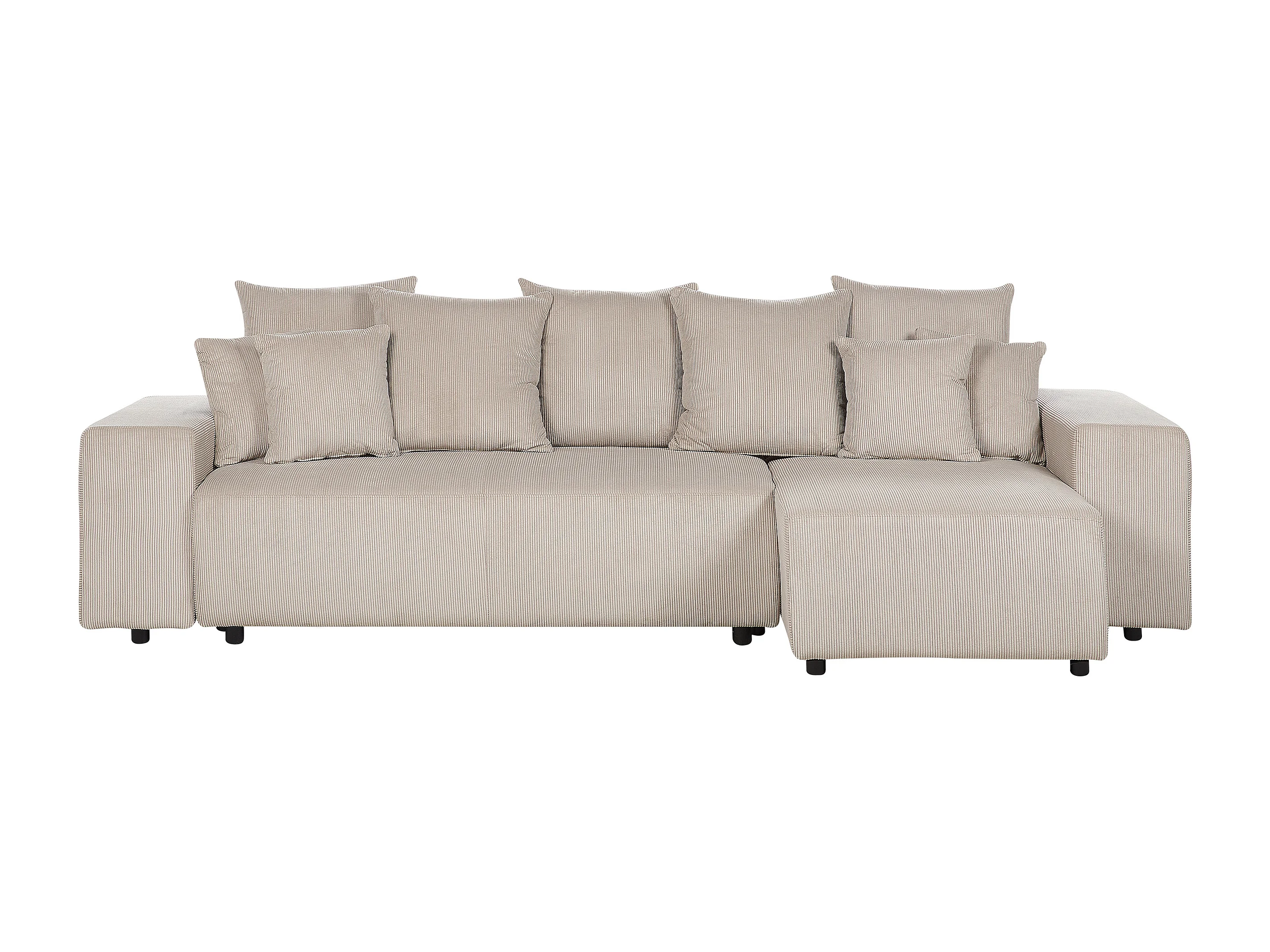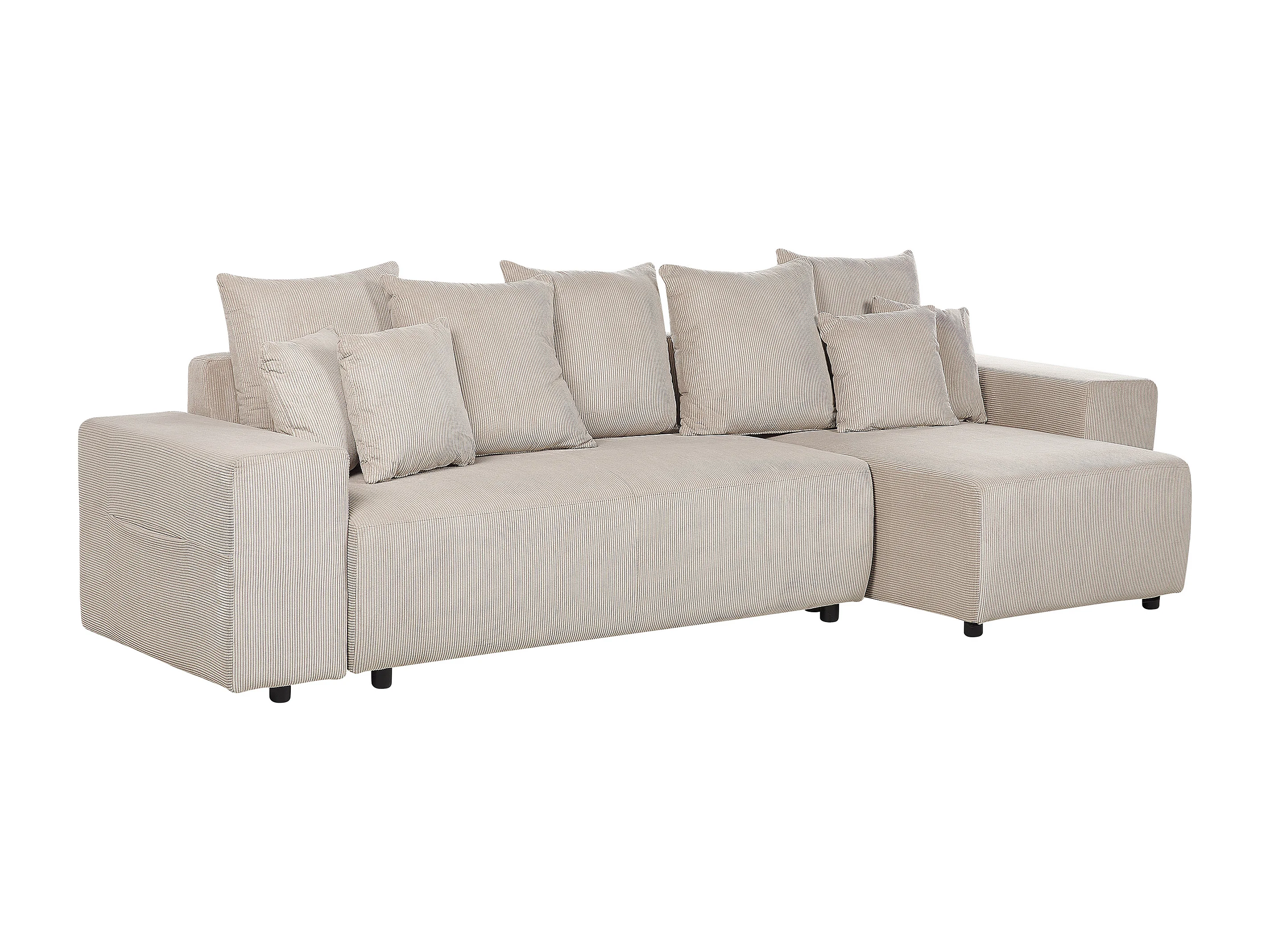 Hoekslaapbank LUSPA Corduroy Taupe met opbergruimte 3-zitter Linkerzijde