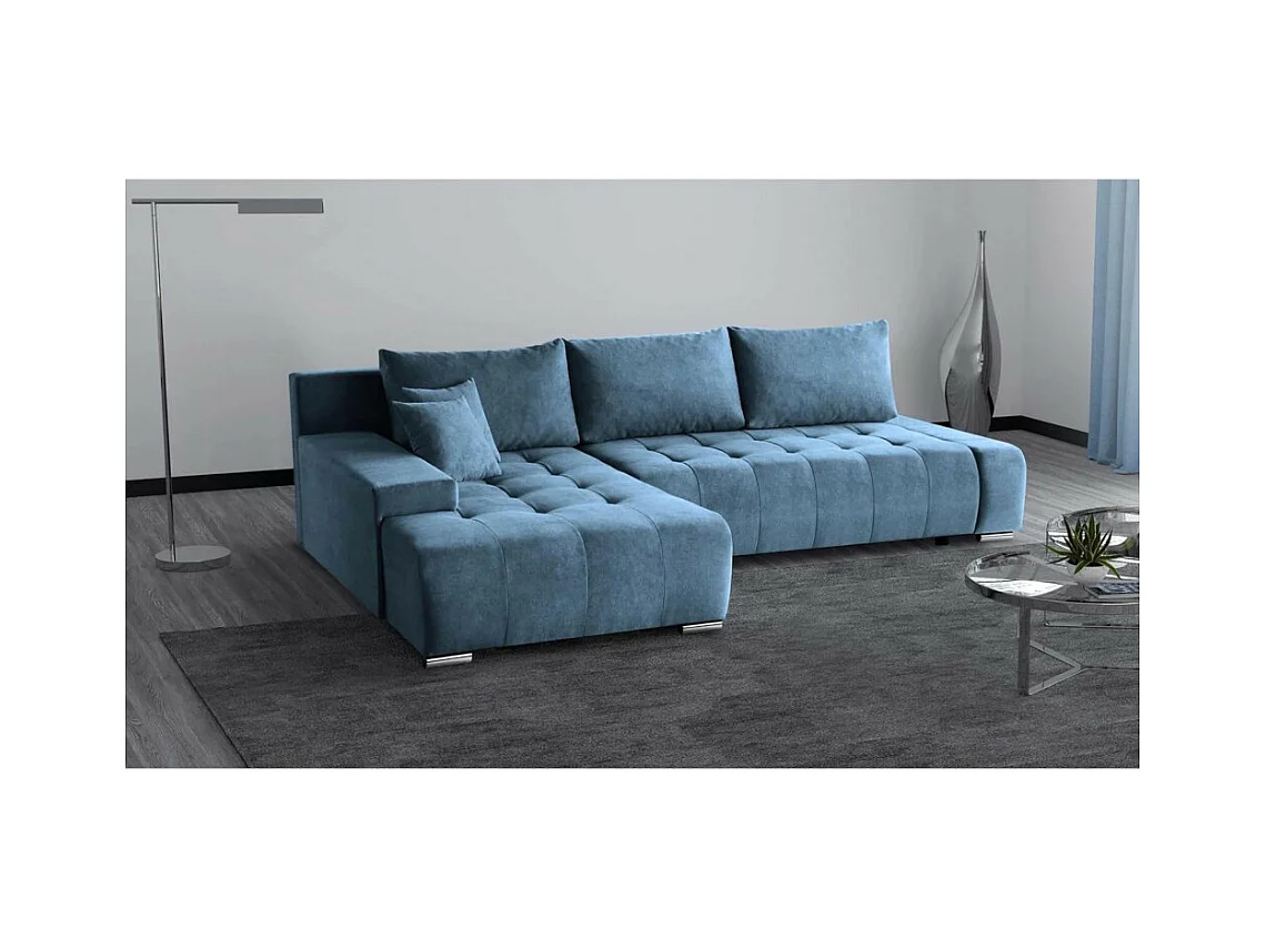 Kampus hoekbank in stof met leereffect – Converteerbaar en opbergruimte-Kleur Blauwe Eend-juiste hoek