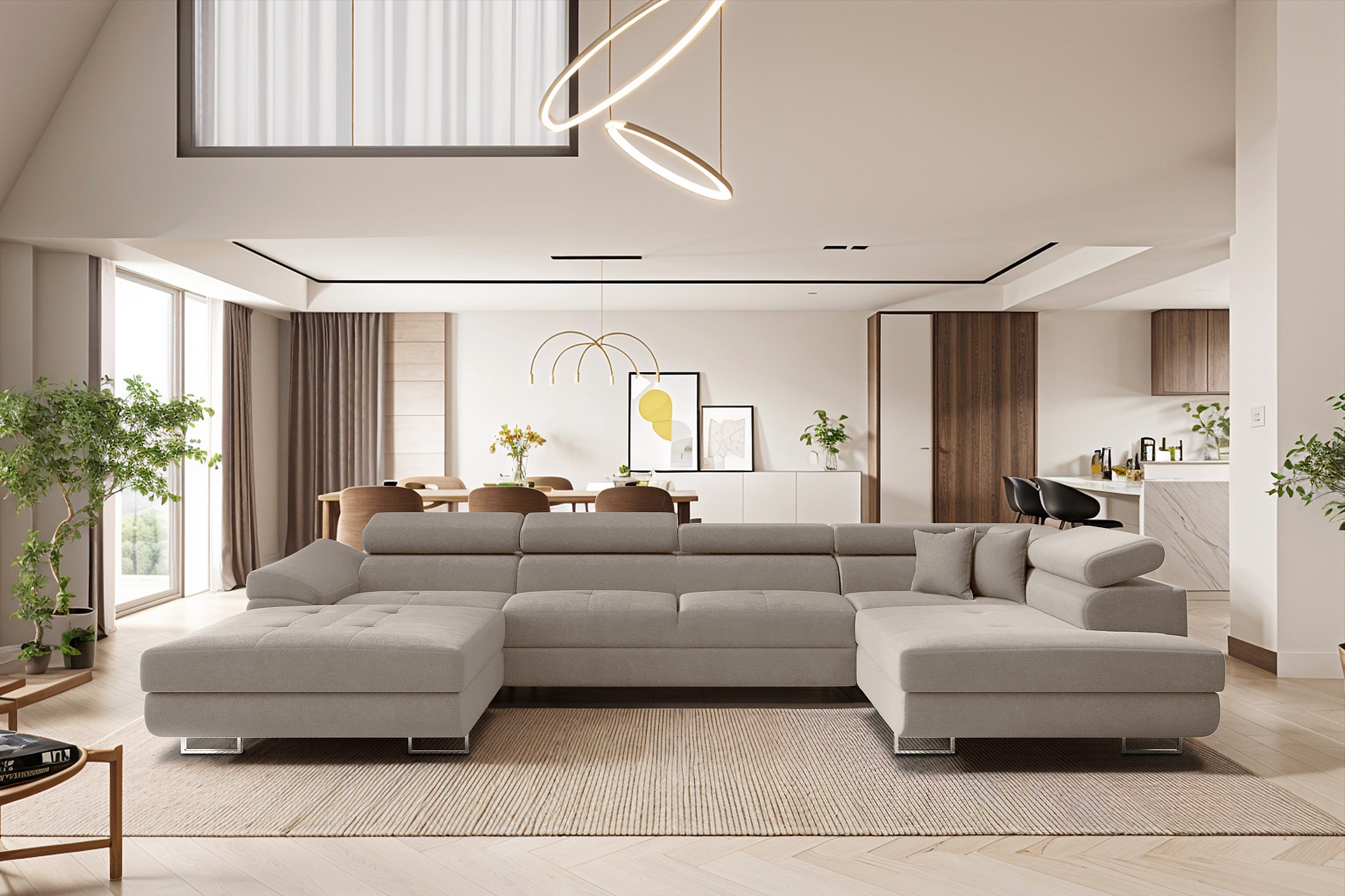Hoekbank FALIO II U-vorm met slaapfunctie, stof Noel, koudbeige, rechts