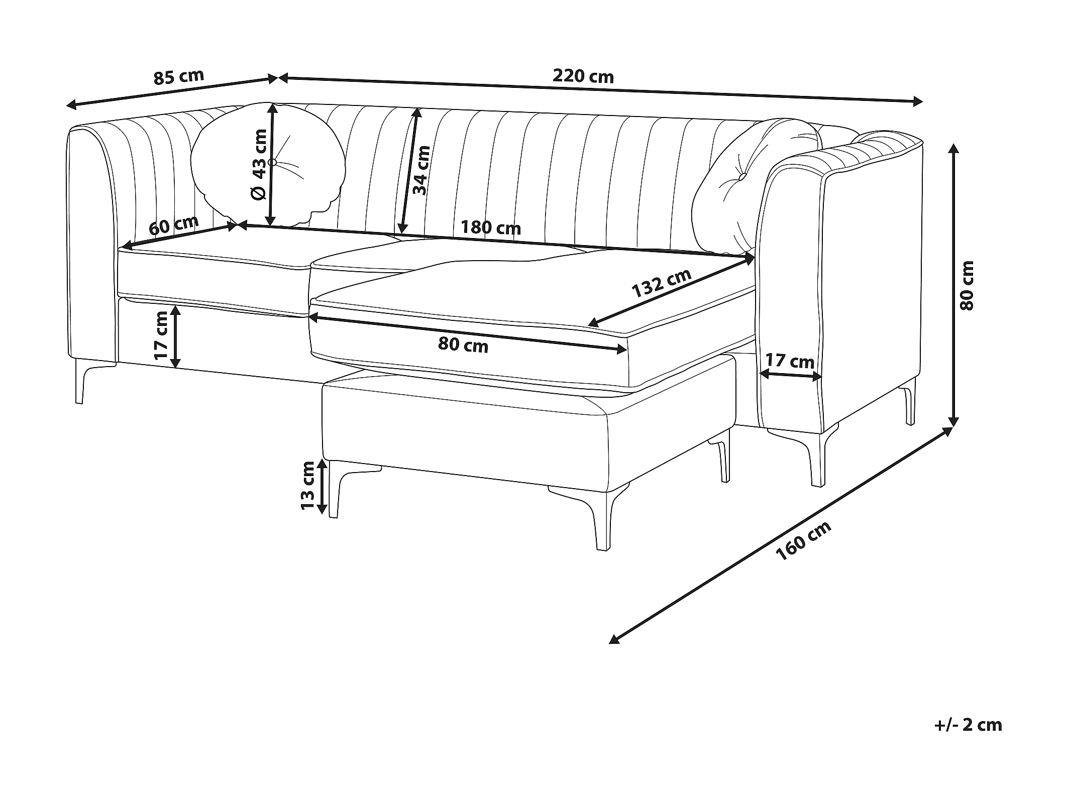 Hoekbank TIMRA Fluweel Marineblauw 3-zitter Linkerzijde
