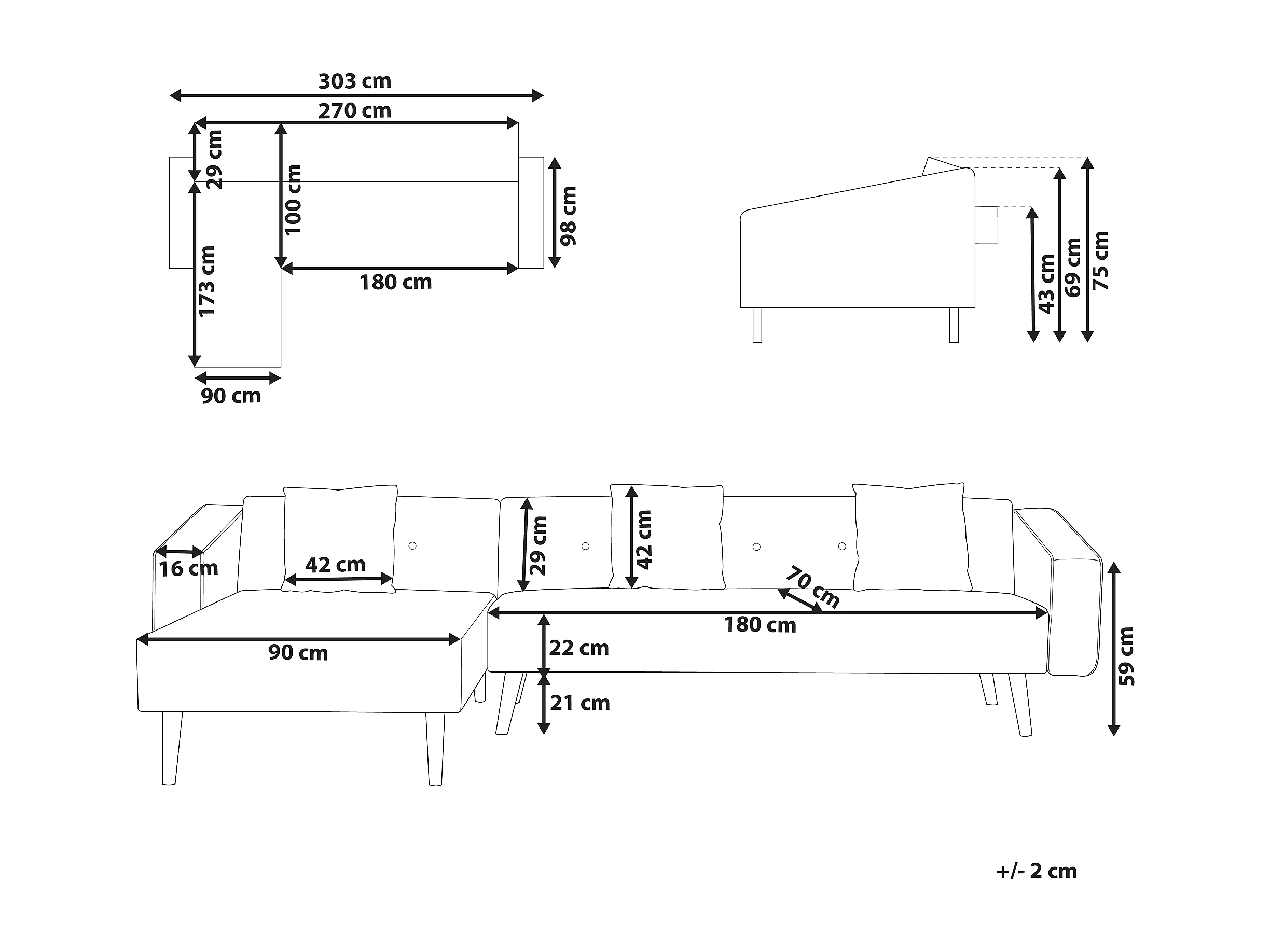 Hoekslaapbank VADSO Fluweel Marineblauw 4-zitter Rechterzijde