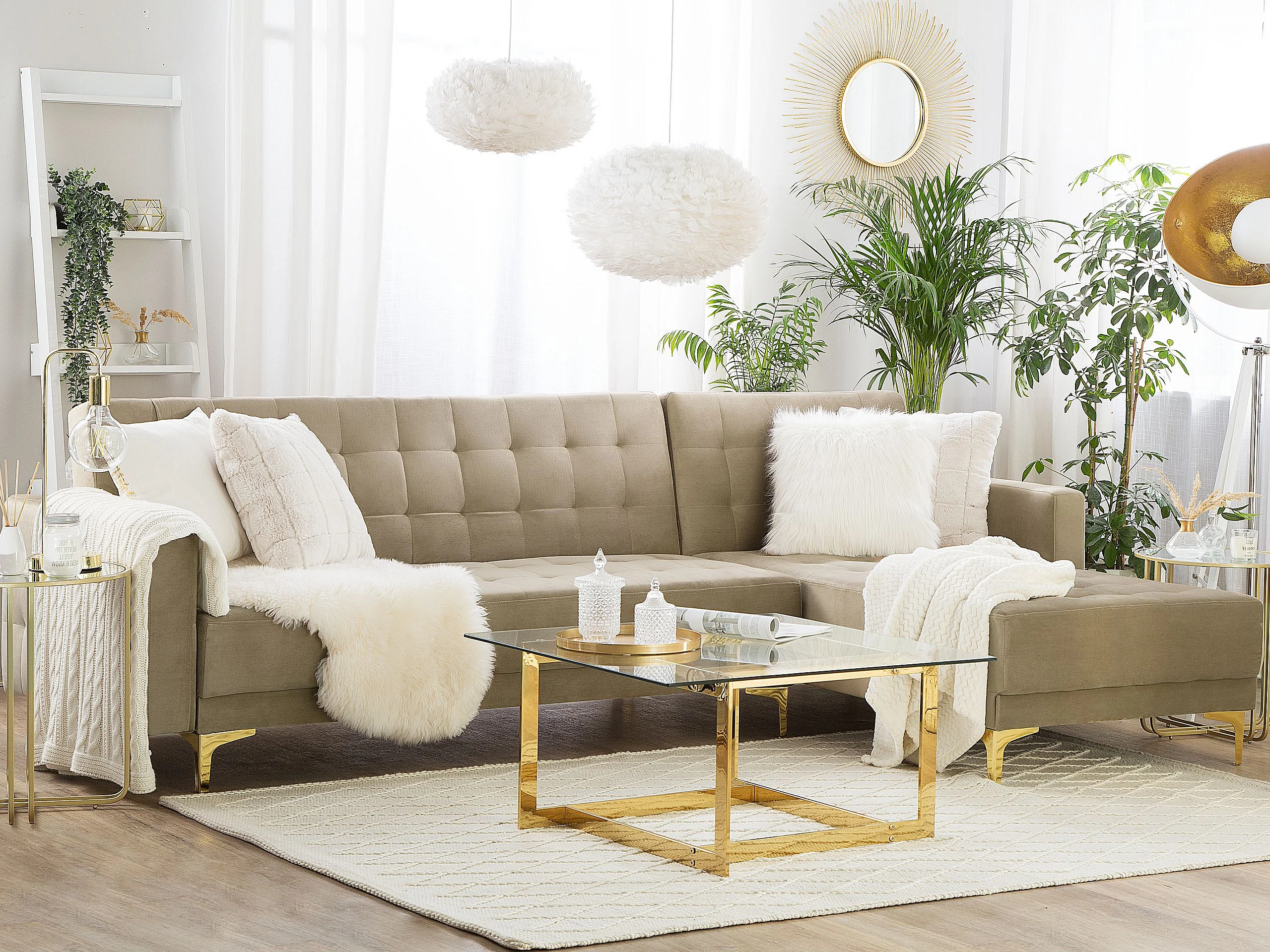 Modulaire hoekslaapbank ABERDEEN Fluweel Zandbeige 4-zitter Linkerzijde