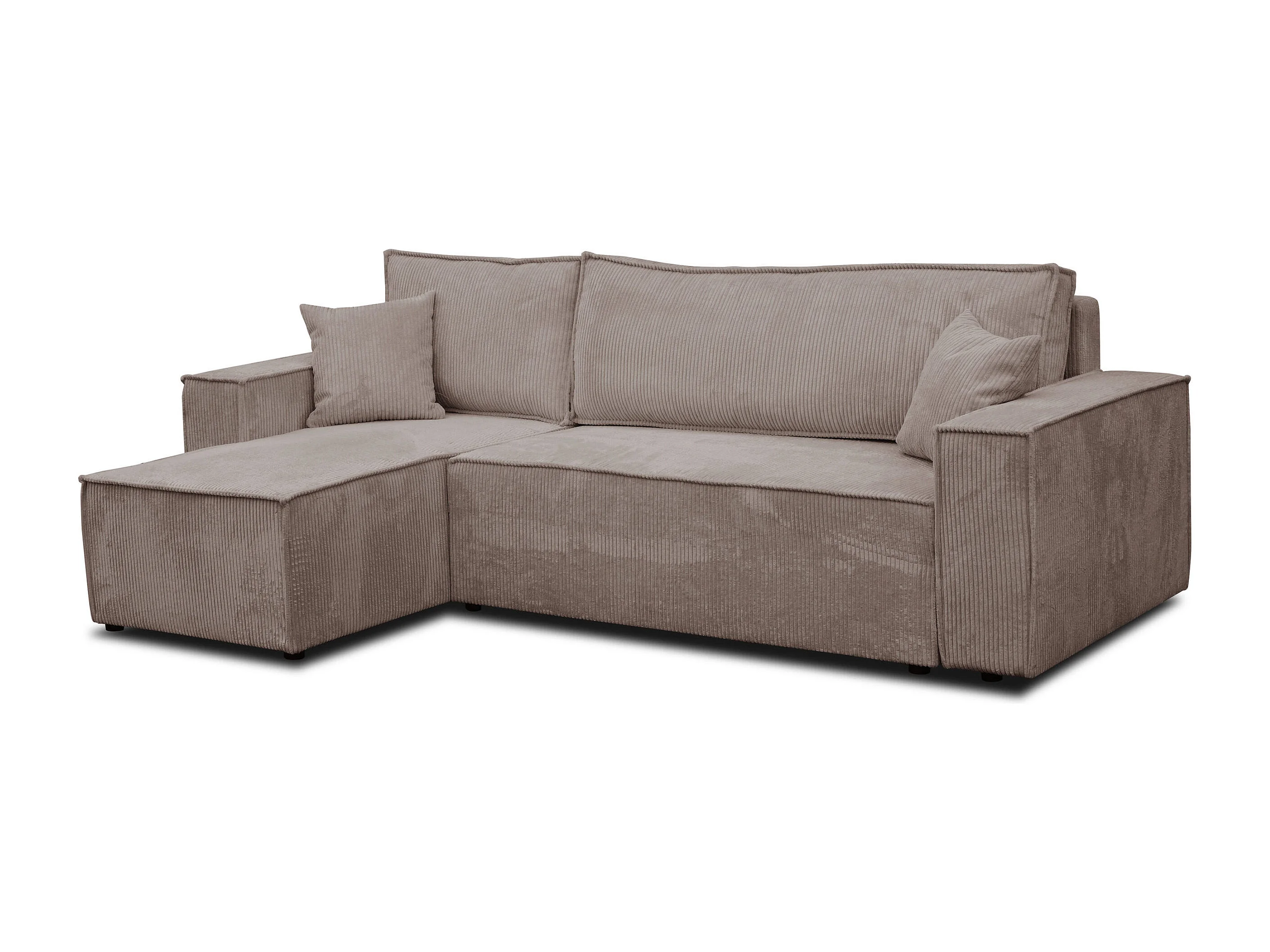 Hoekbank Hugo L, hoekbank in L-vorm met slaapfunctie en bedbak, kleur: lichtbruin, corduroy, universele ottomane