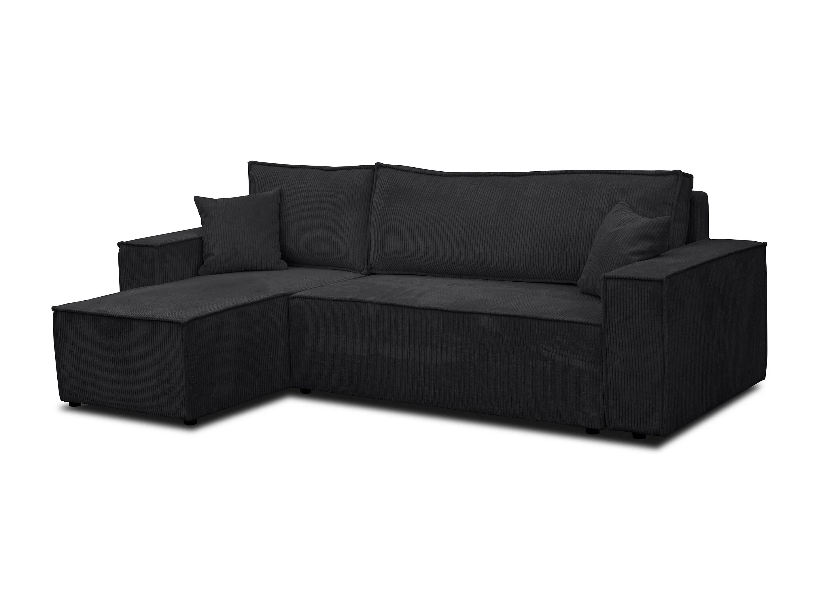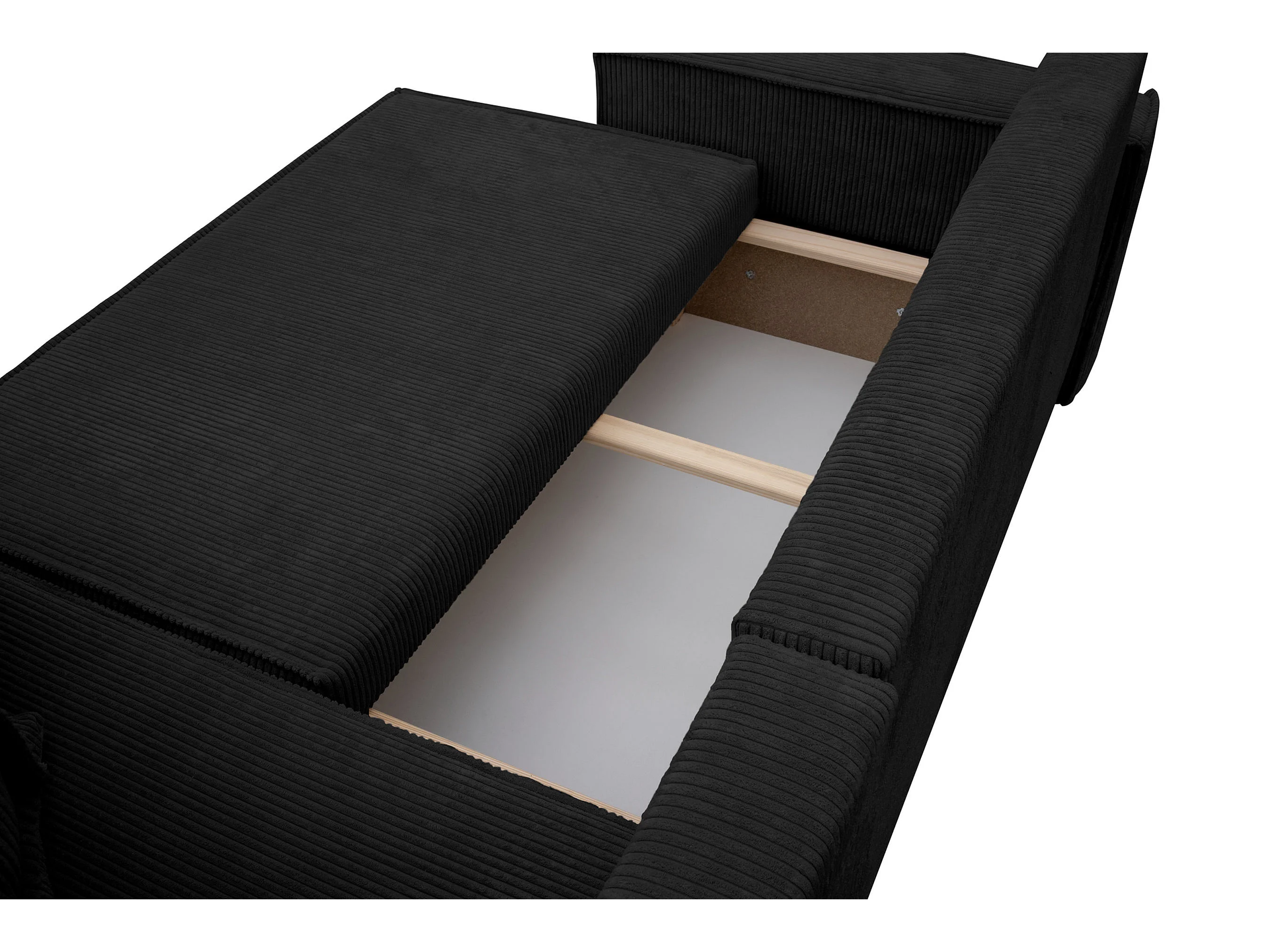 Hoekbank Hugo L, hoekbank in L-vorm met slaapfunctie en bedbak, kleur: zwart, corduroy, ottomane Unsiversal