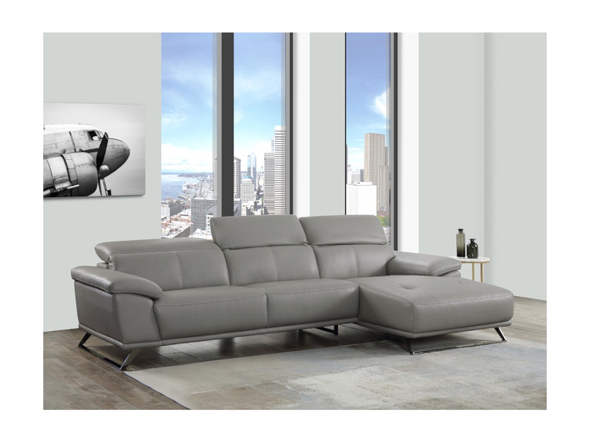 Hoekbank in leer AZIDEE - Licht grijs - hoek rechts
