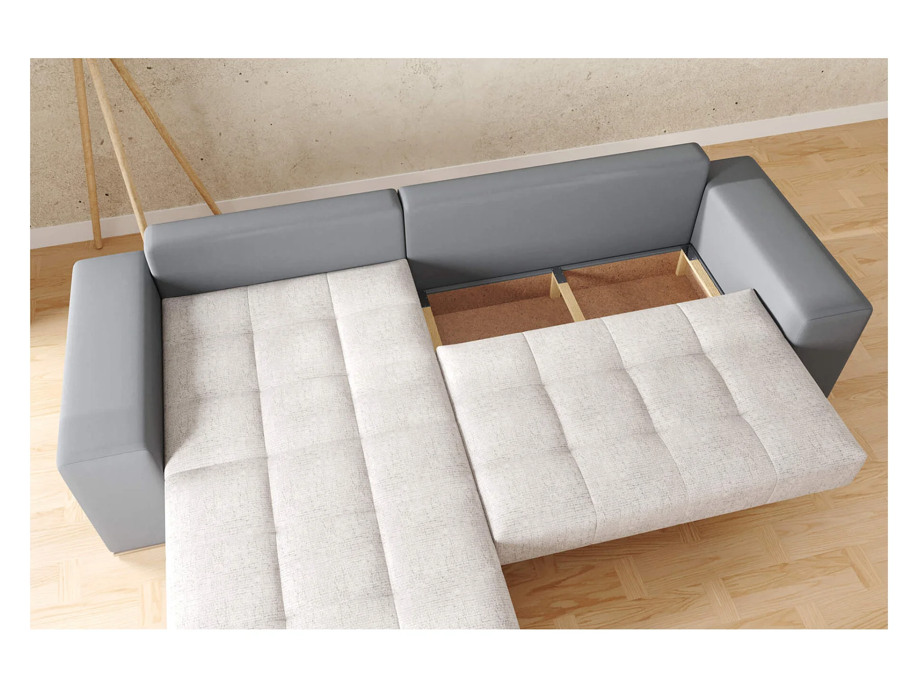 hoekbank josua L met bed en opbergruimte - grijs + grijs pu
