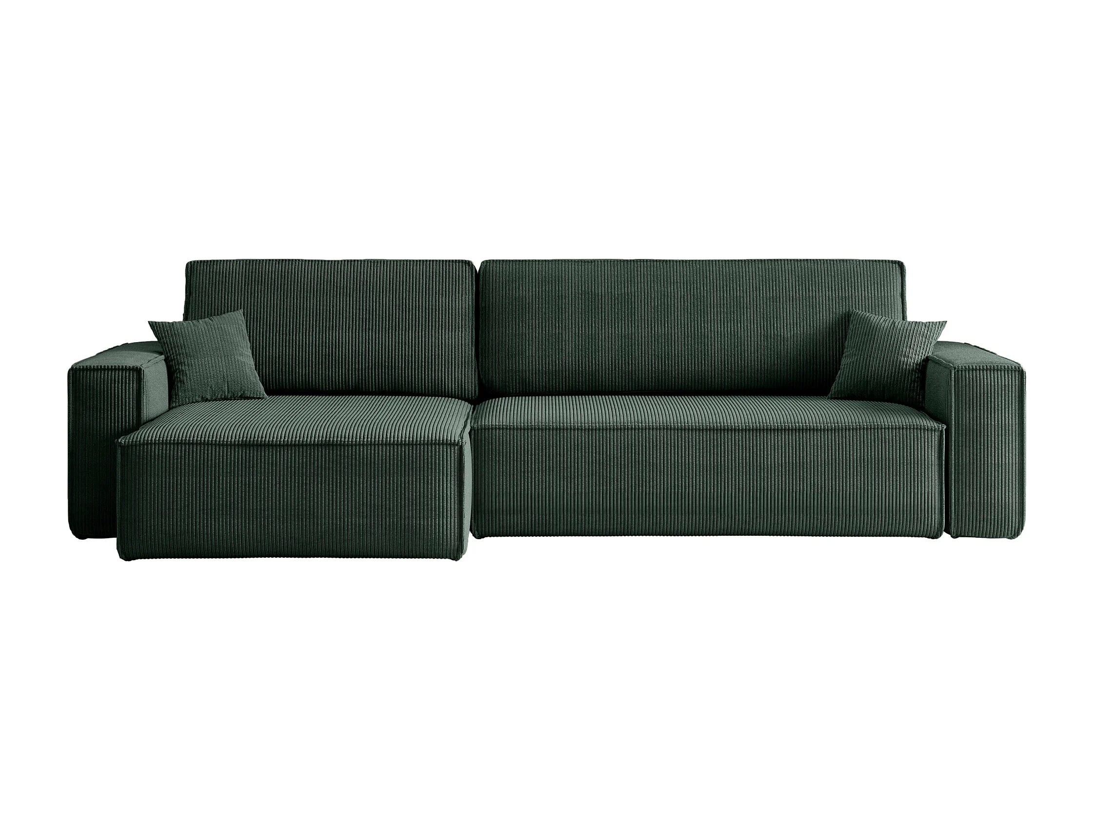 Hoekbank Karl XL met slaapfunctie en opbergruimte, ribfluweel flessengroen – VINOTTI