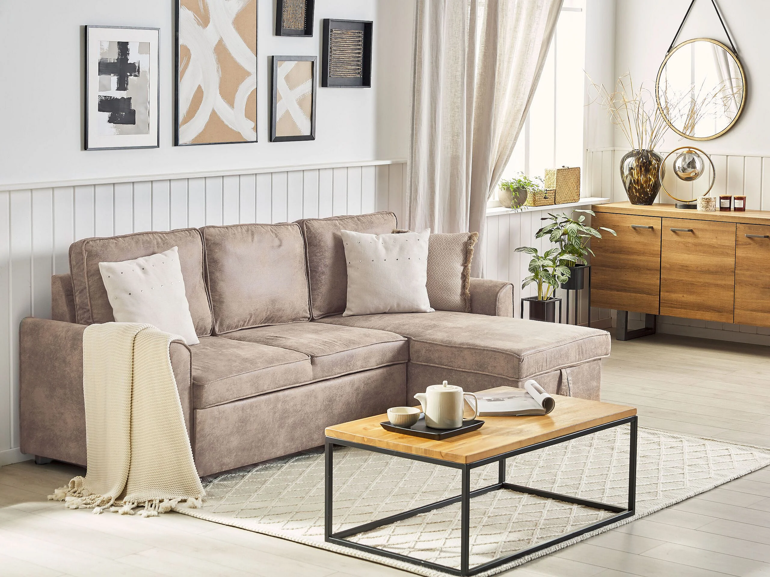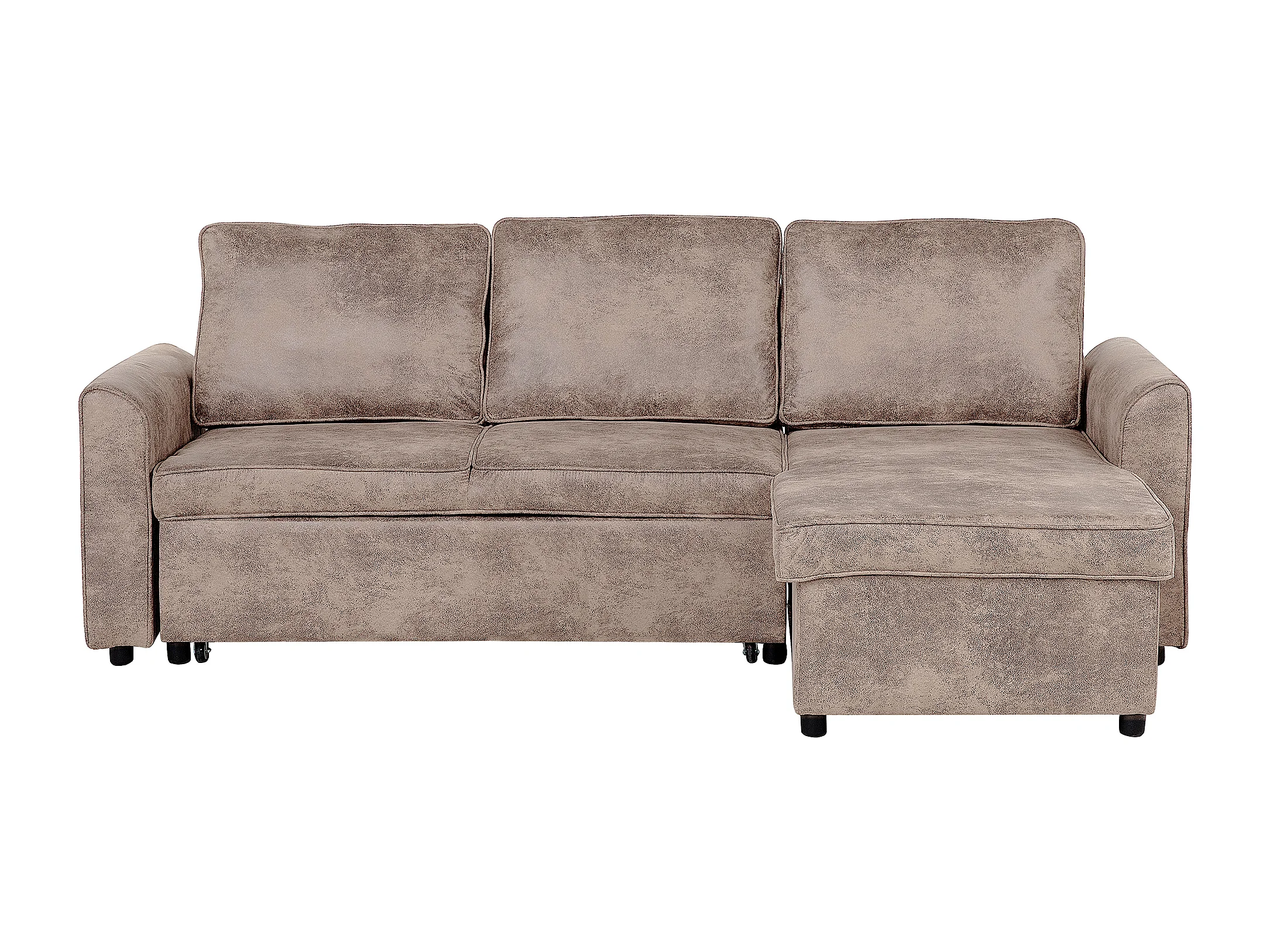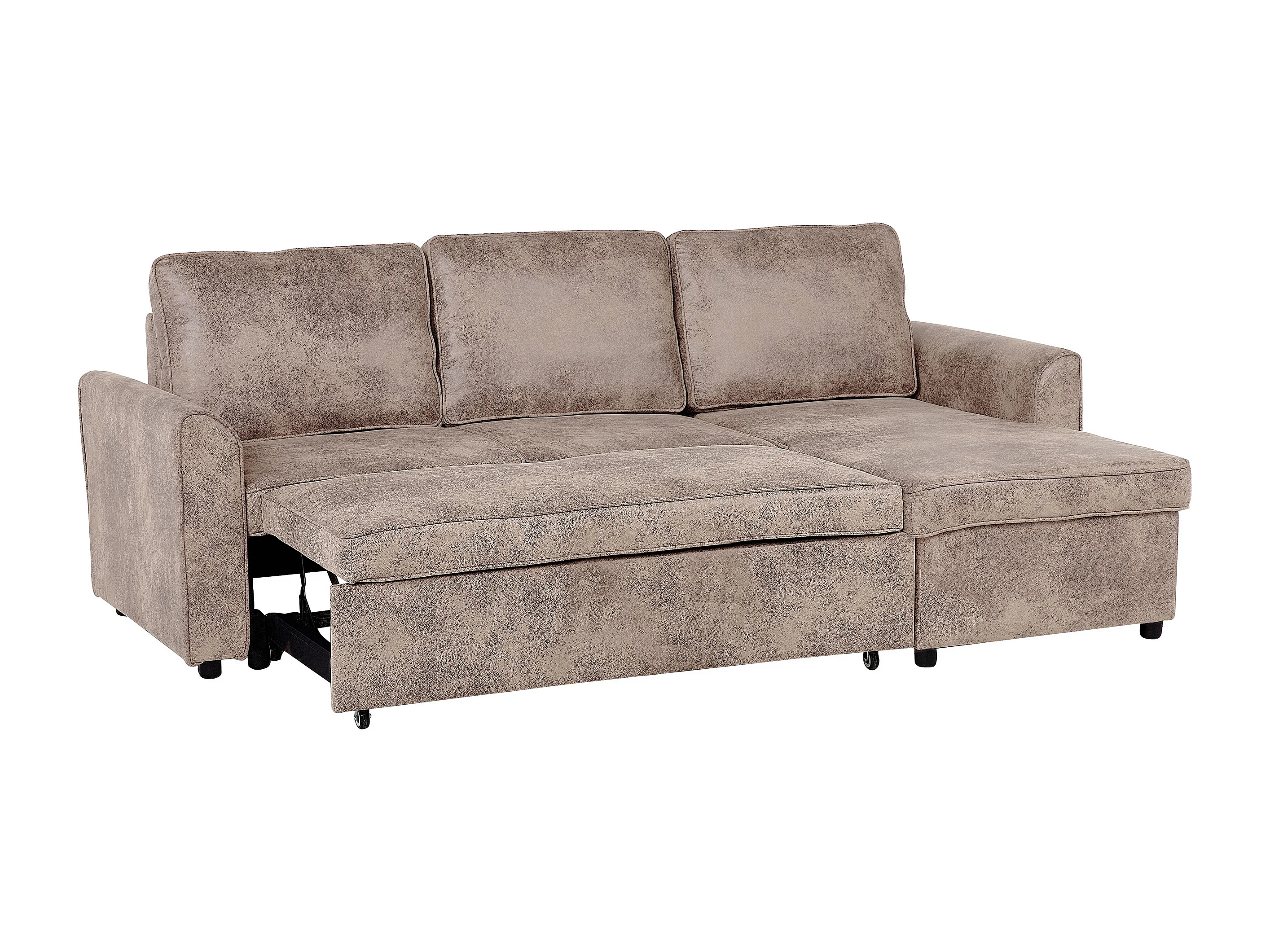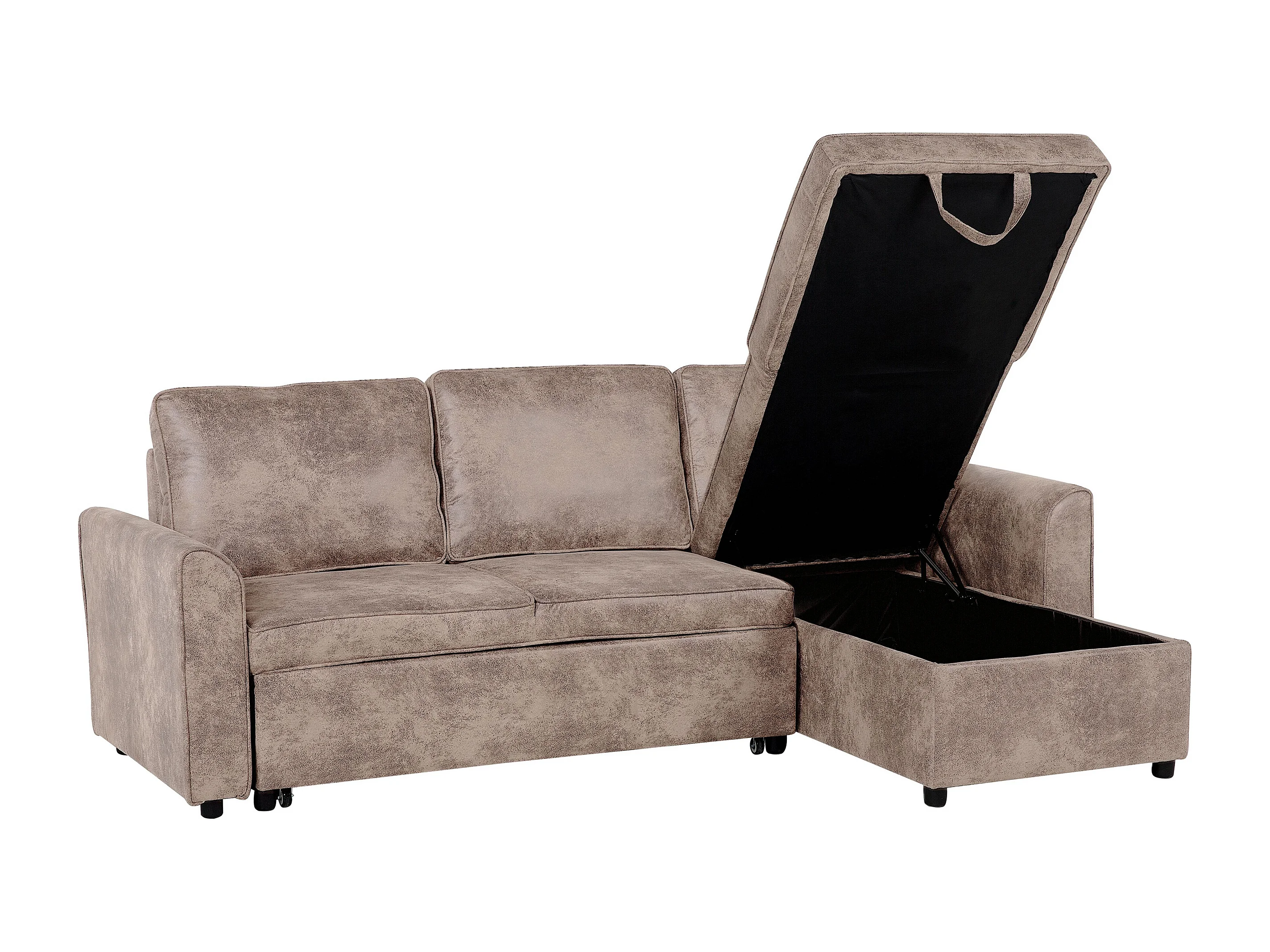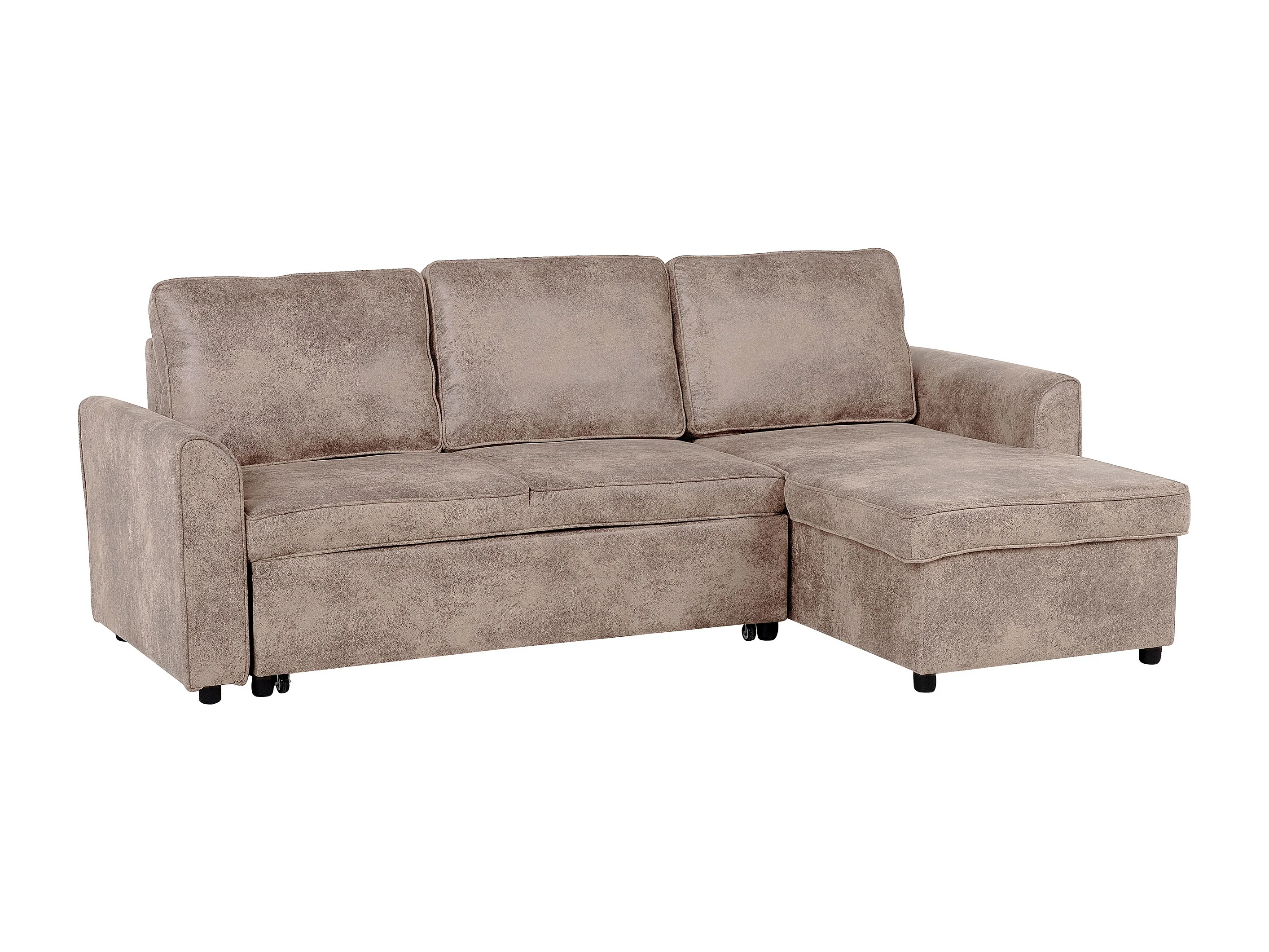 Hoekslaapbank NESNA Kunstleer Bruin met opbergruimte 3-zitter Linkerzijde