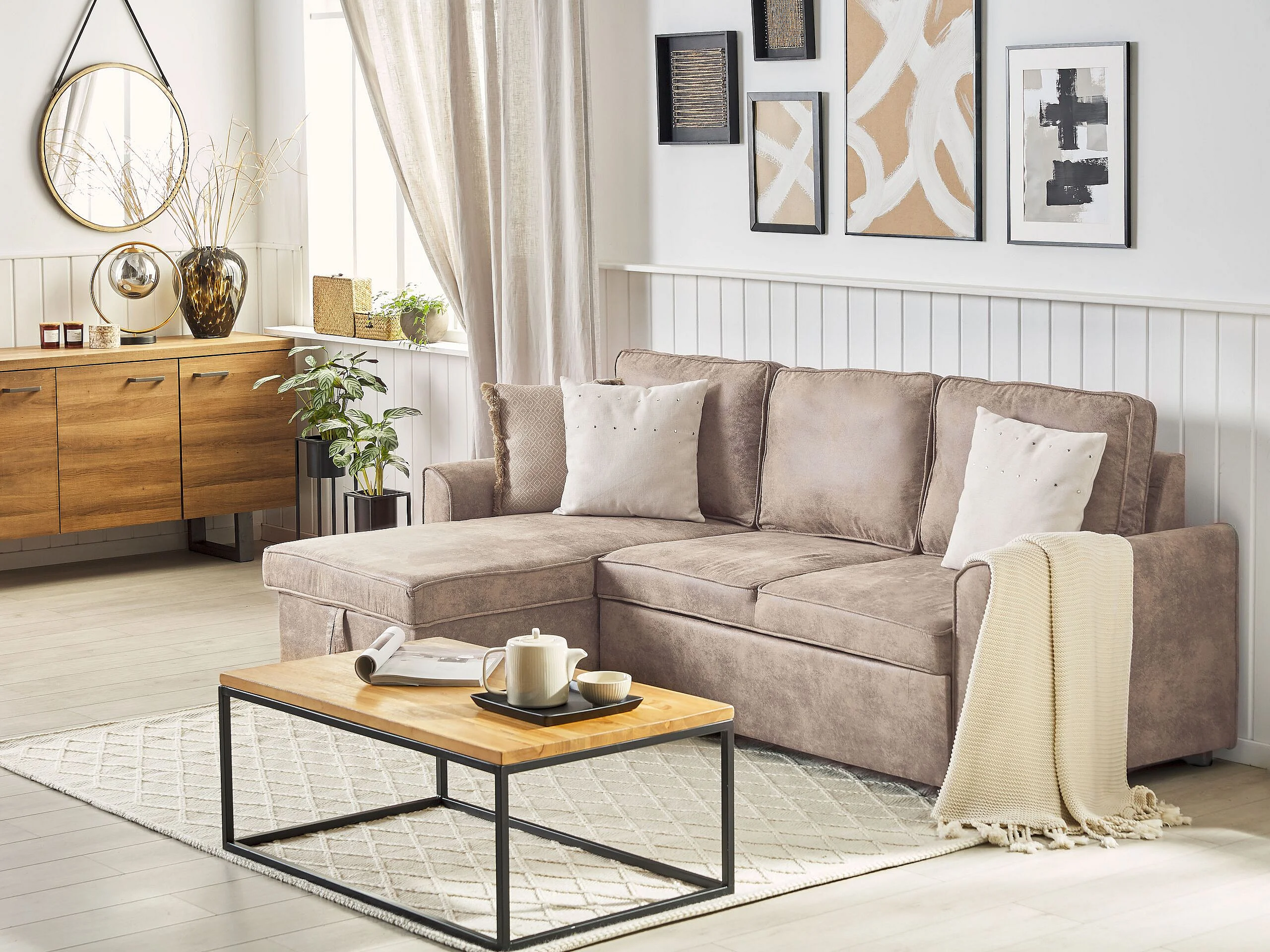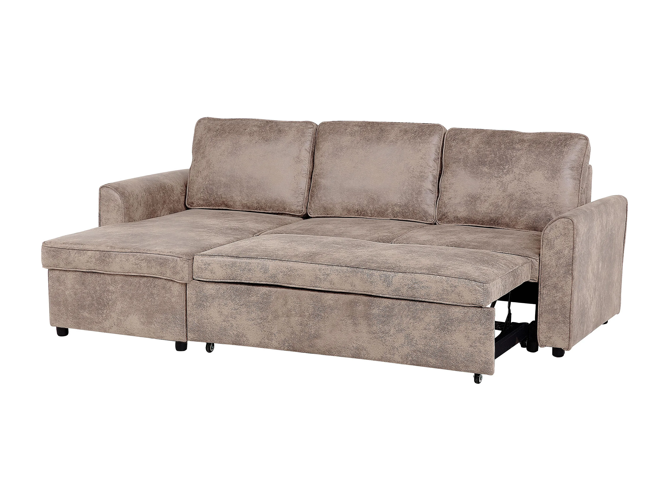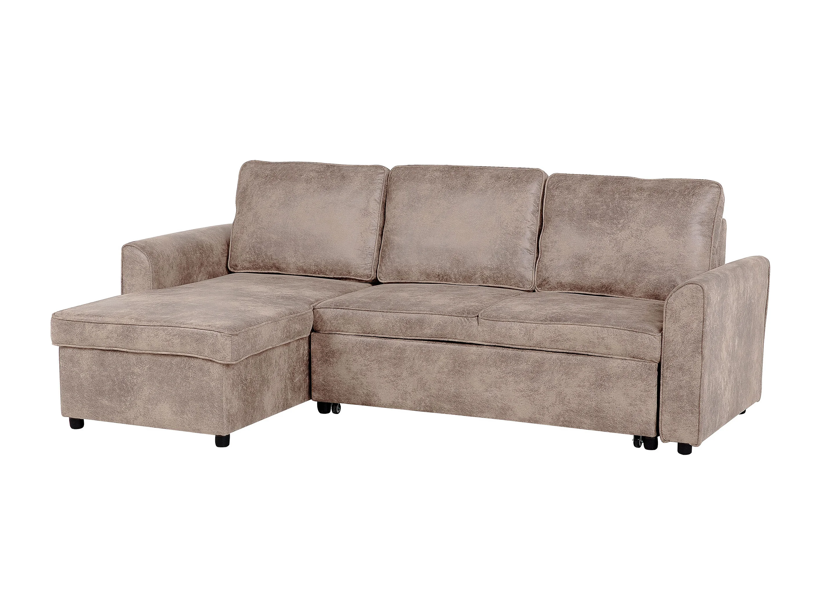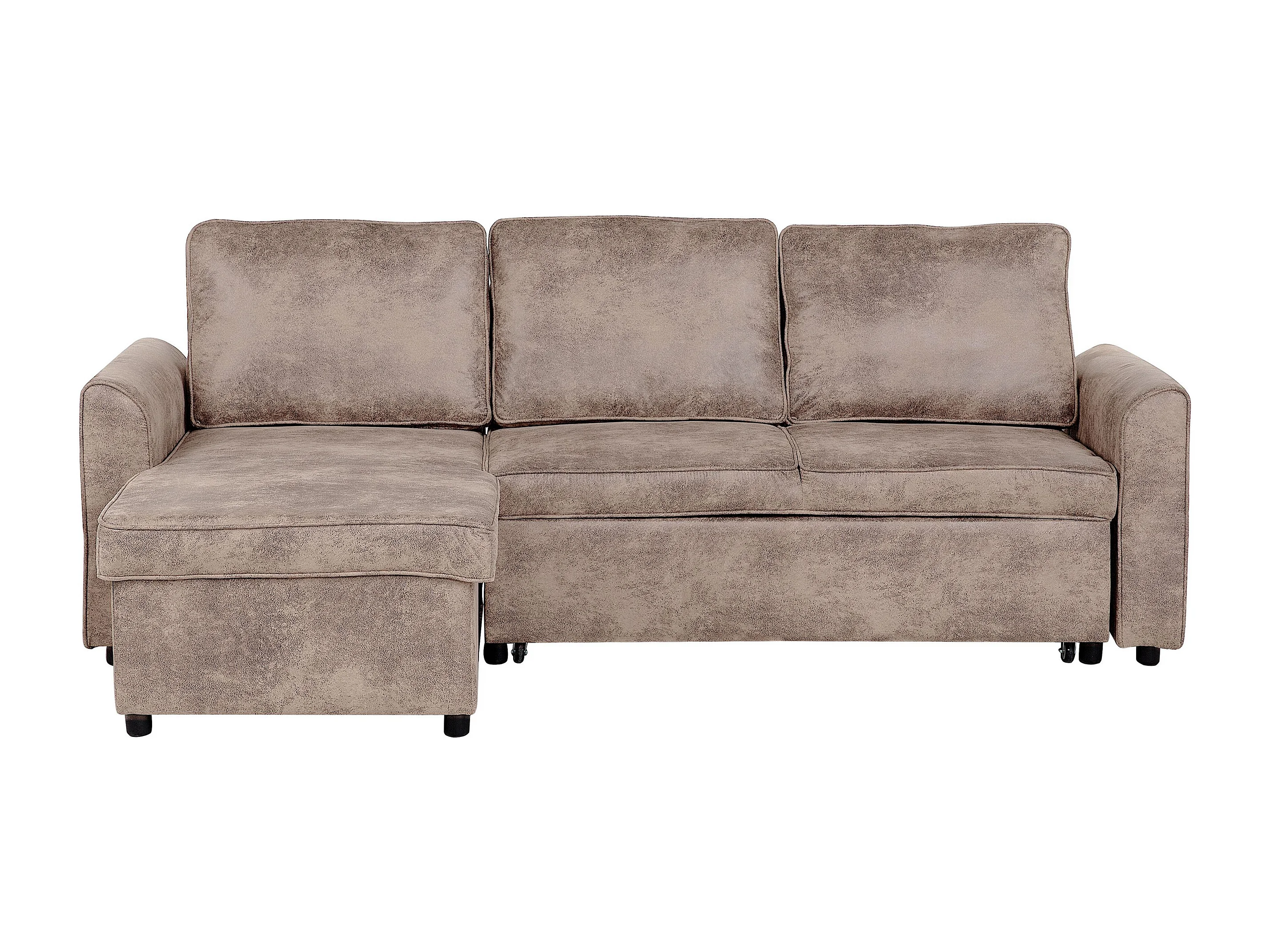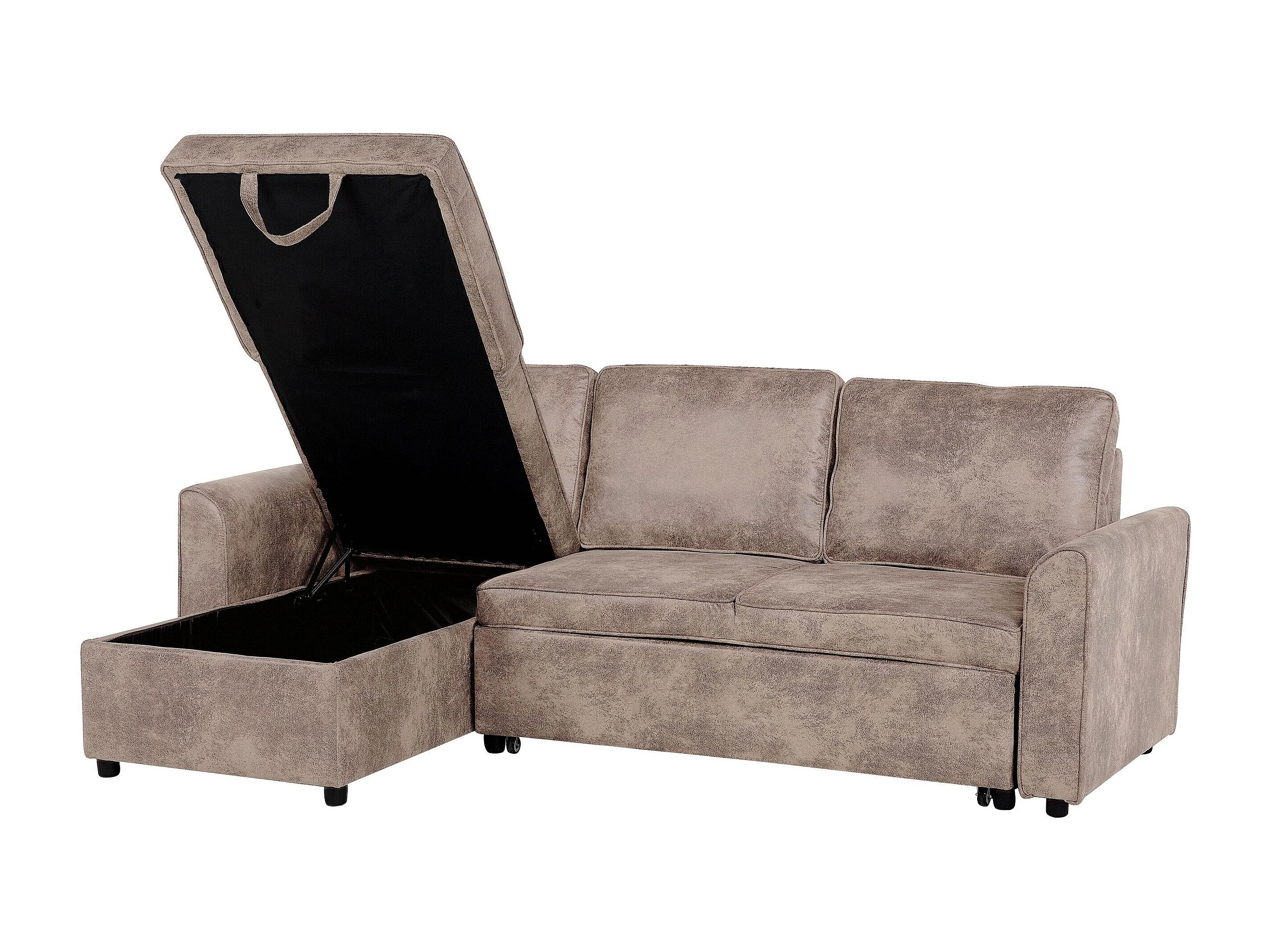 Hoekslaapbank NESNA Kunstleer Bruin met opbergruimte 3-zitter Rechterzijde
