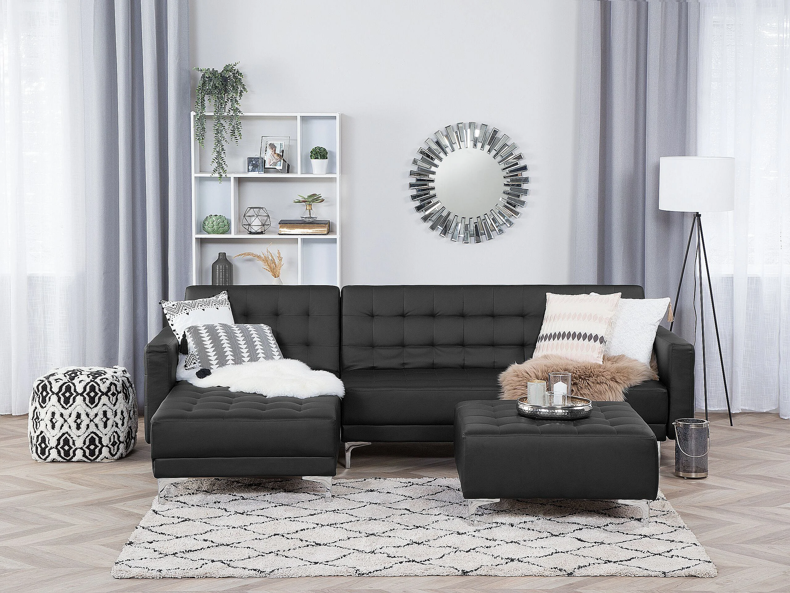 Modulaire hoekslaapbank ABERDEEN Kunstleer Zwart 4-zitter Rechterzijde