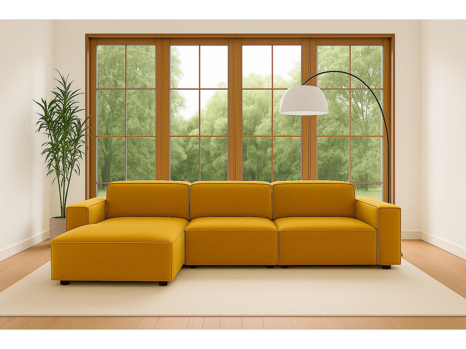 Hoekbank L-vormig Cursal, stof Salvador, geel, links