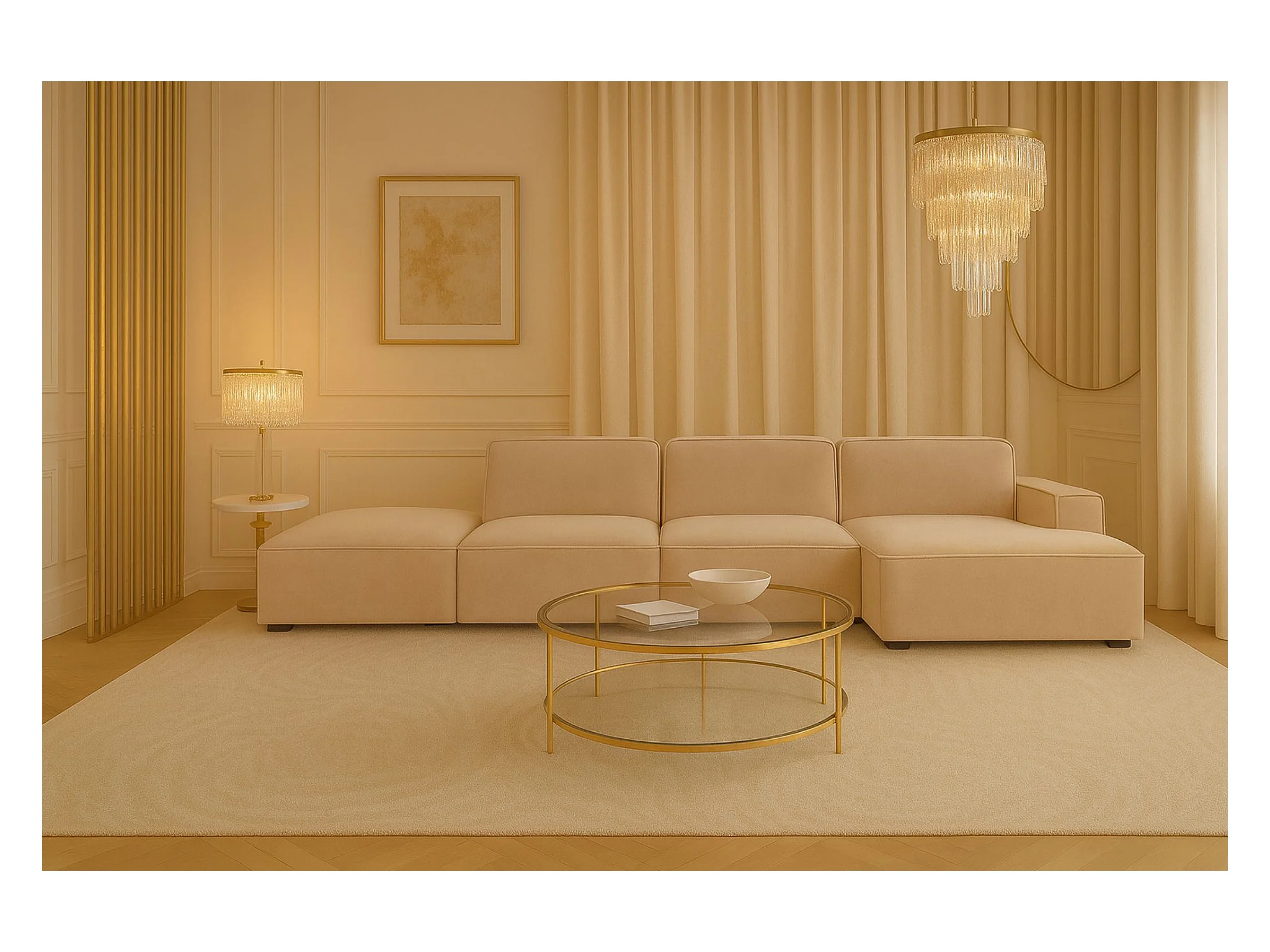 Hoekbank L-vorm + poef Cursal, stof Salvador, beige, rechts