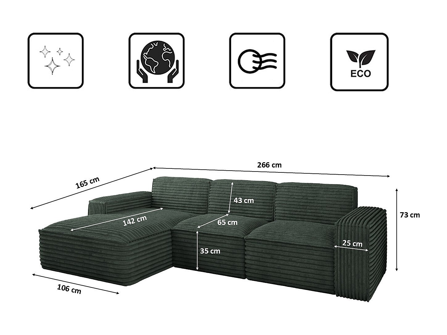 Hoekbank L-vorm Siena stof Velo Groen Links