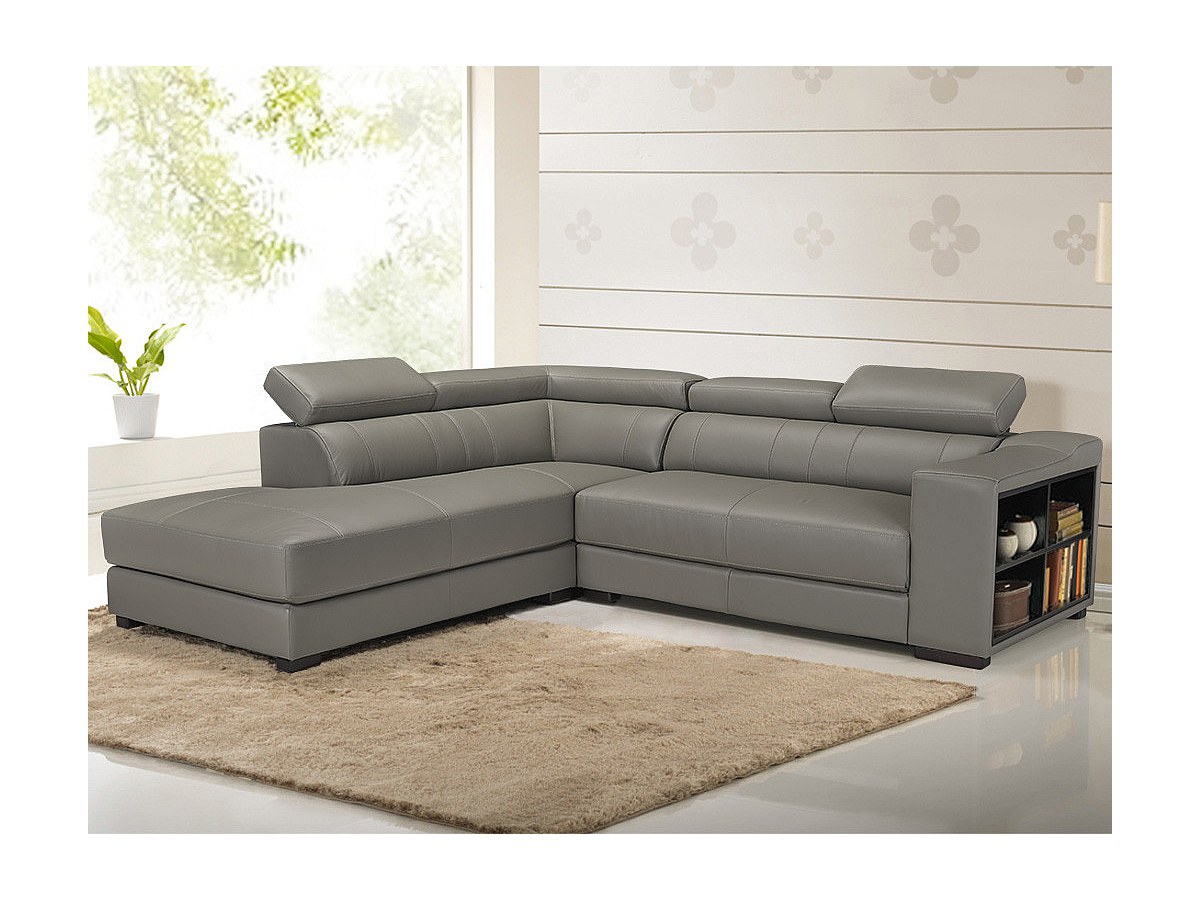 Hoekbank van leer LEEDS - grijs - hoek links