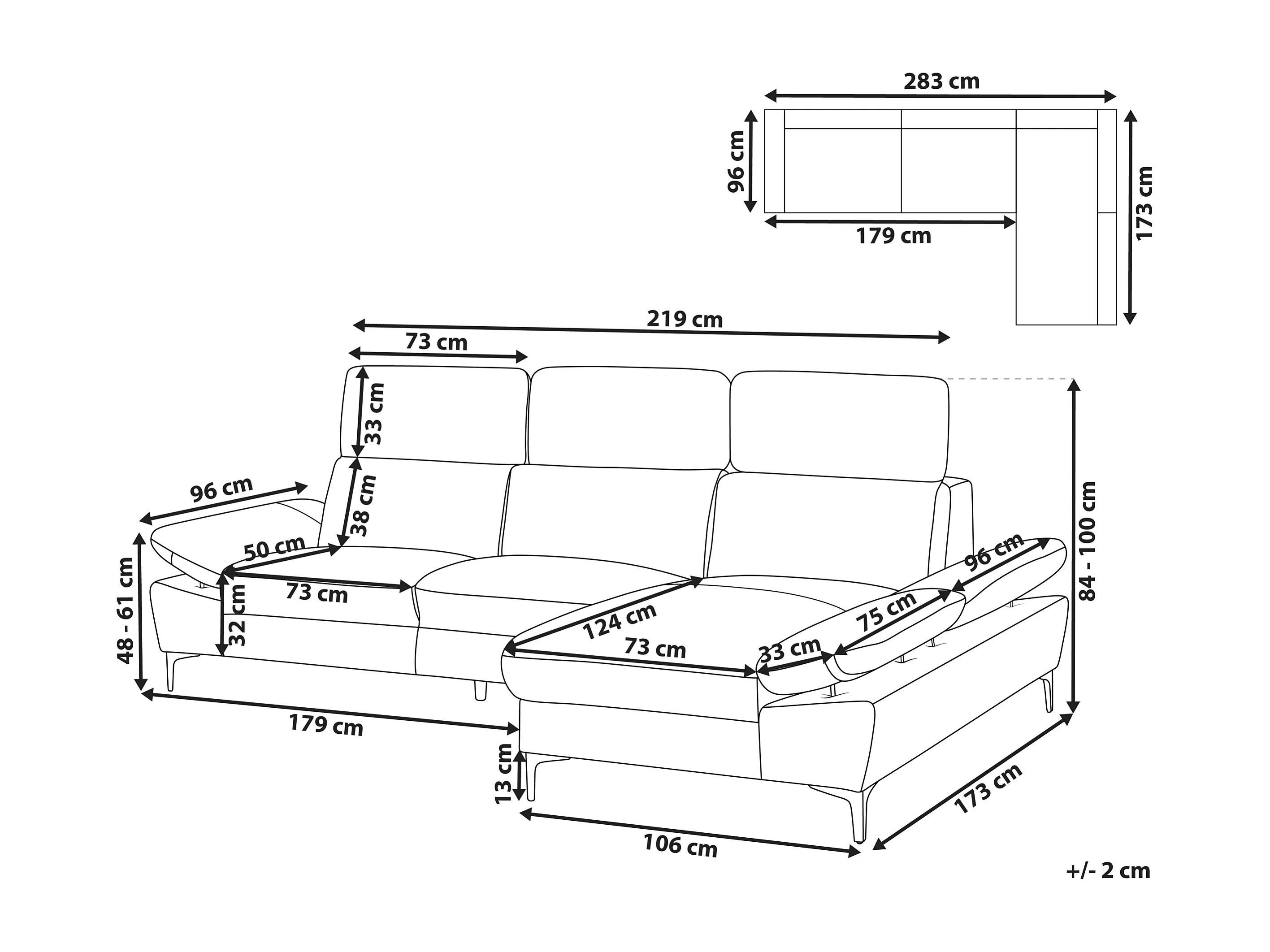 Hoekbank FARILA Leer Taupe Verstelbaar 4-zitter Linkerzijde