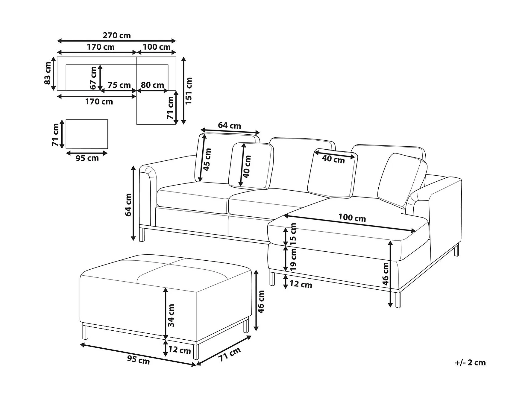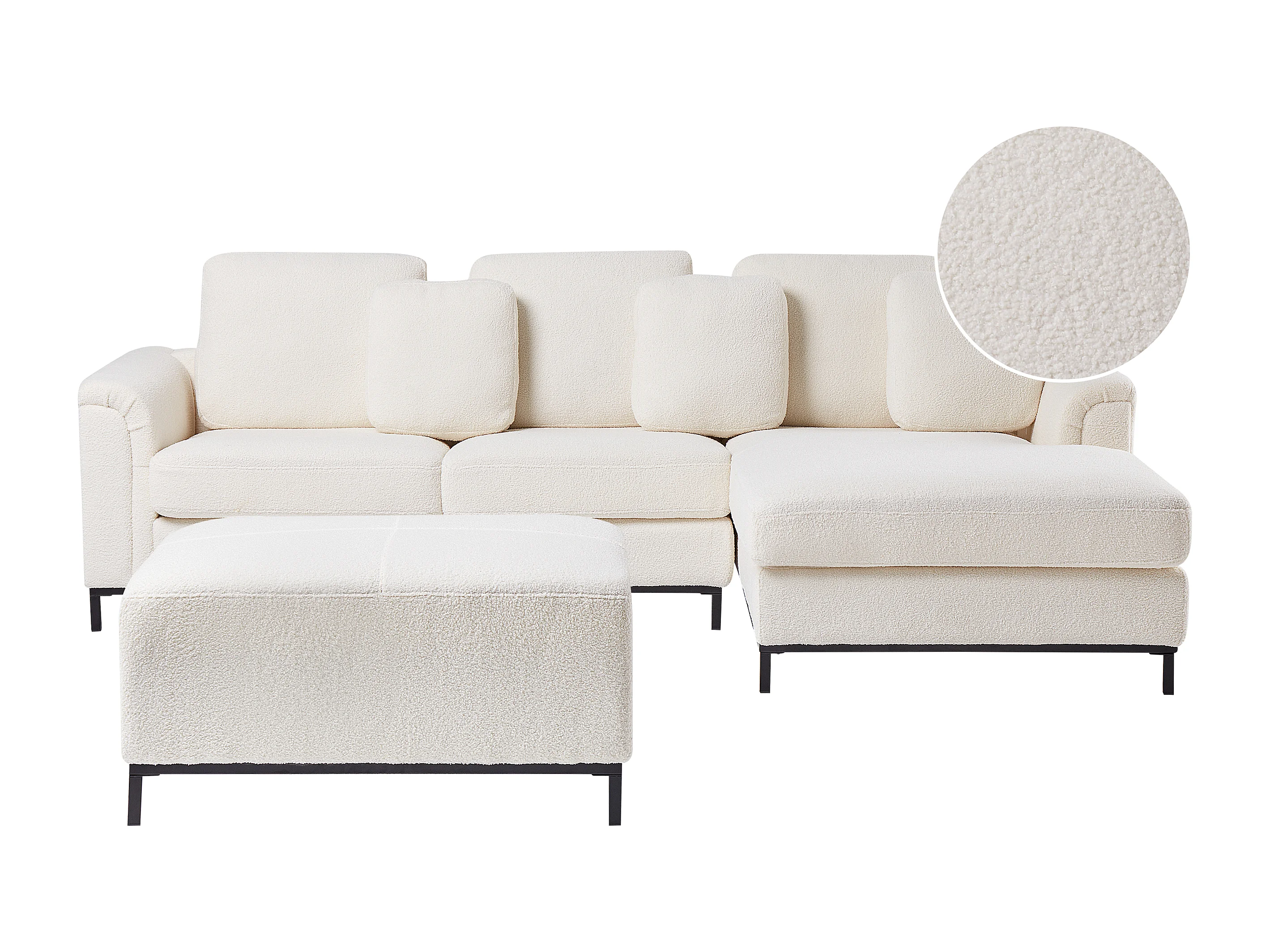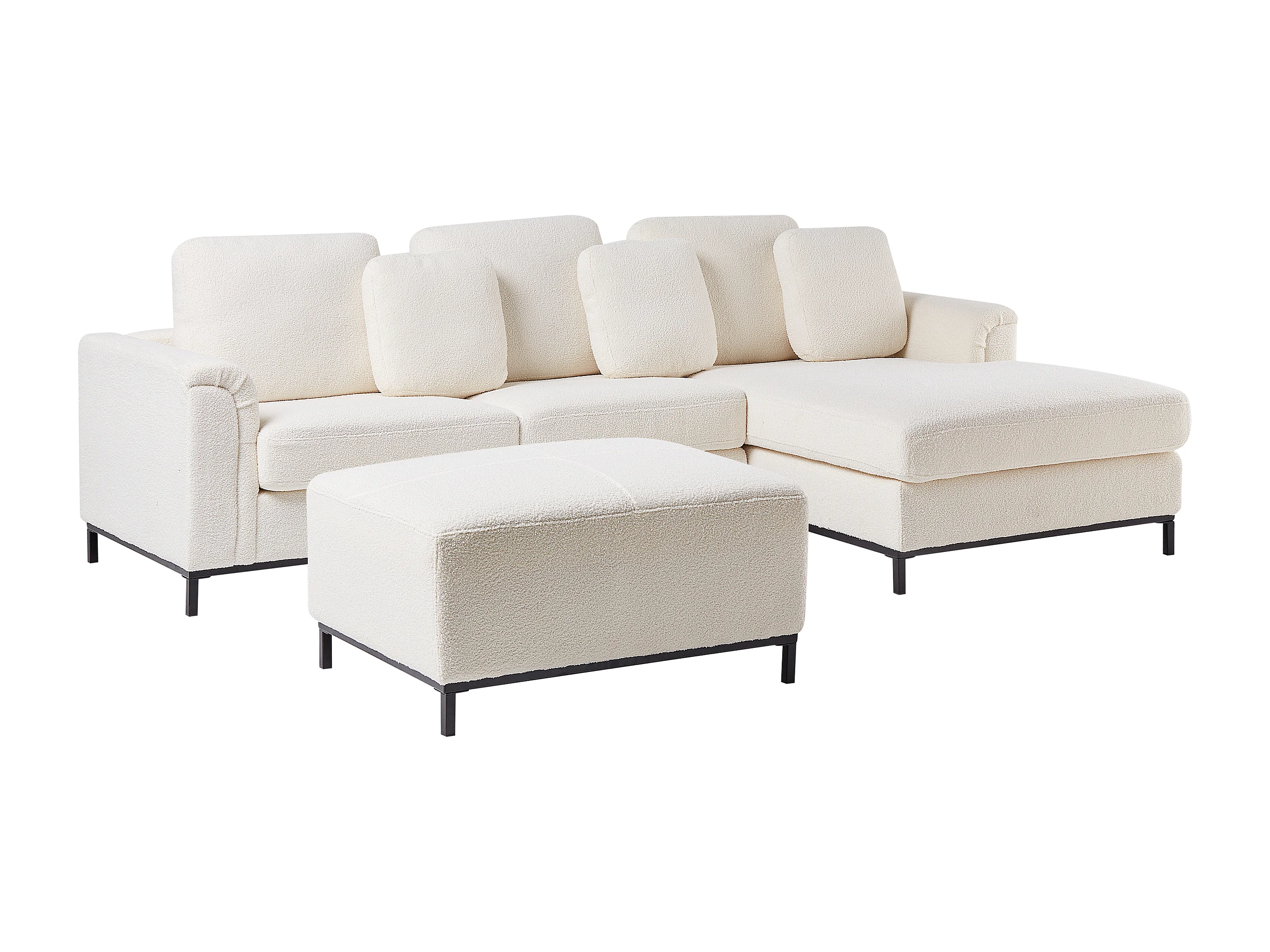 Hoekbank OSLO Bouclé Wit Met ottomaan 5-zitter Linkerzijde