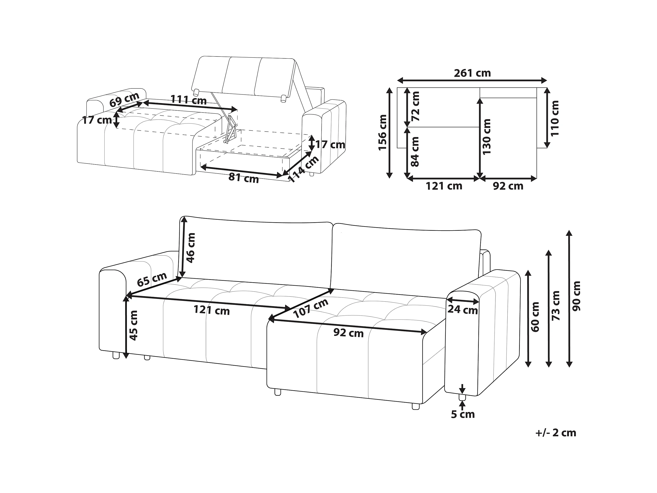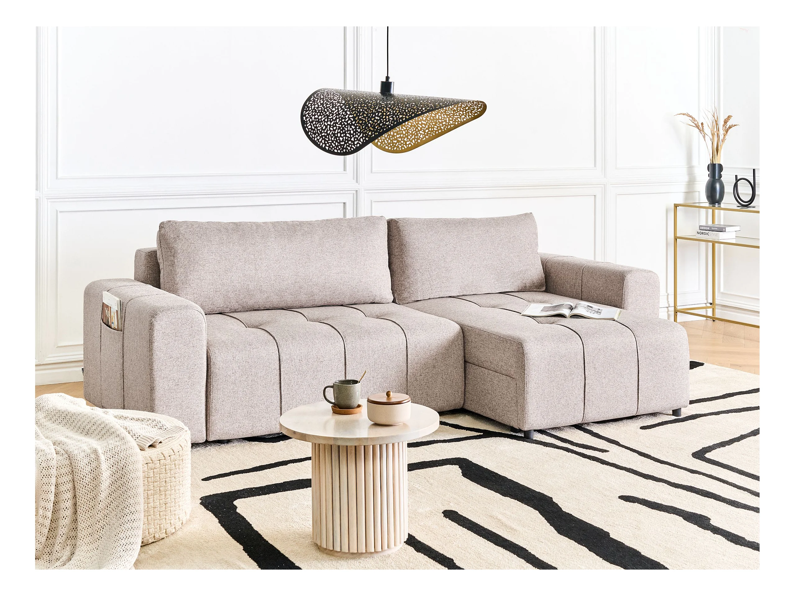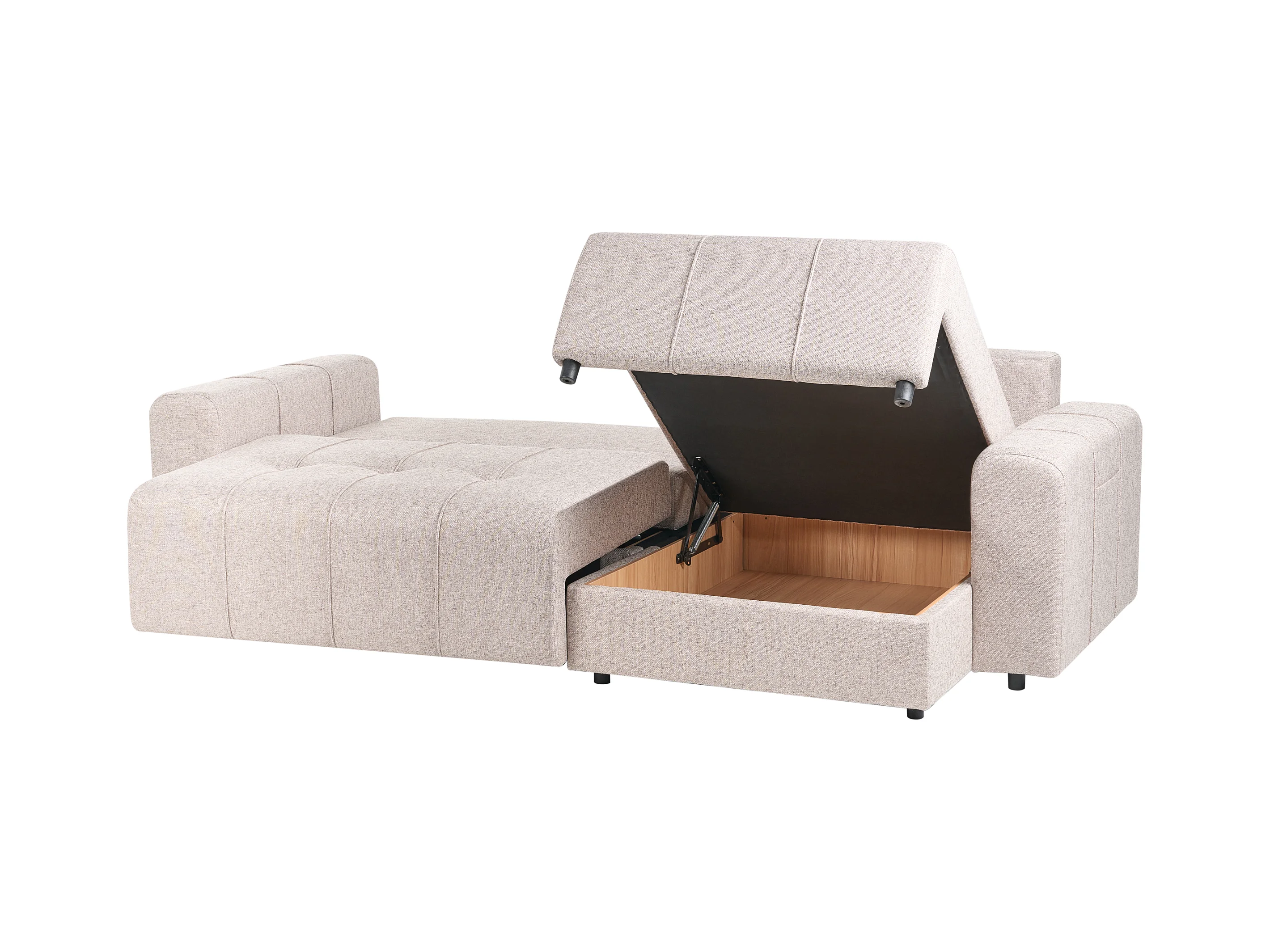 Hoekslaapbank INNVIK Stof Lichtbruin met opbergruimte 3-zitter Linkerzijde