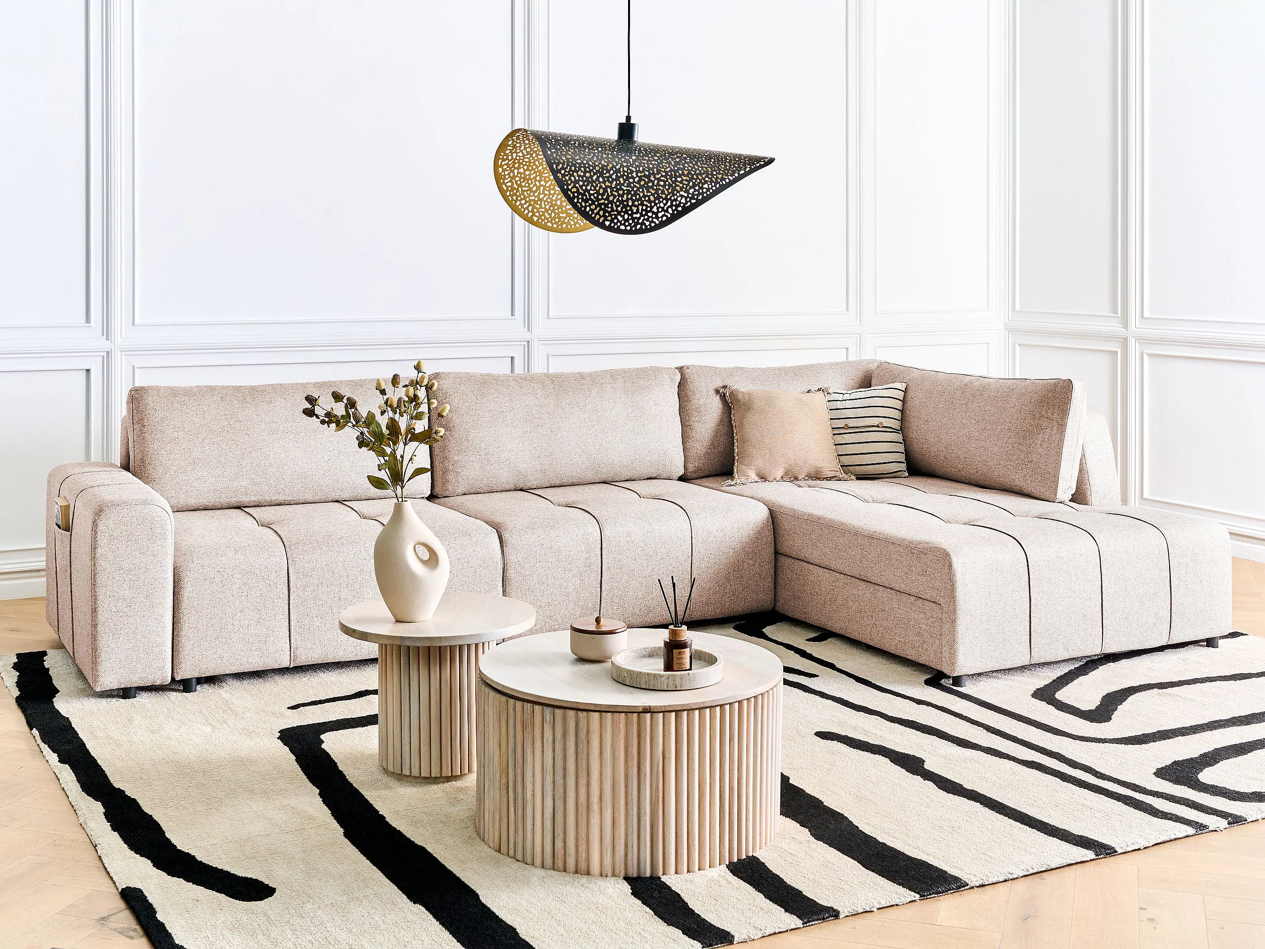 Hoekslaapbank INNVIK Stof Lichtbruin met opbergruimte 4-zitter Linkerzijde
