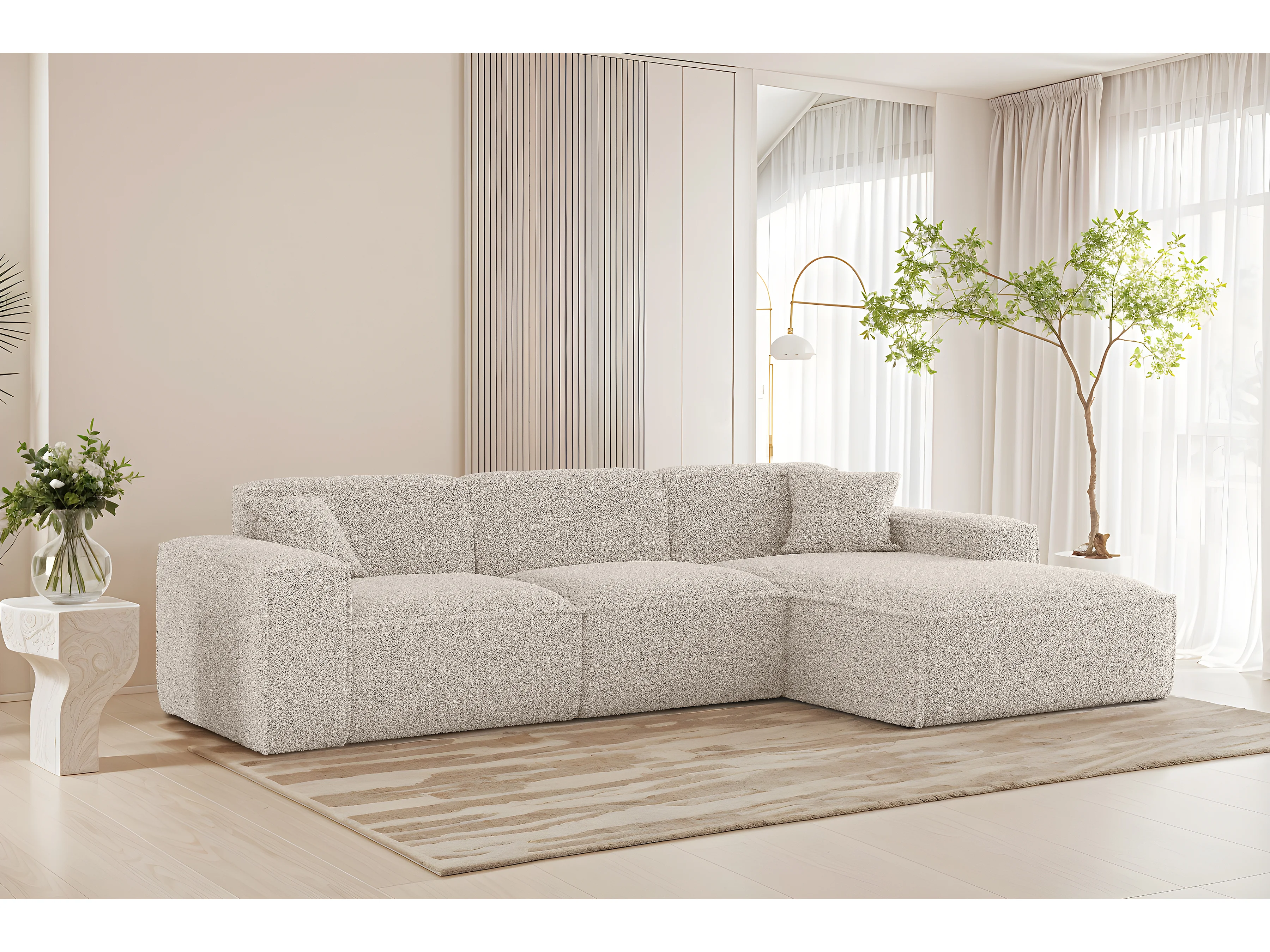 Hoekbank Luga L rechts, stof Sven 22 gebroken wit