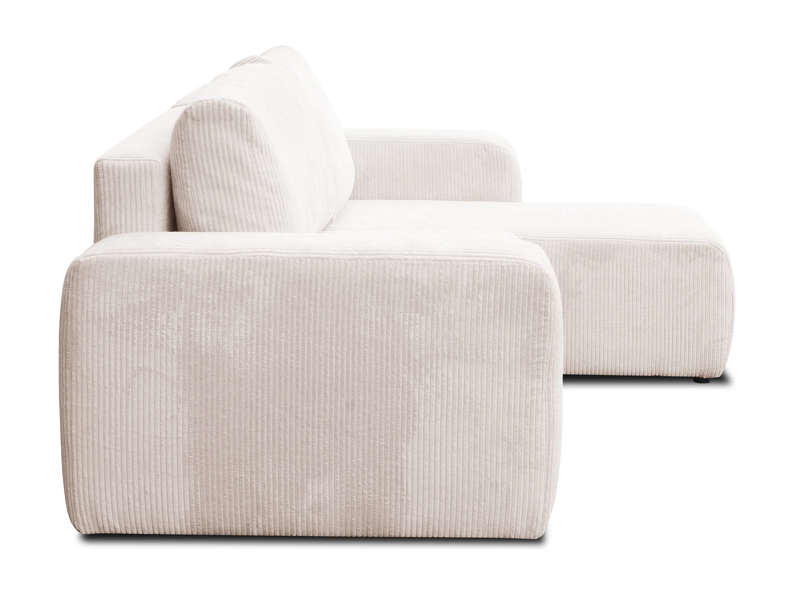 Hoekbank Luna L, hoekbank in L-vorm met slaapfunctie en bedbak, kleur: beige, corduroy, universele ottomane