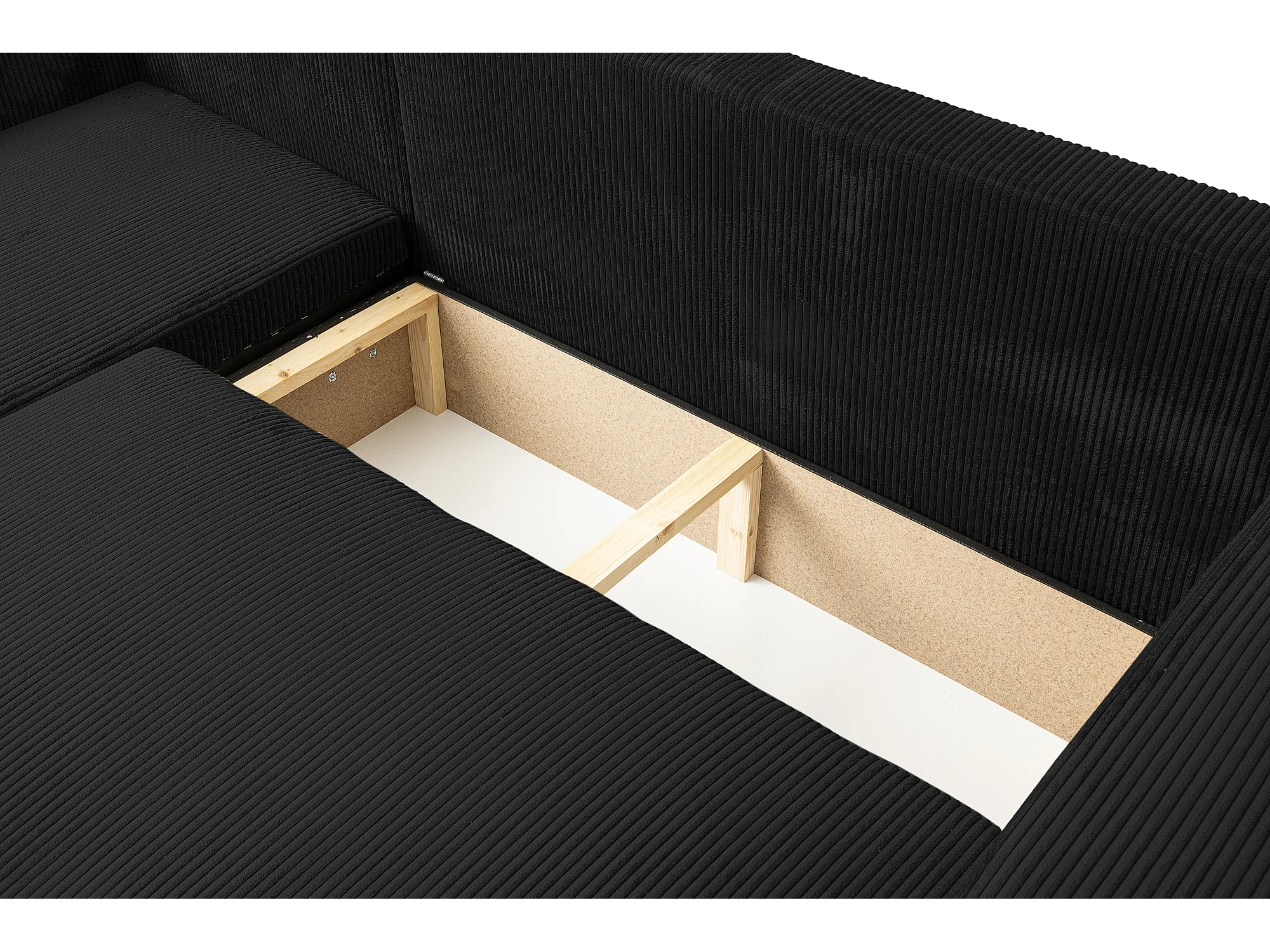 Hoekbank Luna L, hoekbank in L-vorm met slaapfunctie en bedbak, kleur: zwart, corduroy, ottomane Unsiversal