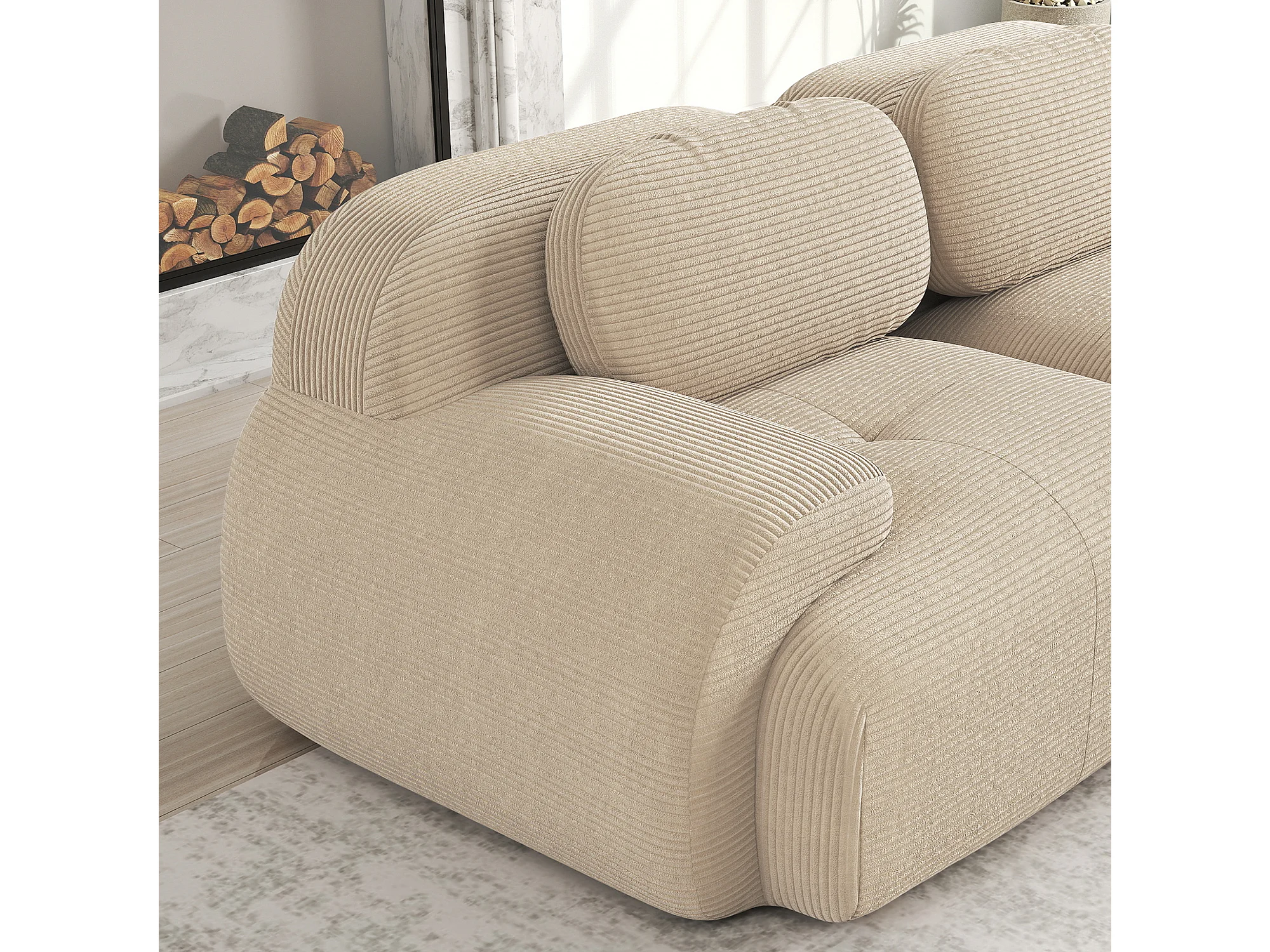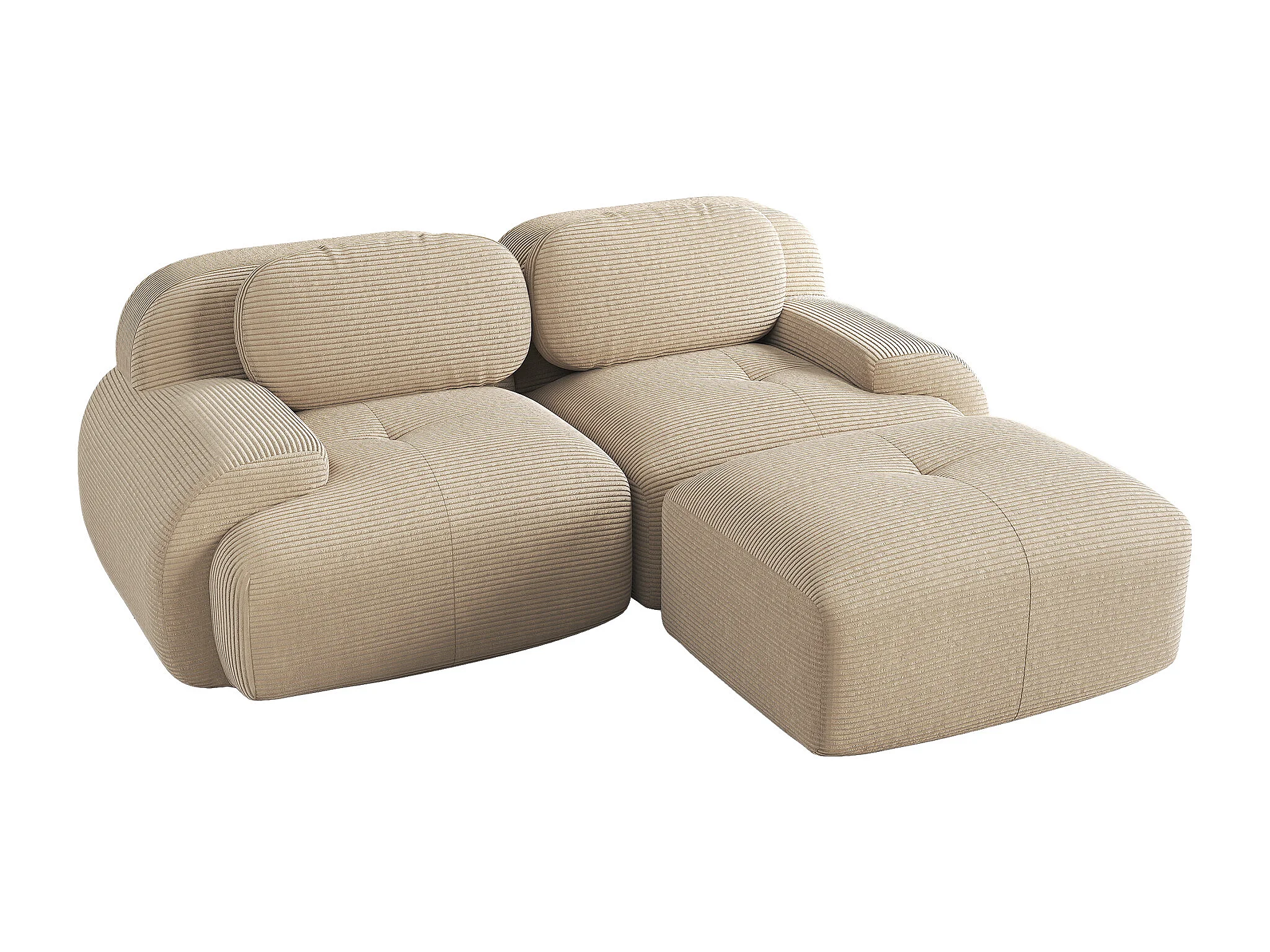 Hoekbank met gebogen armleuningen en gewatteerde rugleuning - beige ribfluweel