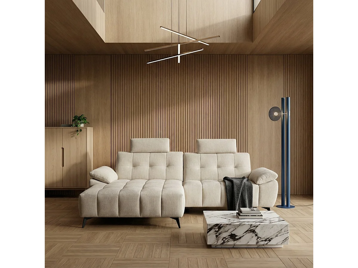 Hoekbank met hoek links 3 zitplaatsen elektrische relaxbank Colorado van stof -
