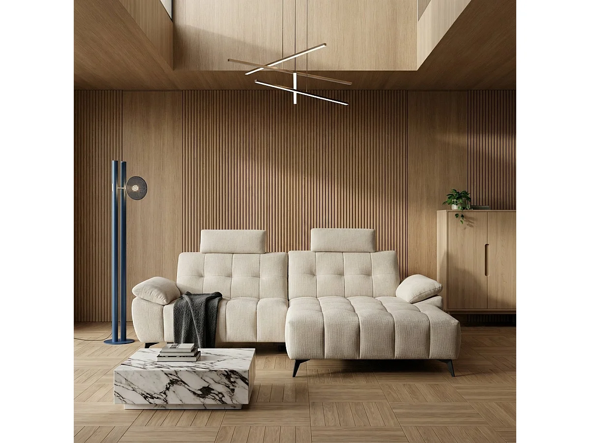 Hoekbank met hoek rechts 3 zitplaatsen elektrische relaxbank Colorado van stof -