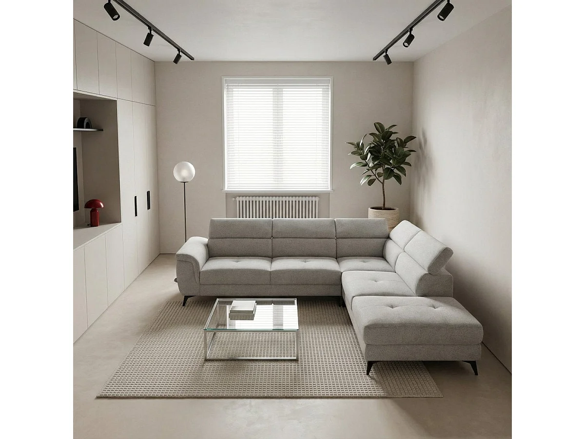Hoekbank met hoek rechts 5 zitplaatsen Betis van stof - grijs