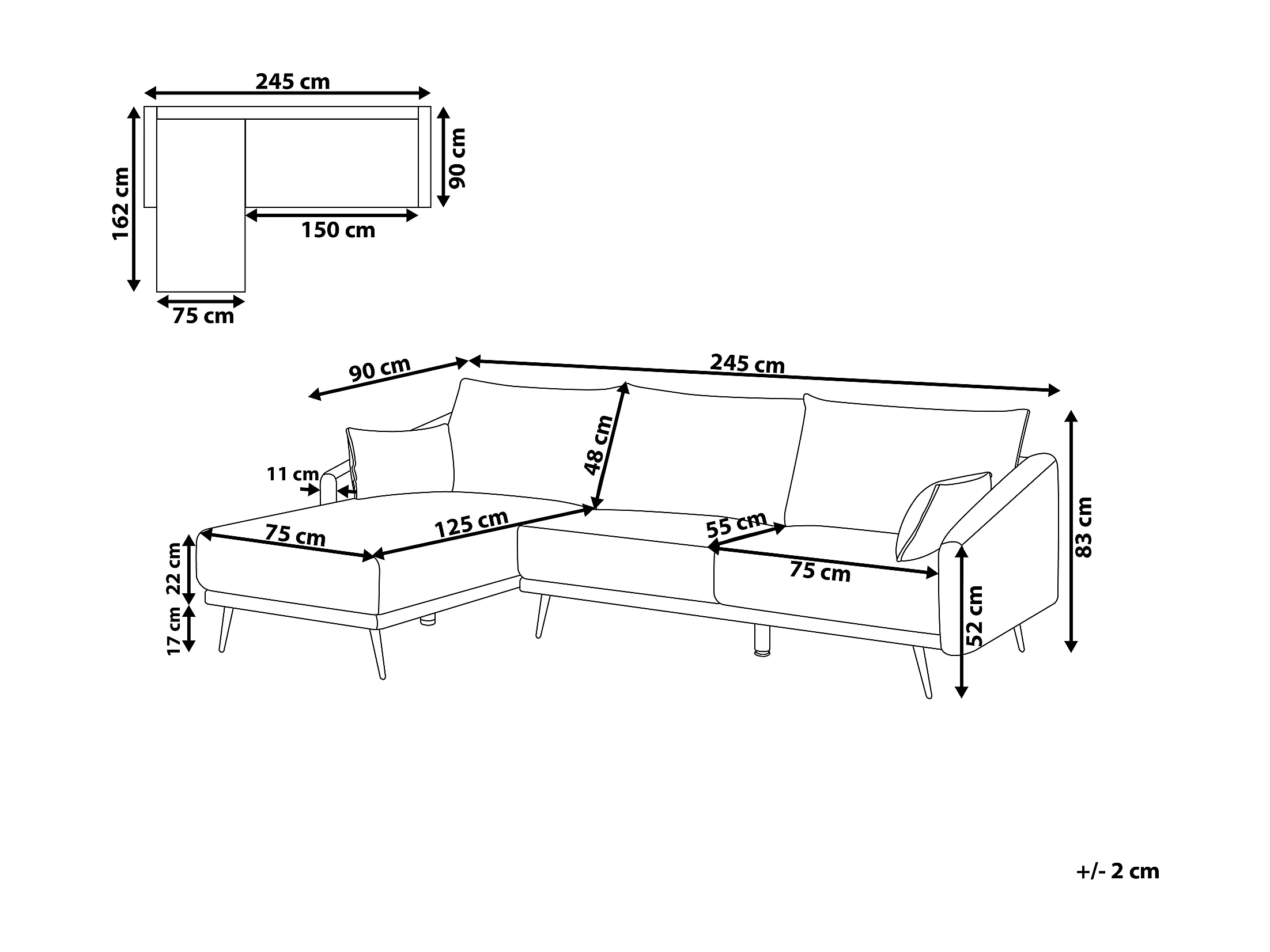 Hoekbank VARDE Fluweel Grijs LED 3-zitter Rechterzijde