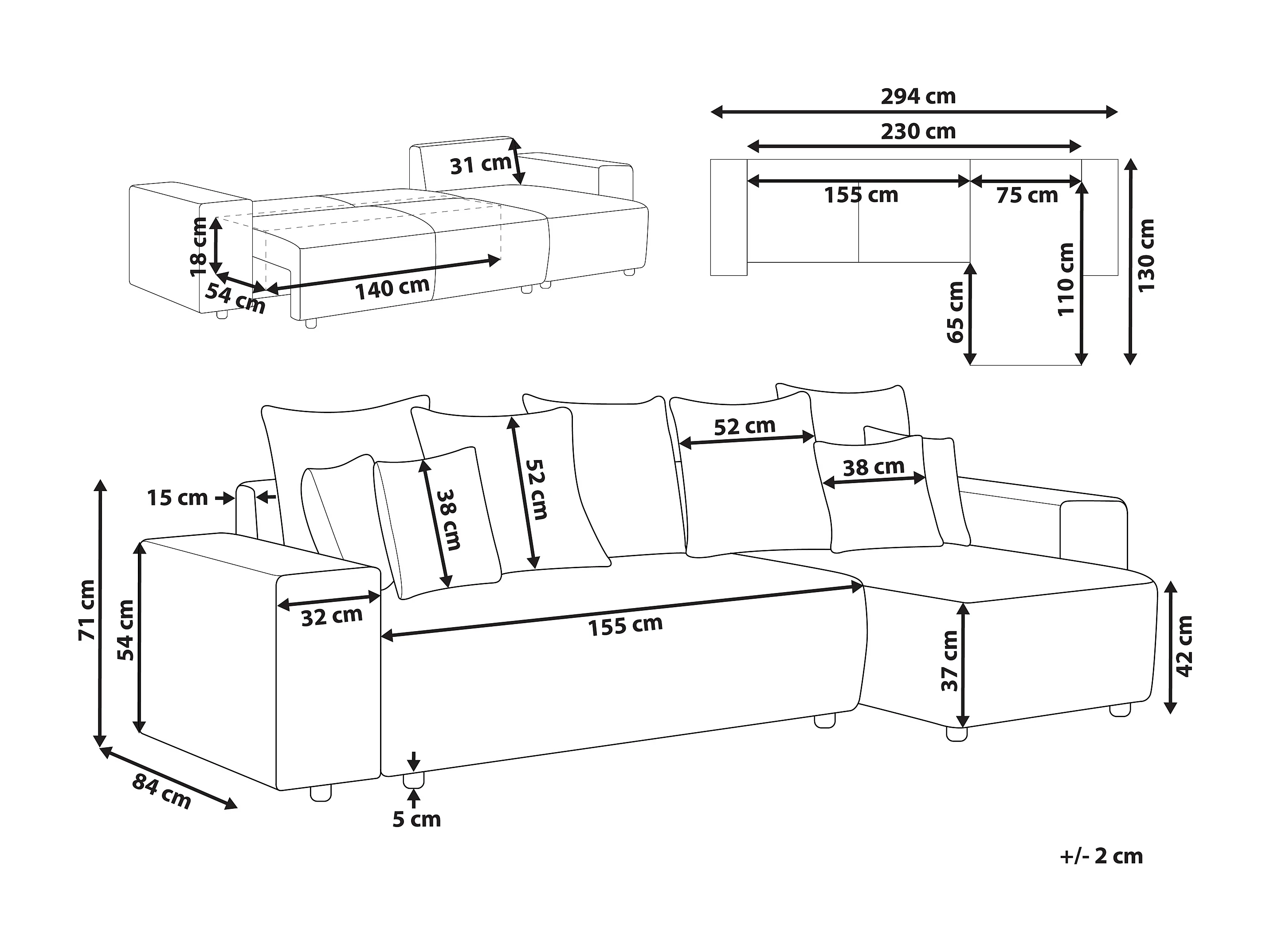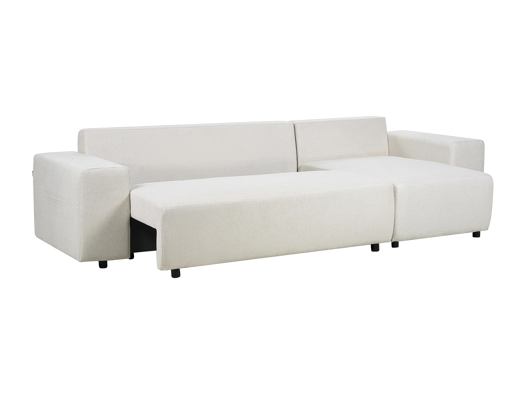 Hoekslaapbank LUSPA Stof Lichtbeige met opbergruimte 3-zitter Linkerzijde