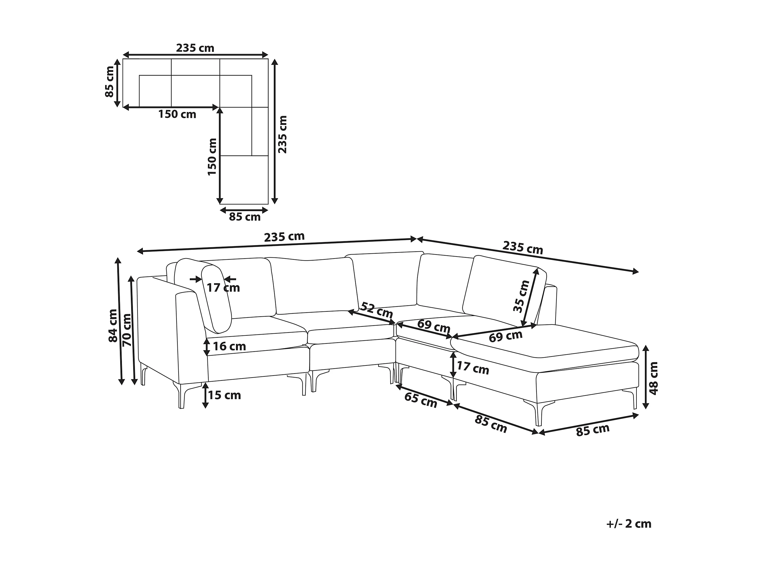 Modulaire hoekbank EVJA Fluweel Roze Met ottomaan 4-zitter Linkerzijde