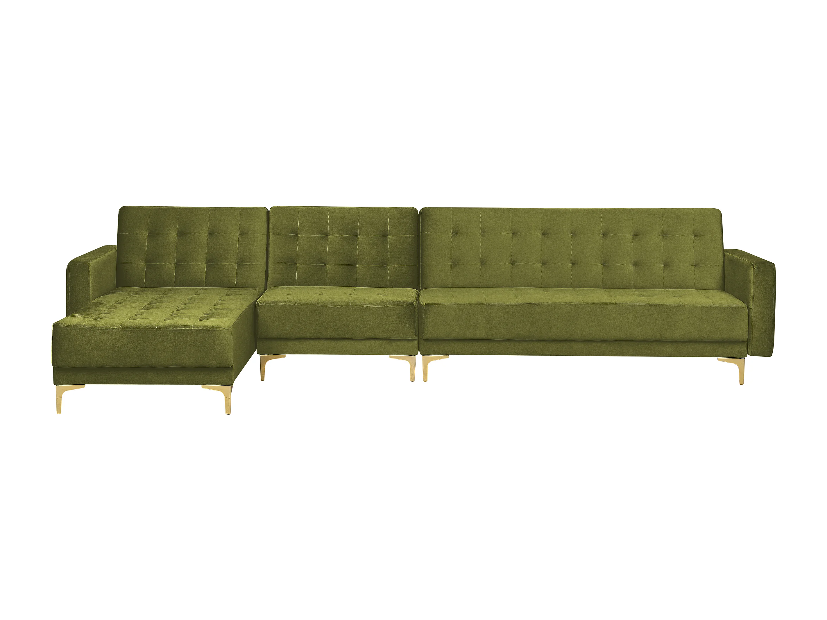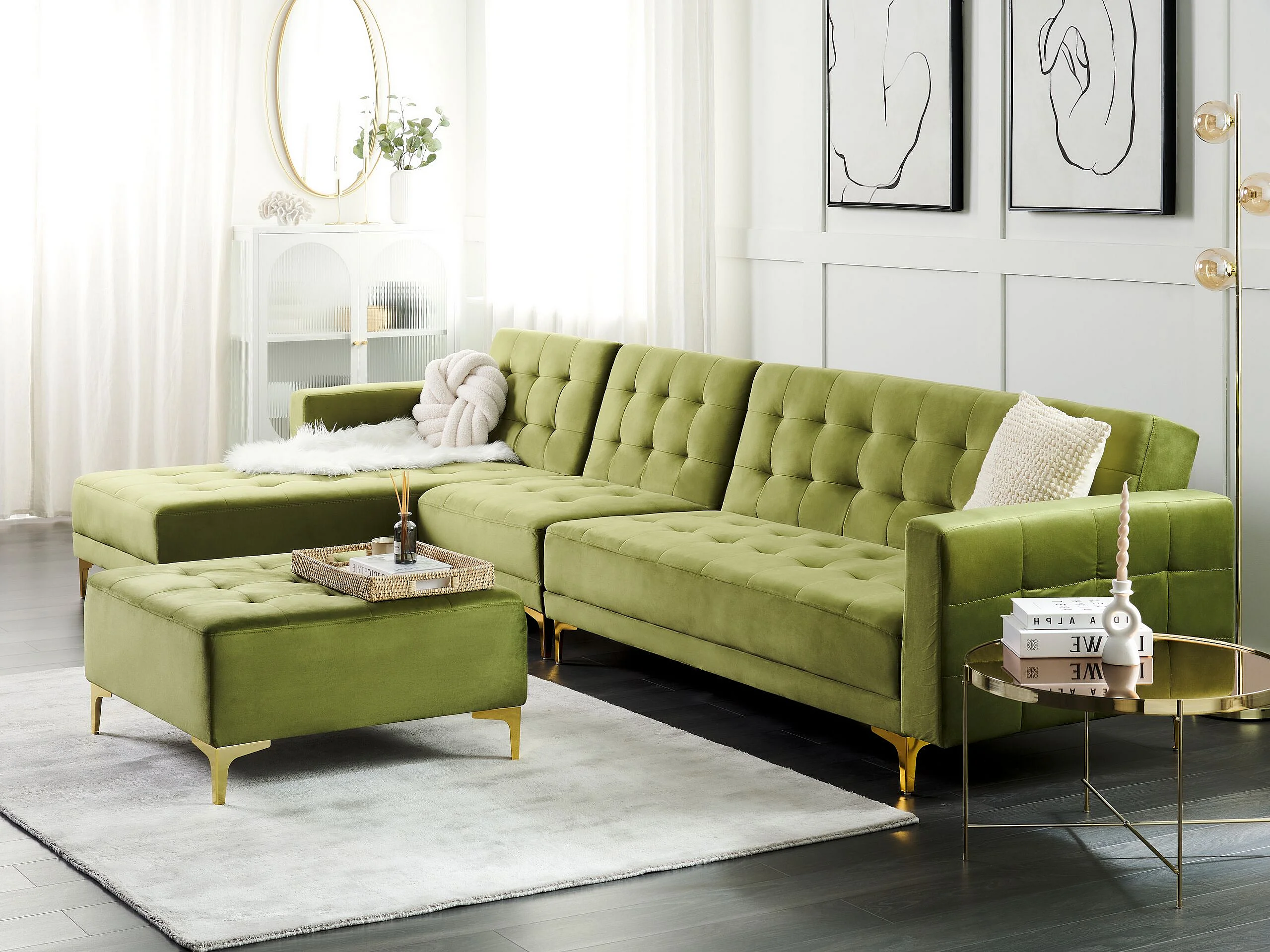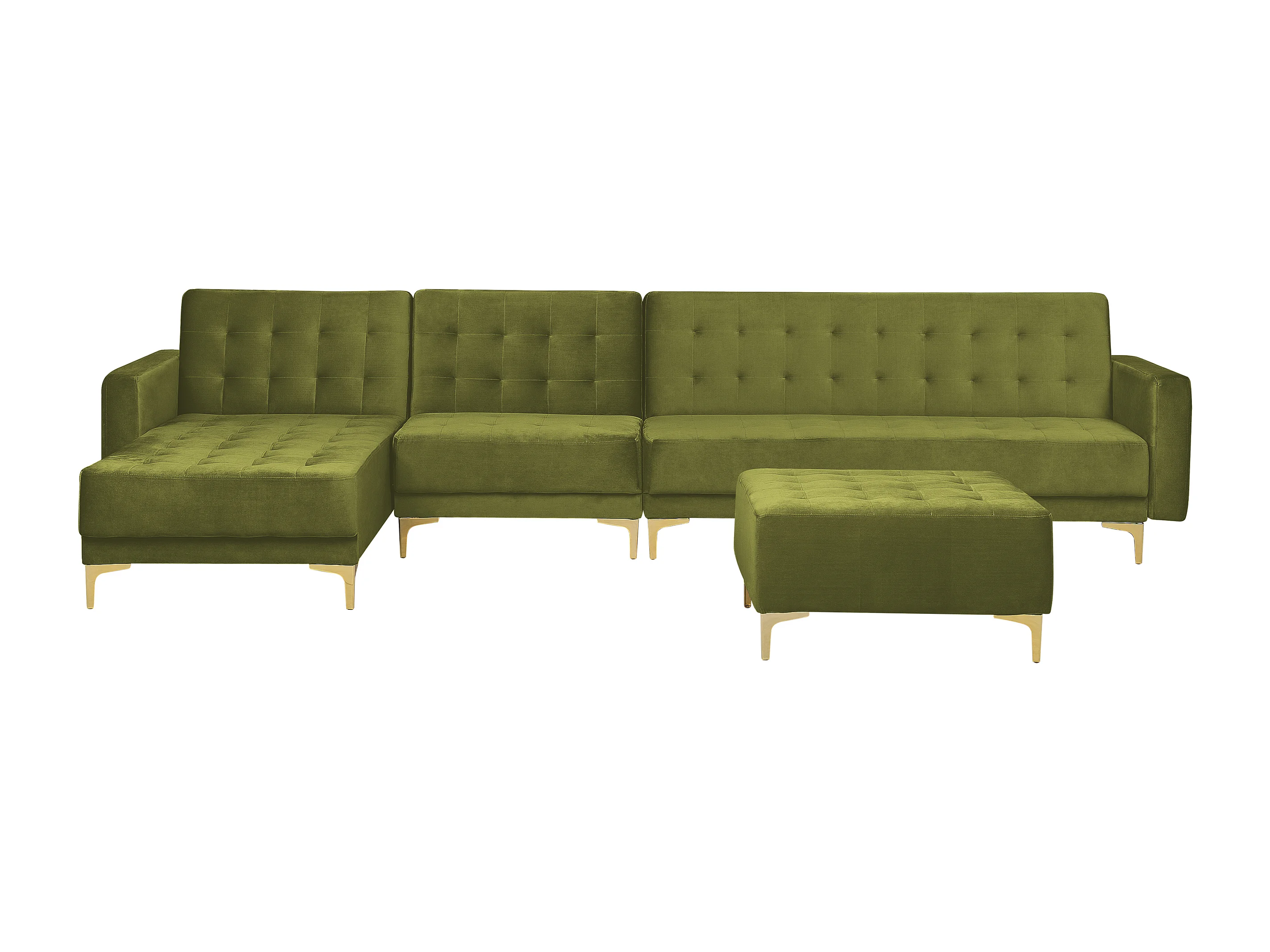 Modulaire hoekslaapbank ABERDEEN Fluweel Groen Met ottomaan 5-zitter Rechterzijde