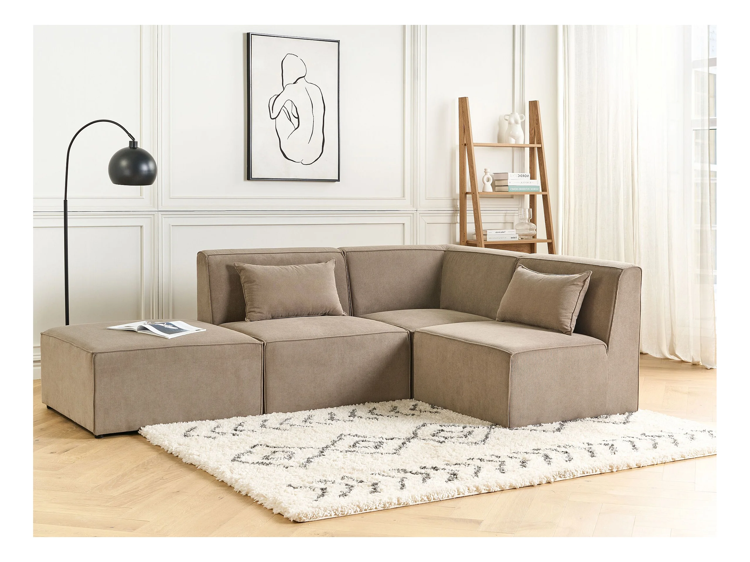 Modulaire hoekbank LEMVIG Corduroy Taupe Met ottomaan 3-zitter Linkerzijde