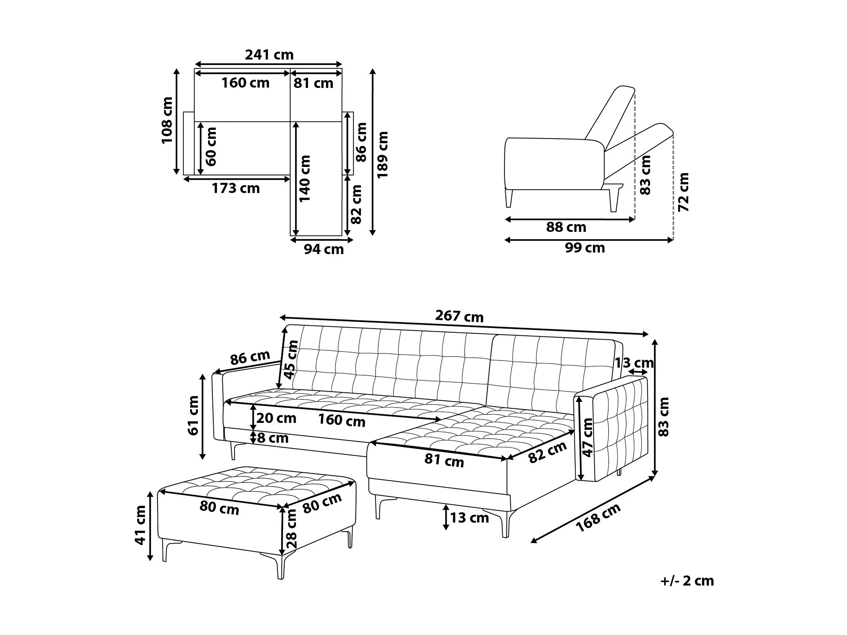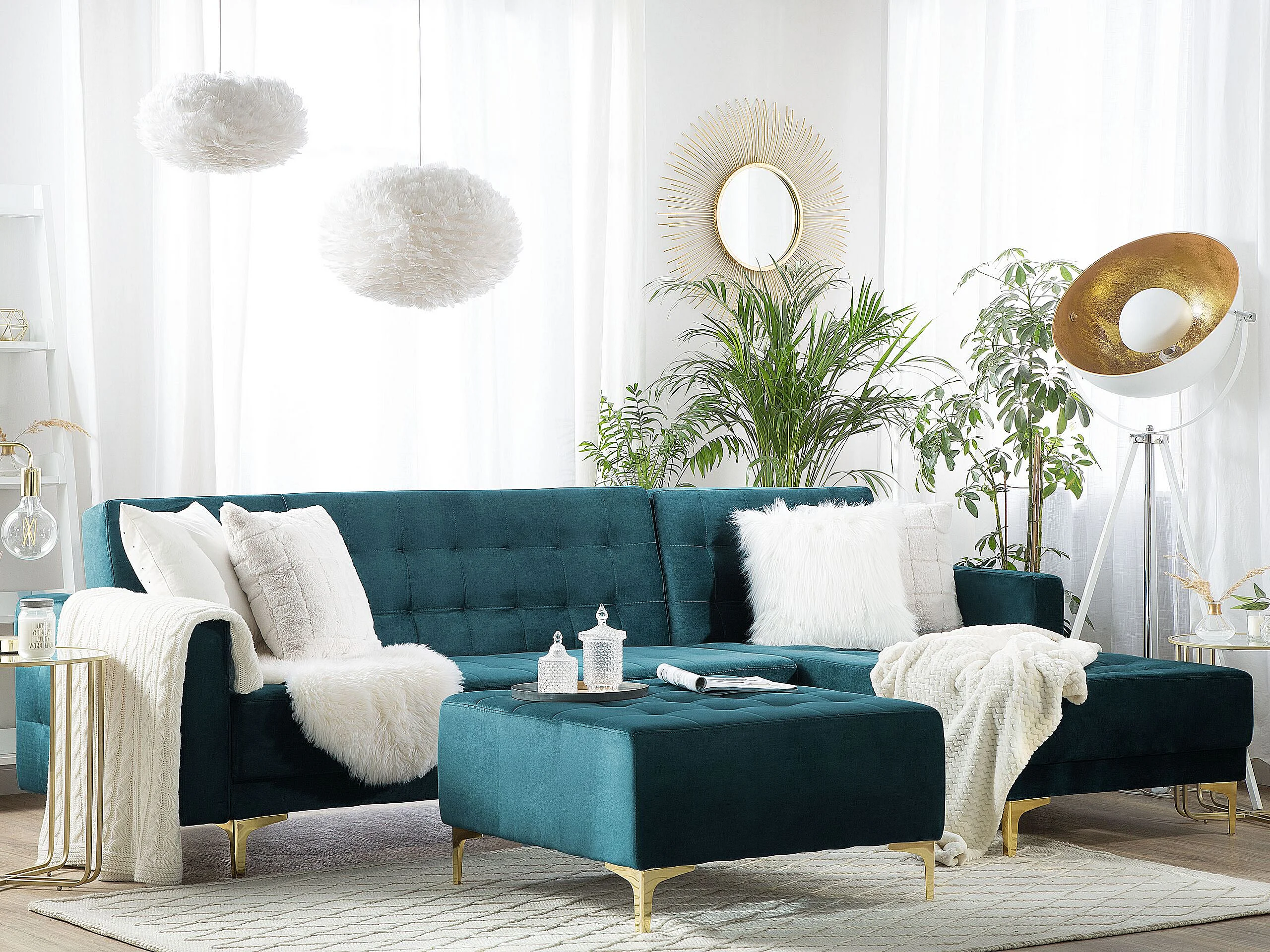 Modulaire hoekslaapbank ABERDEEN Fluweel Blauwgroen Met ottomaan 4-zitter Linkerzijde