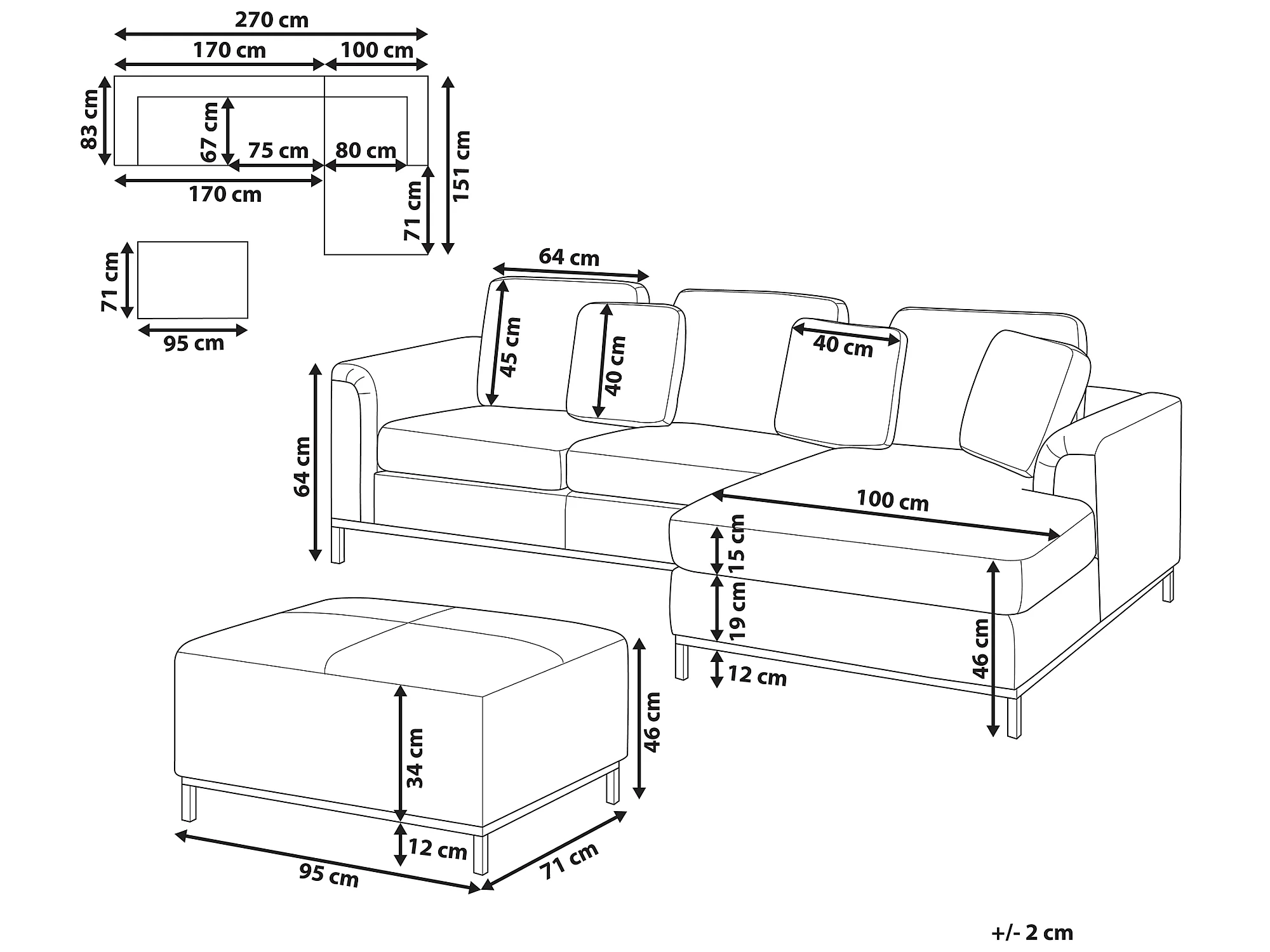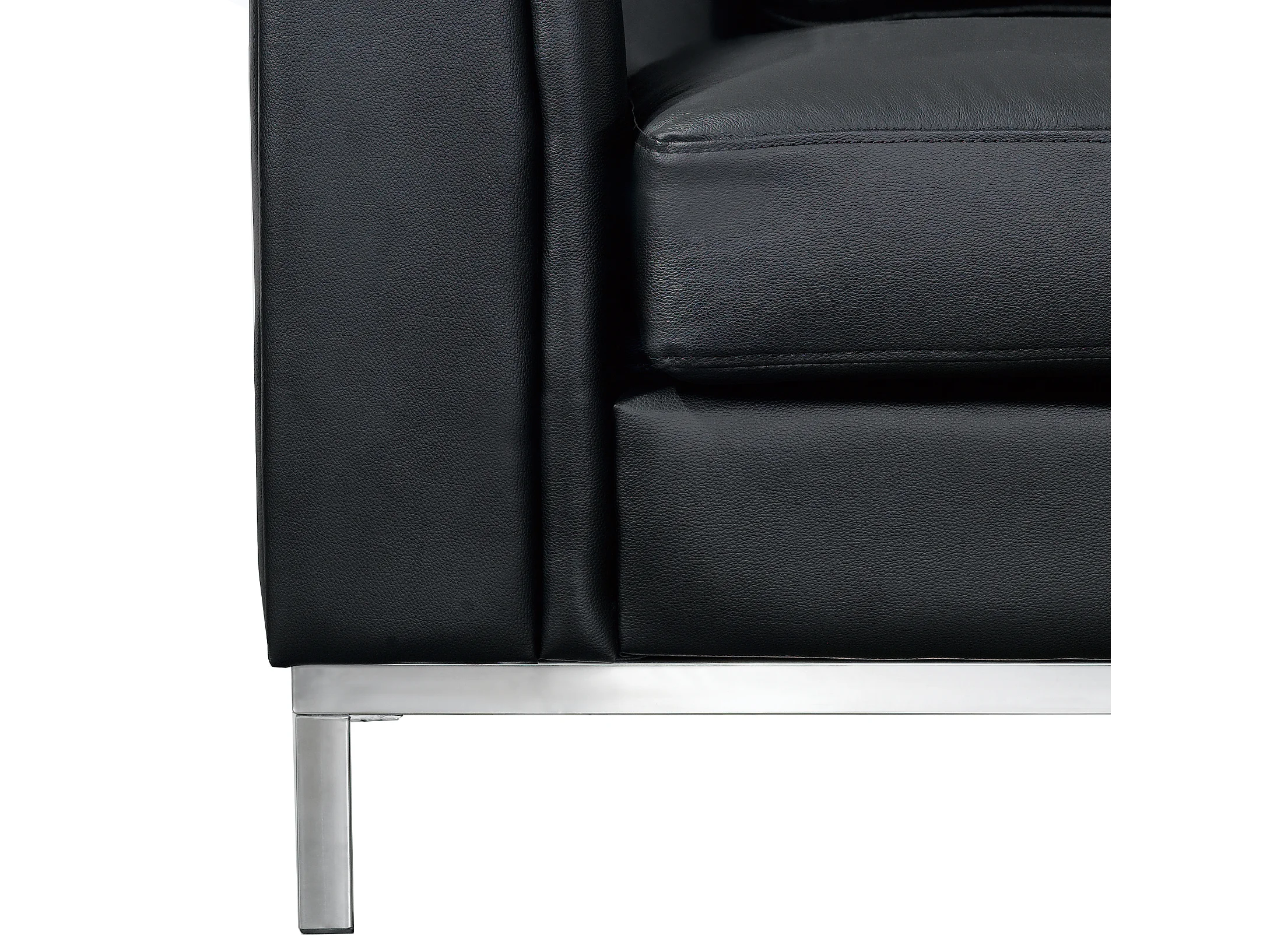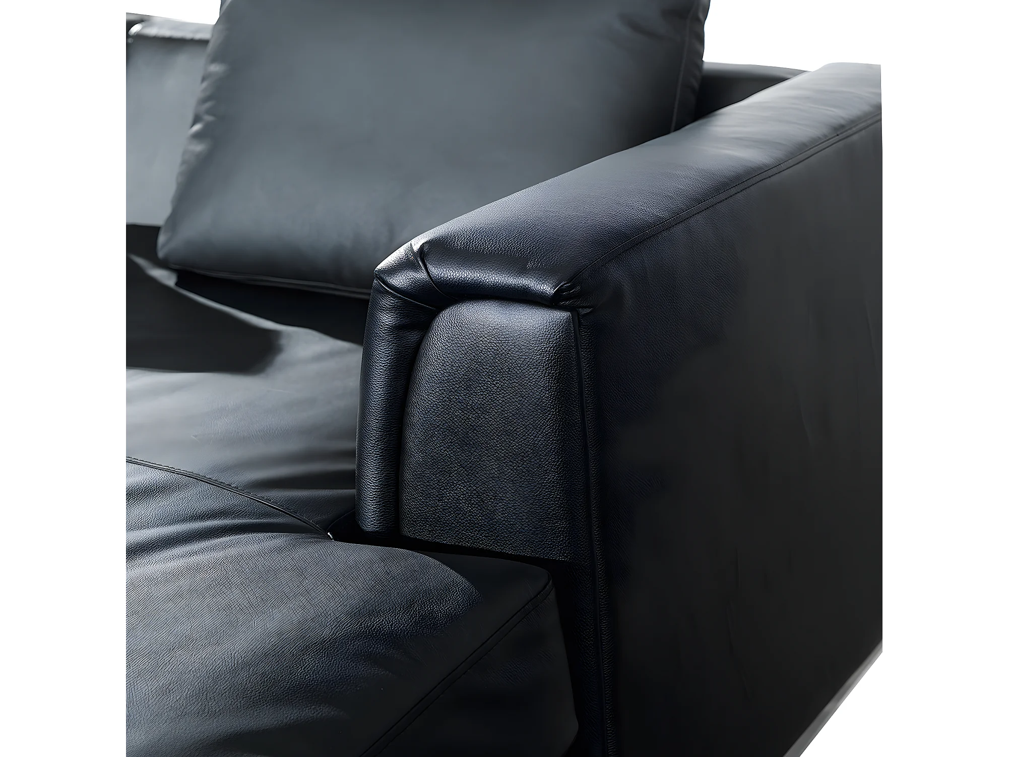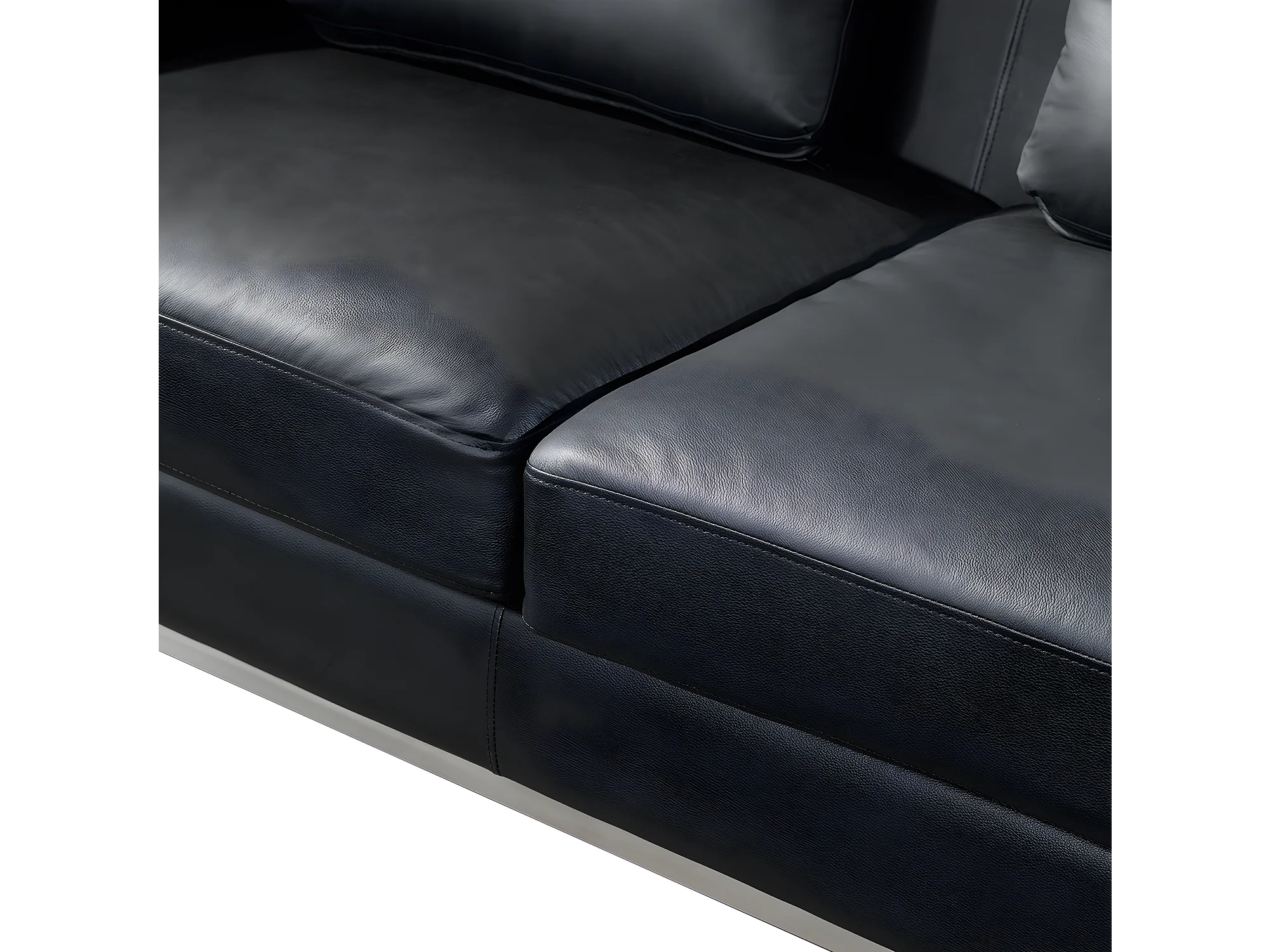 Hoekbank OSLO Leer Zwart Met ottomaan 5-zitter Linkerzijde