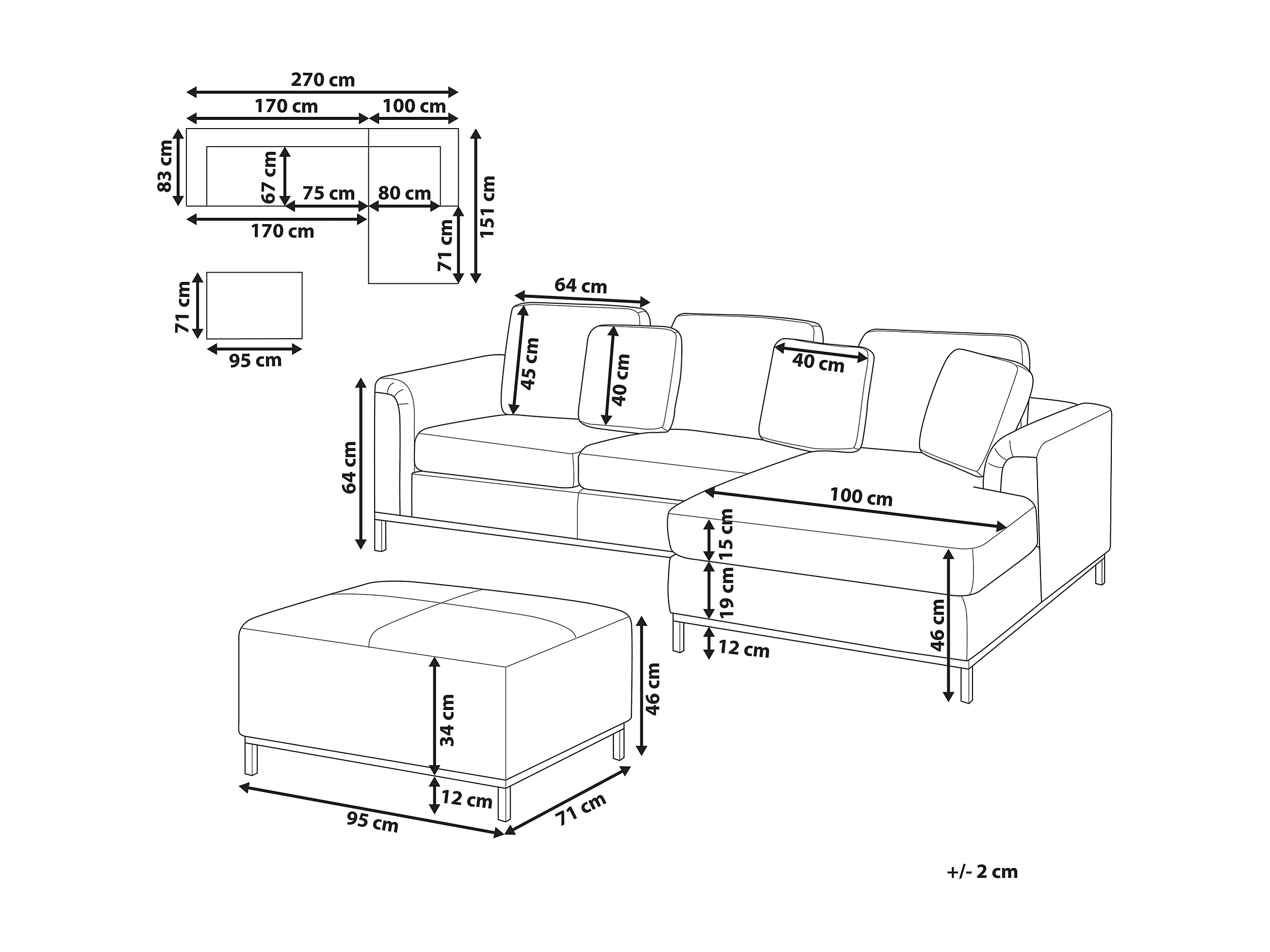 Hoekbank OSLO Stof Lichtgrijs Met ottomaan 5-zitter Linkerzijde