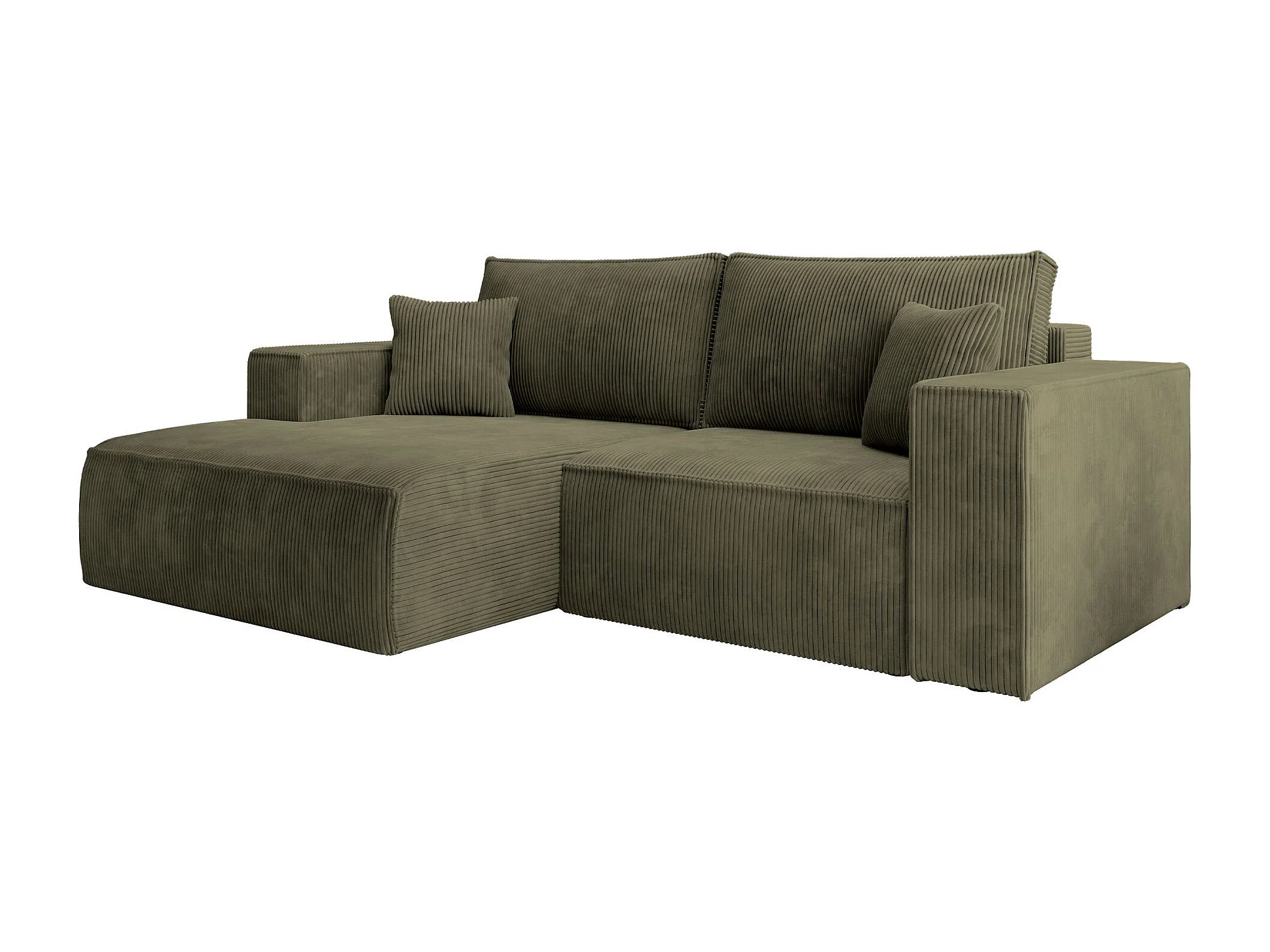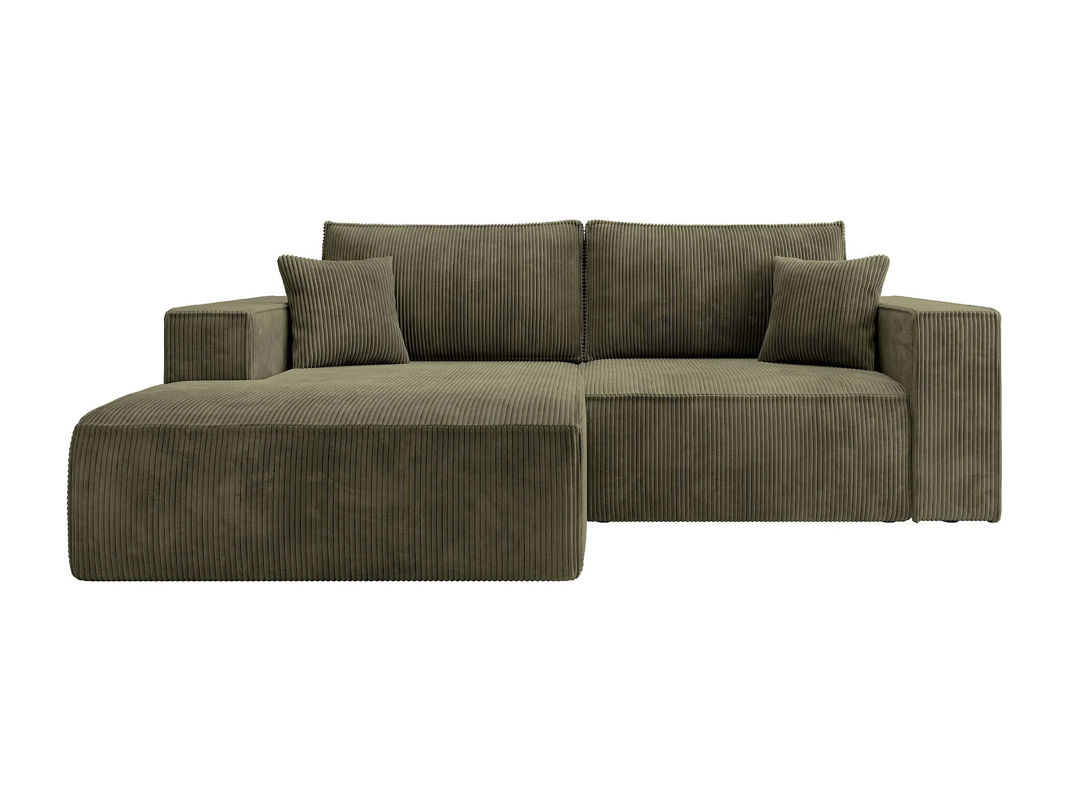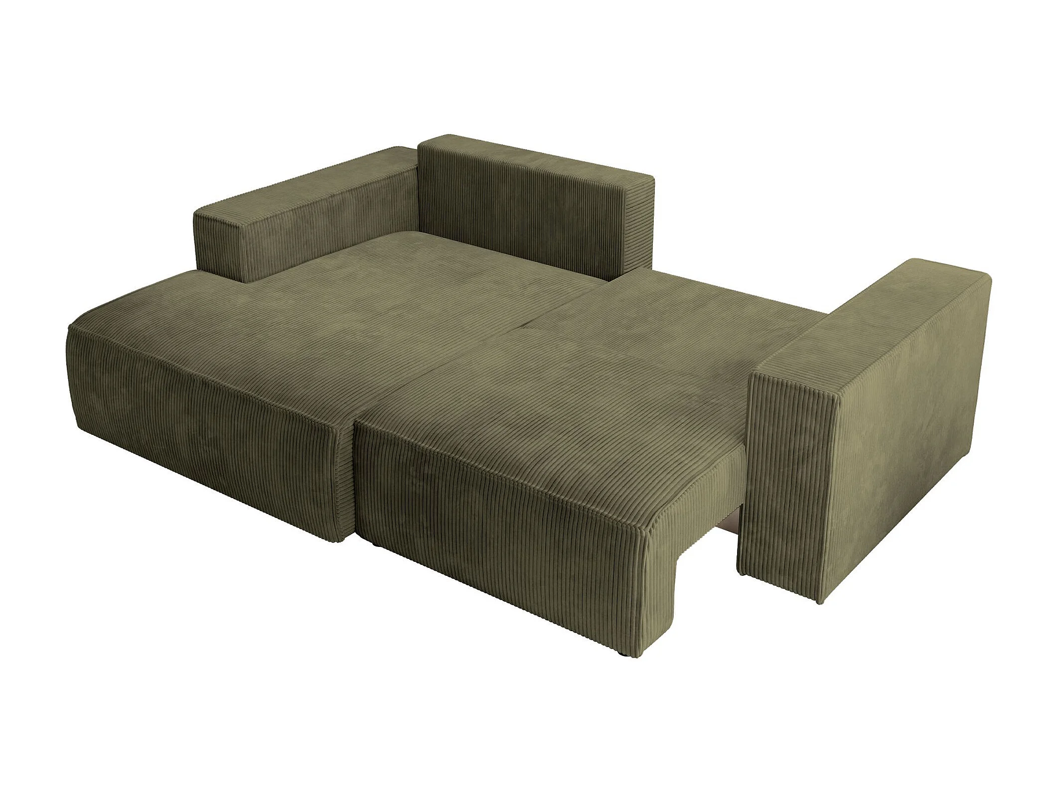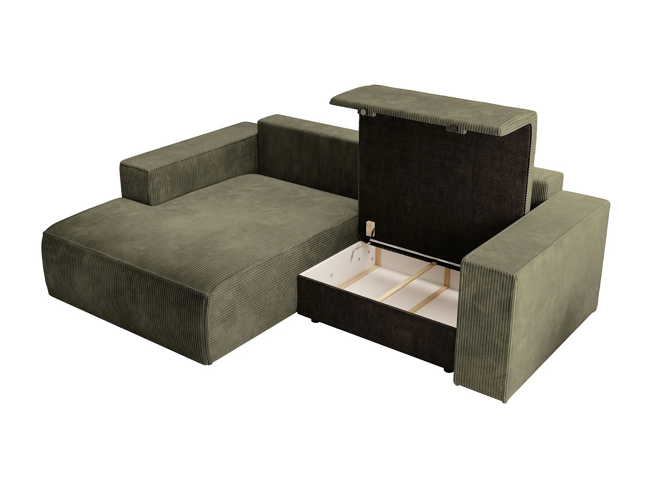 Hoekbank met ribfluweel – slaapfunctie en opbergruimte – olijfgroen – links – FARESE MINI