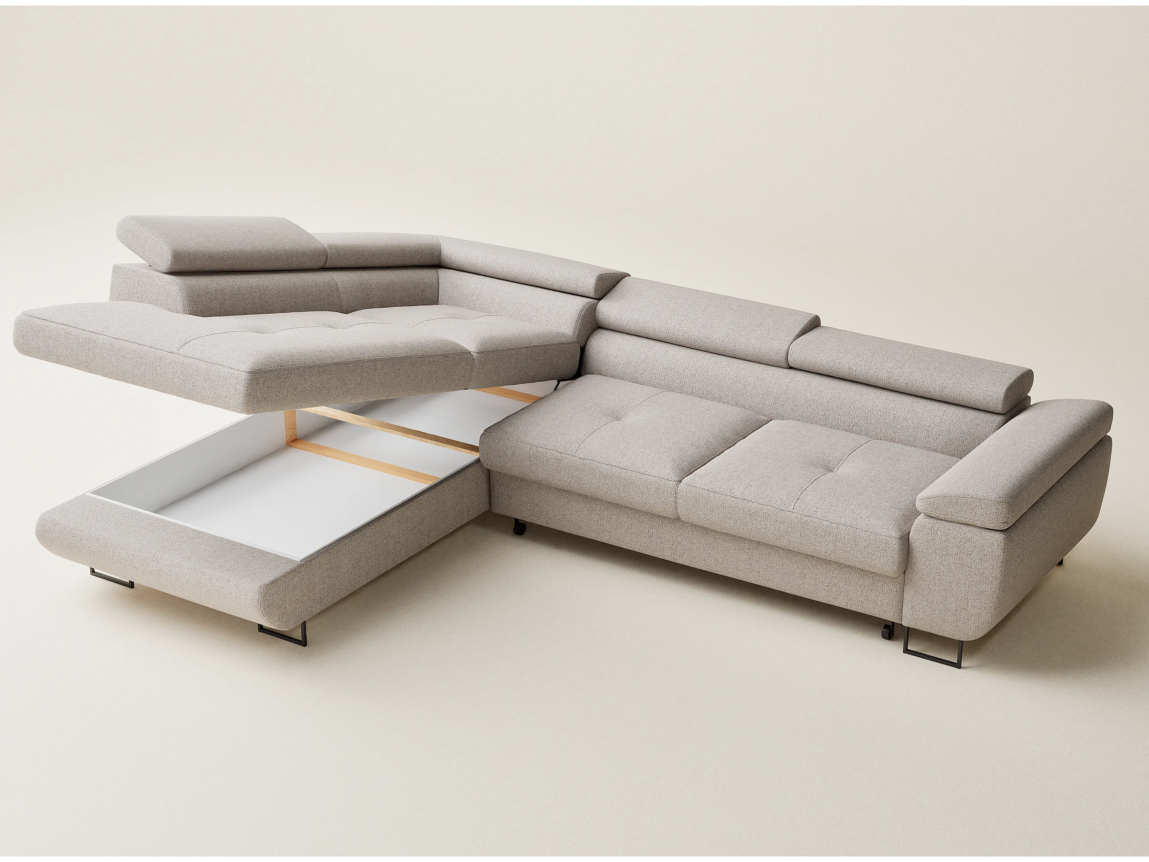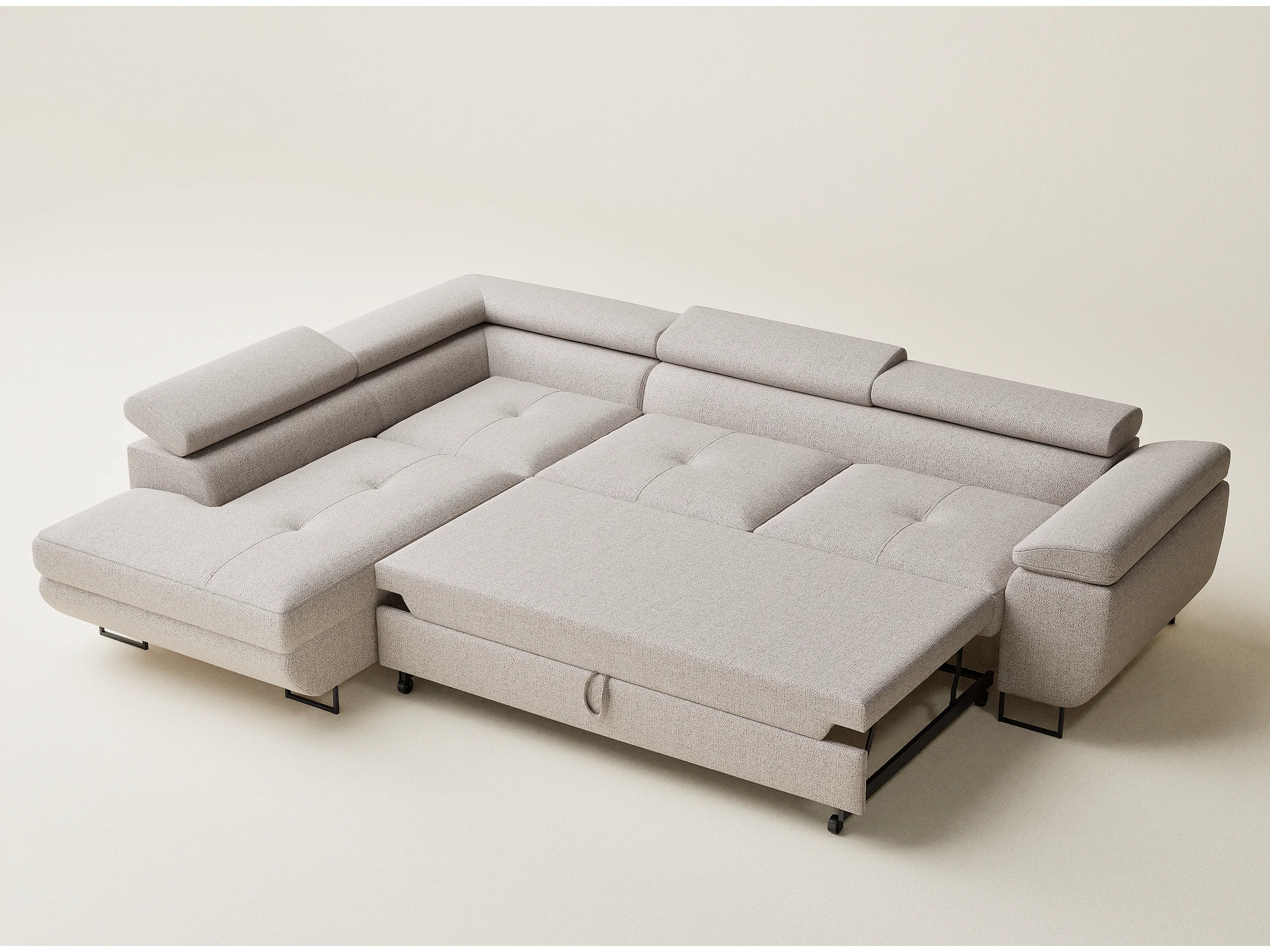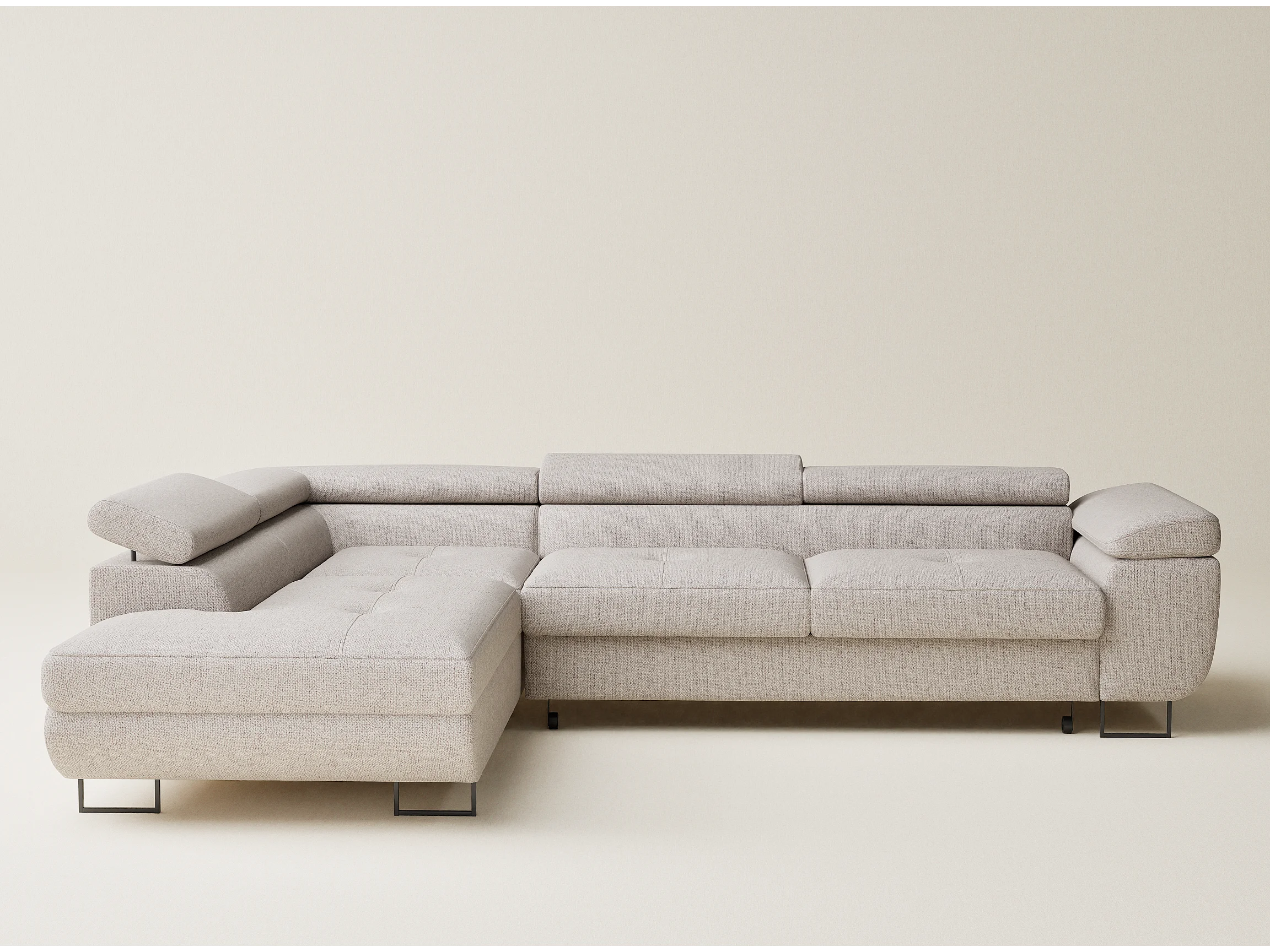 Hoekbank met slaapfunctie Concord in geweven stof - Vierpersoons - lichtbeige