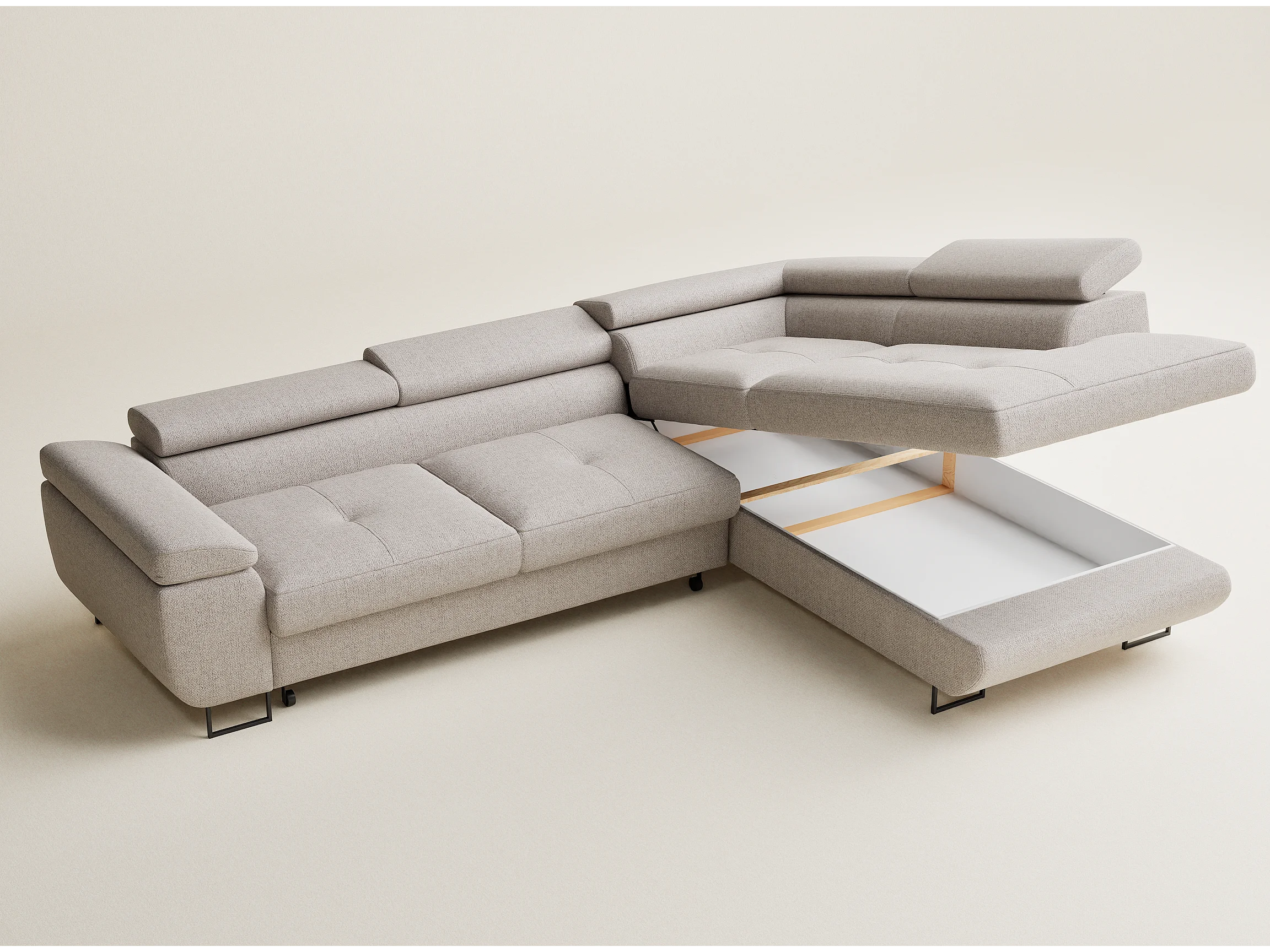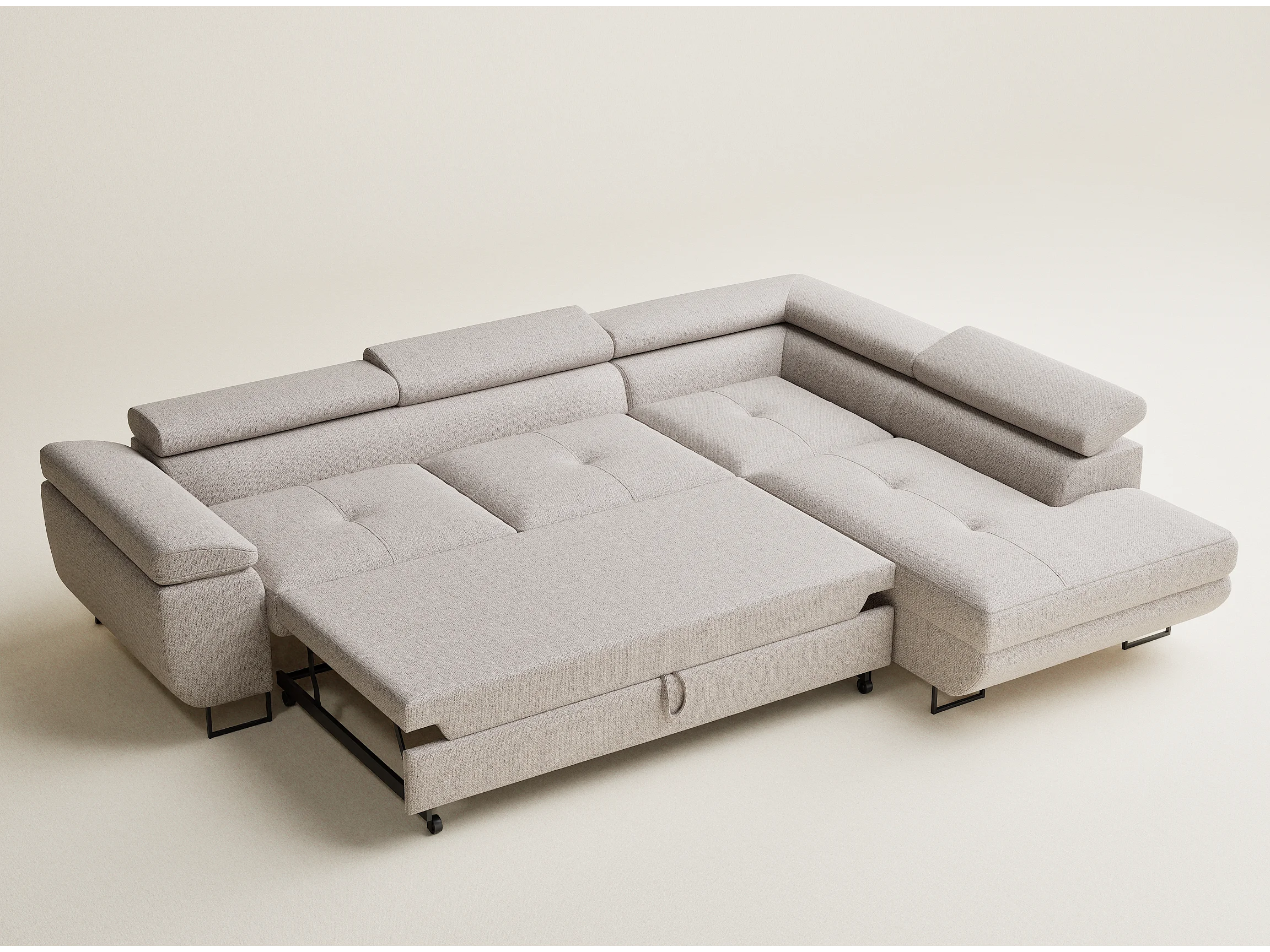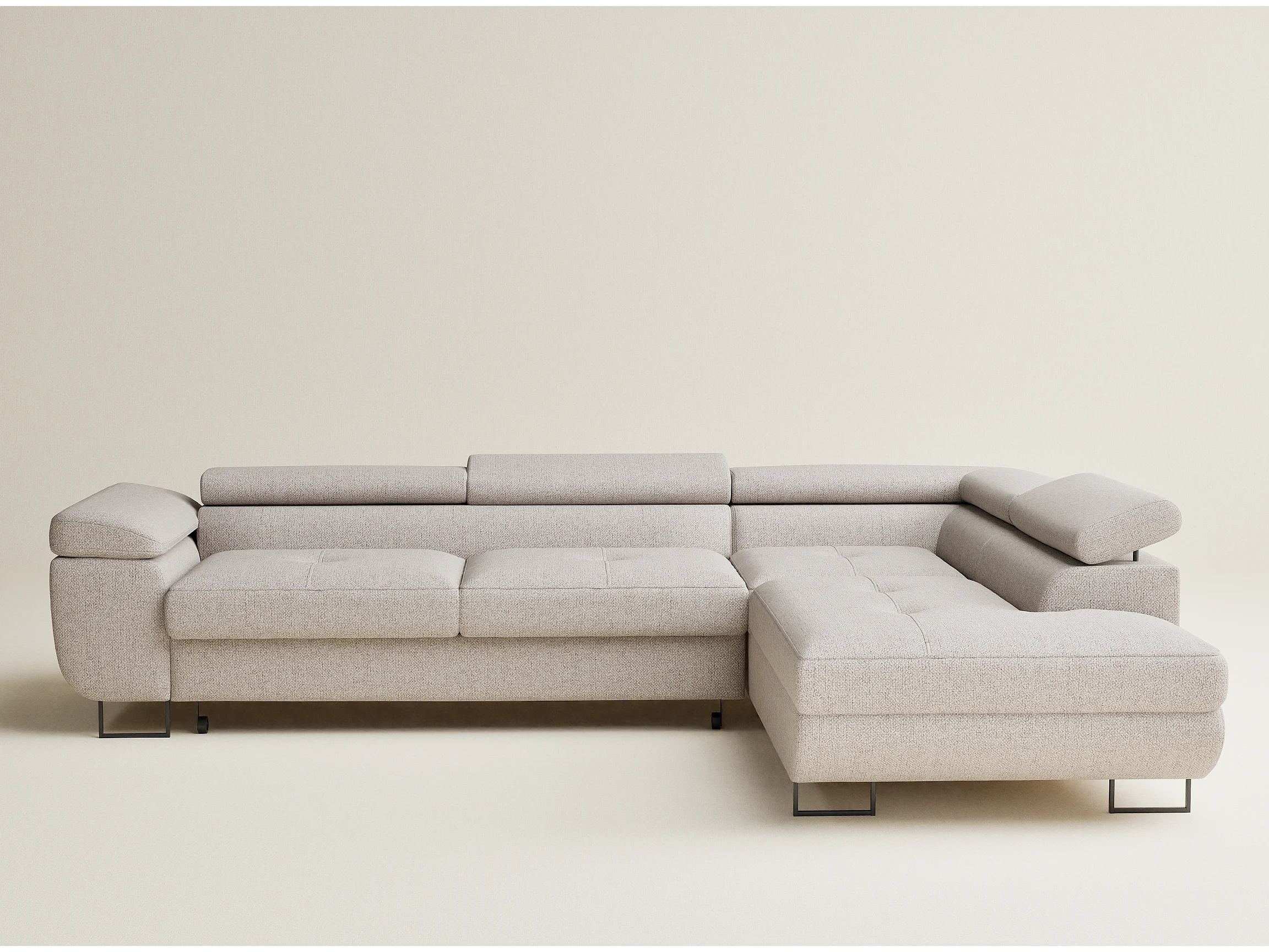 Hoekbank met slaapfunctie Concord in geweven stof - Vierpersoons - lichtbeige