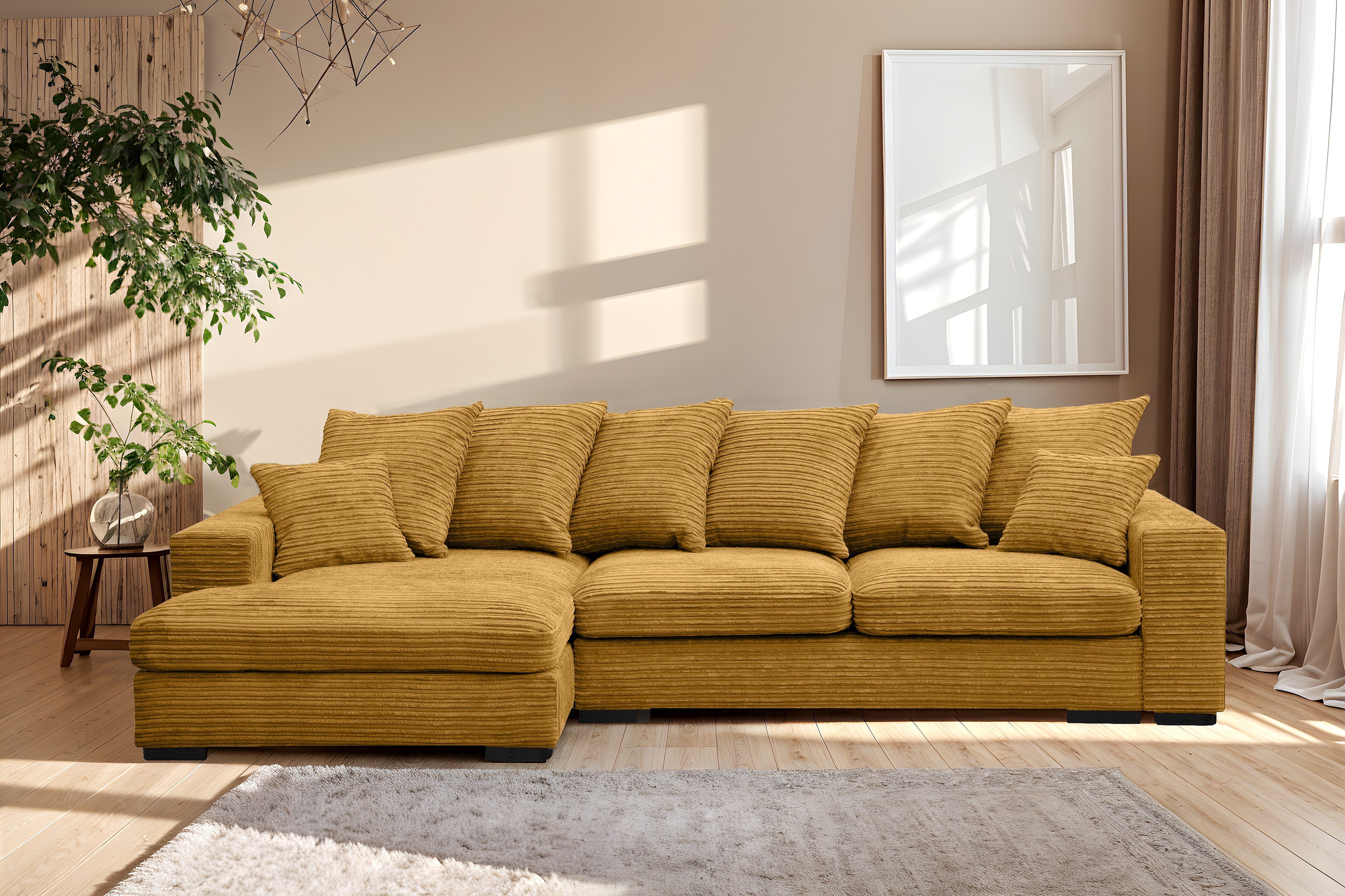 Hoekbank met slaapfunctie en bedstee, L-vorm bank, L-vorm bank Gabon stof Zoom Geel Links